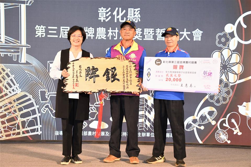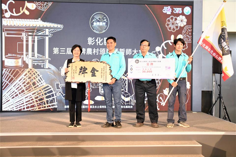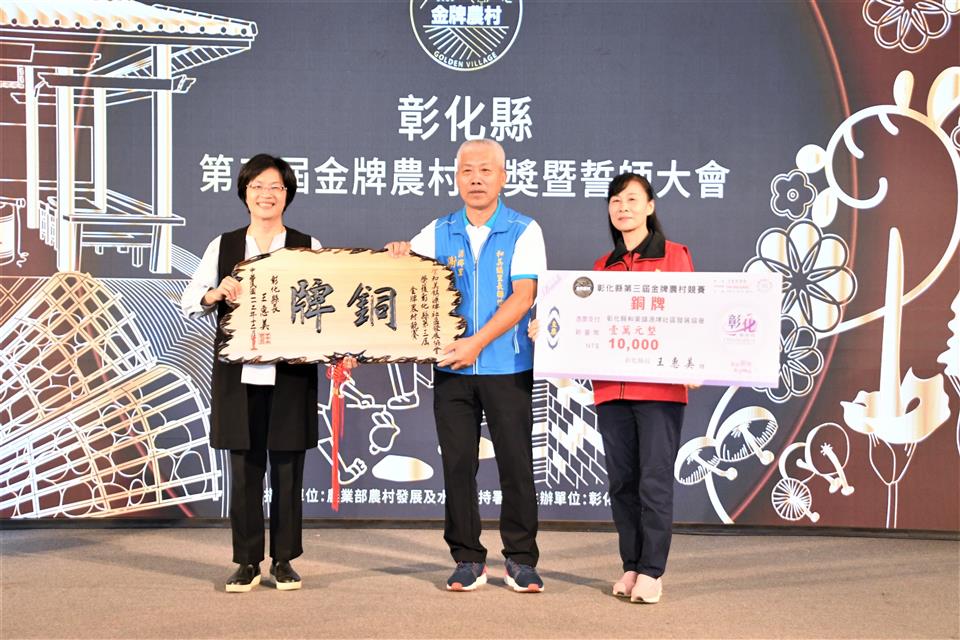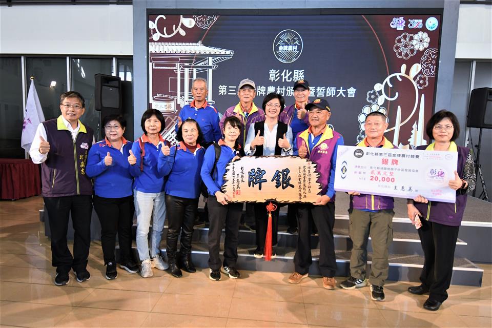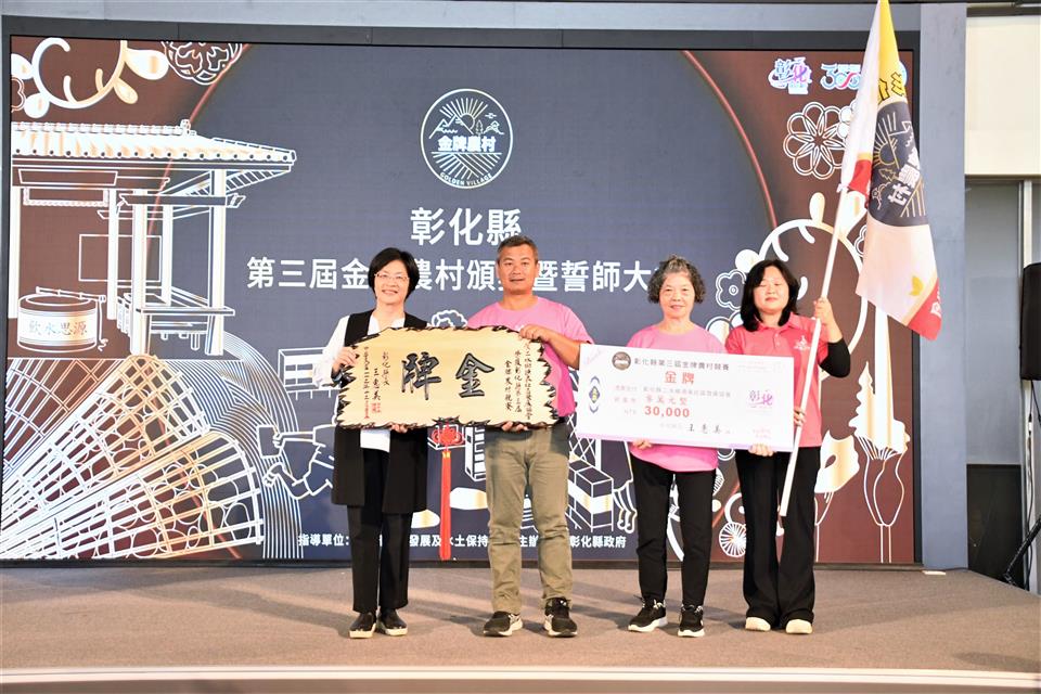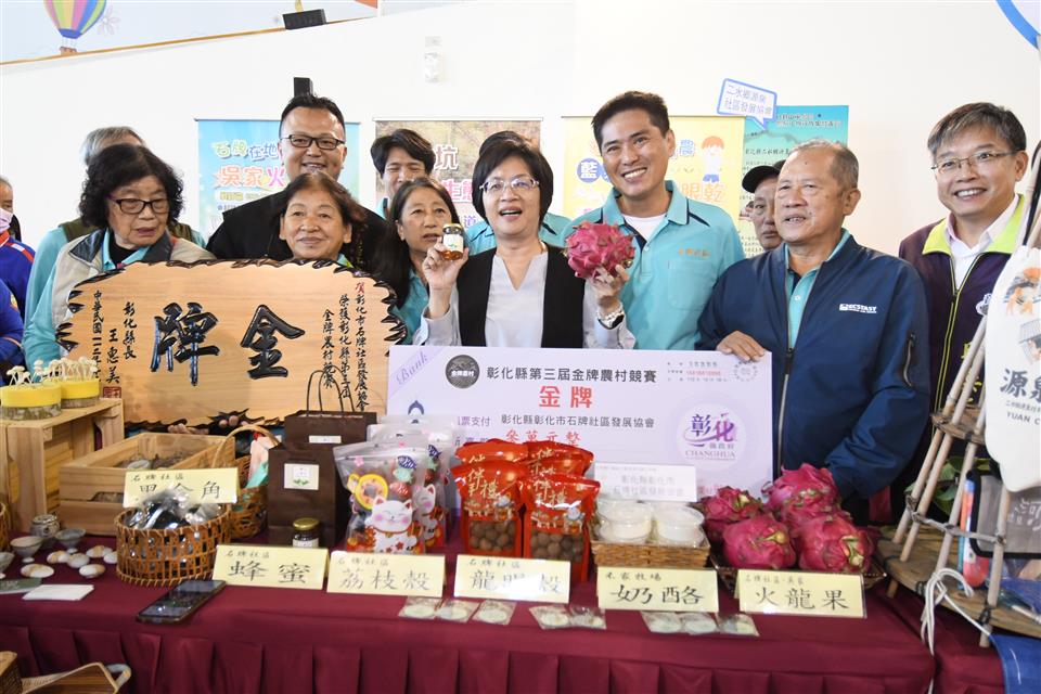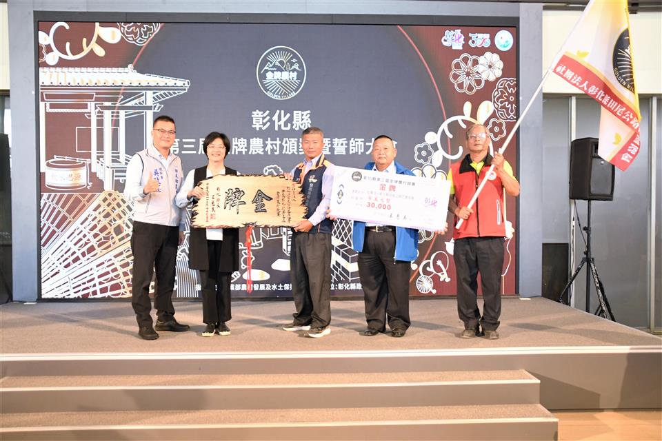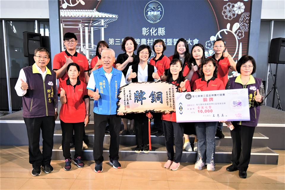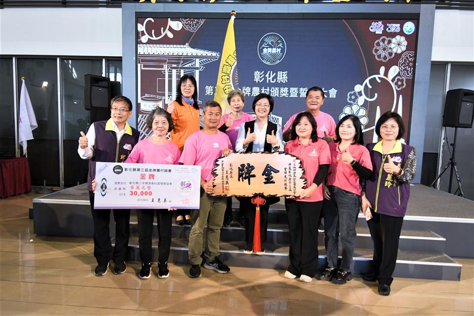 彰化縣第三屆金牌農村決選結果出爐,今(18)日上午在縣府中庭舉辦頒獎典禮,由縣長王惠美頒發金、銀、銅牌共5個獲獎農村。王縣長表示,恭喜獲獎的各個農村單位,全國金牌農村每三年選拔一次,先進行彰化縣內金牌農村的決選,本次由社團法人田尾公路花園協會、二水鄉源泉社區、彰化市石牌社區獲得金牌及獎金各三萬元、埔鹽鄉廍子社區獲取銀牌及獎金二萬元、和美鎮源埤社區獲取銅牌及獎金一萬元,獲獎金牌單位將代表彰化縣進軍全國金牌農村選拔賽,鼓勵社區盡最大努力,爭取全國賽佳績,也預祝彰化縣參賽社區旗開得勝,凱旋而歸! 王縣長表示,本次獲獎的農村社區都各有特色,田尾公路花園是全國最大的花卉苗木集散地,花卉苗木枝材帶動田尾生活圈的發展;二水鄉源泉社區有豐富的文化底蘊,社區的籠仔篙、跑水節及黑泥季等文化活動皆別具特色;彰化市石牌社區具有豐富的生態,葉鼻蝙蝠、魔芋及螢光蕈等特色生物等著遊客探索;埔鹽鄉廍子社區結合社區古宅進行小旅行,且有五行麵等特色產品值得品嚐;和美鎮源埤社區的社區照護執行優良,還有阿爸的曬穀場等社區營造點值得欣賞。感謝所有社區工作者的努力,展現出社區的特色與魅力,縣府會持續協助地方特色傳承,透過食農教育、輕旅行等,行銷社區特色。 農業處表示,彰化縣政府多年來持續推動農村發展及農業部農村水保署所補助的農村再生相關計畫,促使農村擁有多元的特色,近年透過在地青年與企業的加入,亦讓農村更加充滿了生命力,為讓彰化縣農村社區不斷提升,縣府亦將繼續秉持在地深耕的陪伴精神,持續厚植社區在地人才,成為彰化農村發展的強力後盾,並鼓勵社區持續精進特色與亮點,朝向自主營運的目標前進,也誠摯邀請更多遊客至彰化各社區走走,體驗不同的農村風光,品嚐在地好滋味,感受彰化豐富且別具質感的農村特色。 與會人員有田尾鄉農會總幹事吳政憲、社團法人彰化縣田尾公路花園協會理事長劉漢欽、總幹事張威智、彰化市石牌社區發展協會理事長林峻毅、總幹事劉詠惠、二水鄉源泉社區發展協會理事長黃麗君、執行長賴昭旭、埔鹽鄉廍子社區發展協會理事長陳貽正、和美鎮源埤社區發展協會總幹事謝秀華、縣府農業處長邱奕志、副處長蕭麗玲等人。