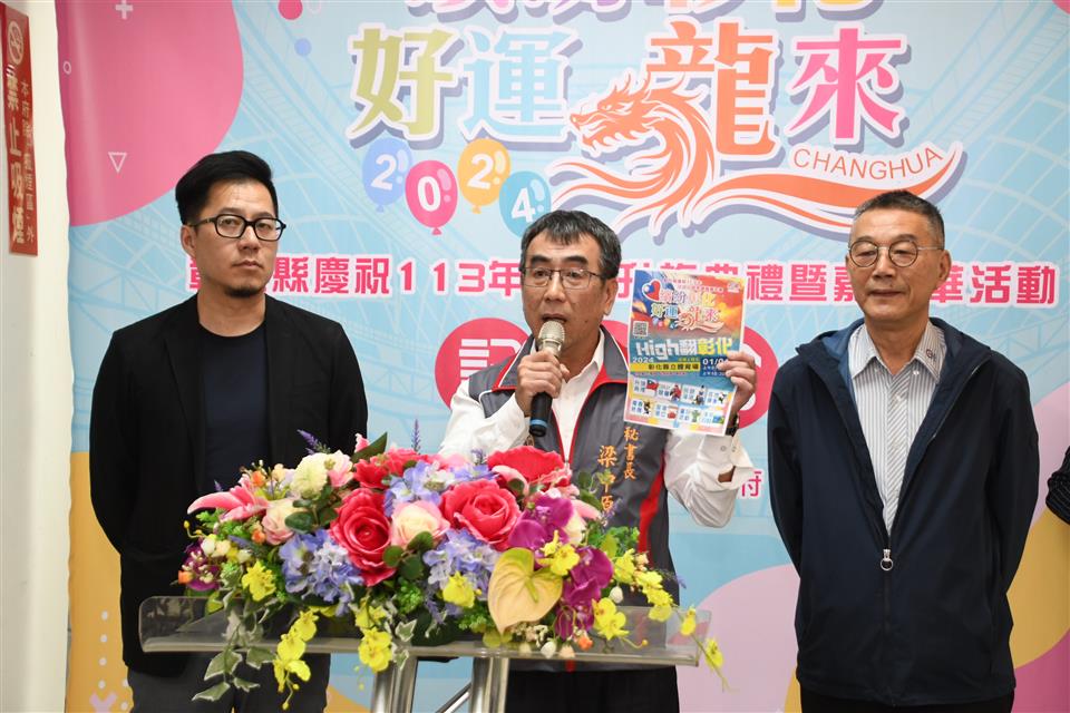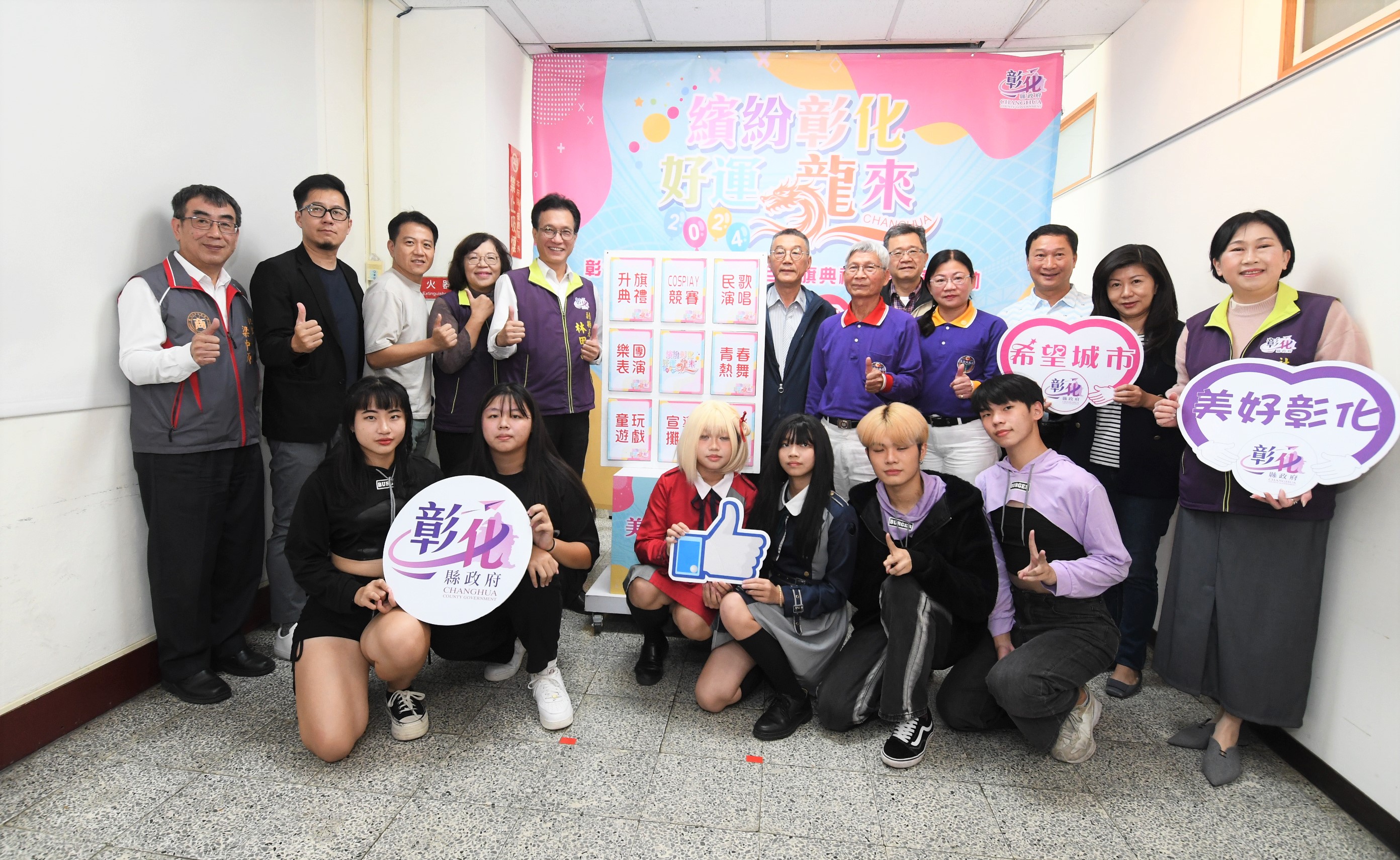 為迎接2024年元旦,彰化縣政府將於113年1月1日(星期一)上午7時30分,於彰化縣立體育場舉行『繽紛彰化。好運龍來~彰化縣慶祝中華民國113年元旦升旗典禮暨嘉年華活動』,今(19)日上午於縣府6樓新聞處咖啡藝廊舉行宣傳記者會,彰化縣副縣長林田富代表縣長王惠美與會,邀請鄉親們一同來參加升旗典禮,唱國歌向國旗致敬,歡度中華民國113年元旦,共同為彰化、中華民國加油。 林副縣長表示,感謝救國團彰化縣團委會承辦本次活動,彰化縣今年主題是「繽紛彰化。好運龍來」,龍年鴻運當頭,代表未來一年將有很好的開始,升旗典禮將由國立彰化高中管樂隊伴奏及同學領唱。今年活動非常精彩,不但有曾淑勤等民歌演唱、原住民表演、學生熱舞、樂團表演及超級好禮大摸彩,更首次規劃結合來自各學生社團進行COSPLAY動漫變裝競賽,現實與虛擬世界的接軌,藉此吸引年輕學子們呼朋引伴,一起參加彰化元旦升旗嘉年華! 林副縣長指出,今年活動採網路報名,報名成功者將可獲得限量國旗杯墊及摸彩券,摸彩獎品有iphone手機、電視機、冰箱、微波爐、烤箱等大獎,彰化縣工業會更捐贈兩台70吋大電視抽獎。現場也規劃結合各合作社、農會農特產品展售及童玩遊戲、縣政宣導攤位等。歡迎鄉親們12月31日跨完年不斷電,繼續參加113年1月1日元旦升旗活動,新的一年都能繽紛一整年、好運龍來。 彰化縣商業會秘書長梁中原表示,明(113)年元旦彰化縣政府非常用心,委託救國團彰化縣團委會辦理及規劃非常多的活動,相信精彩可期,歡迎所有鄉親一起參加,絕對讓大家物超所值。 與會貴賓有縣府秘書長陳逸玲、社會處長王蘭心、新聞處長李俊德、彰化縣工商發展投資策進會副總幹事陳穎青、救國團彰化縣團委會總幹事邱冠彰、彰化市忠權社區發展協會執行長張秋香、忠權里長林連發、彰化縣中華生物能醫學氣功協會理事長施標、彰化縣農業合作社聯合社陳銀龍、彰化縣工業會秘書長陳永興、彰化縣商業會秘書長梁中原、私立達德高級商工職業學校訓育組長高敏盛、各團體代表等。 彰化縣慶祝113年元旦升旗典禮暨嘉年華活動報名網址: https://reurl.cc/a42ZkY