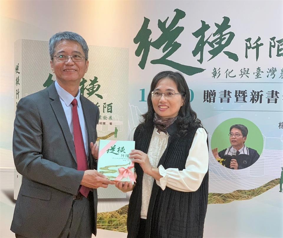 彰化縣是農業大縣,一路走來為臺灣農業生產默默付出,今年是彰化縣建縣300年,為了讓更多人了解彰化縣的農業發展,逢甲大學國際經營與貿易系楊明憲教授投入近兩年的心血,完成了《縱橫阡陌-彰化與臺灣農業發展》一書,為了將這份珍貴的紀錄傳遞給更多人,楊明憲教授贈送此書給彰化縣各鄉鎮市立圖書館,今(20)日在彰化縣立圖書館舉辦贈書暨新書發表會,由文化局長張雀芬代表縣長王惠美與會,期望讓更多人能夠閱讀、學習和感受這段農業發展的歷史。 楊明憲教授為彰化溪湖人,其花費近2年時間深入彰化縣26個鄉鎮市,細心訪談當地耆老、老農、青農、農會、農企業、生產合作社、產銷班、畜牧場、魚塭等各界人士,致力於記錄和呈現彰化縣農業發展的歷程與特色,他的努力在今天結出了豐碩的果實,這本書描繪著彰化縣農業在歷史長河中的蛻變,呈現了農民們的辛勞與智慧,以及農業產業的蛻變過程,更是向社會傳達對彰化縣耕耘者的敬意和感謝之情。 文化局表示,彰化縣農業的過去、現在與未來,是值得我們認識與關注的。彰化子弟楊明憲教授感恩先人開發,珍惜大地糧倉,並希望回饋給故鄉,以生動的筆觸,細緻呈現了彰化縣農業的發展軌跡,深入挖掘了農業從傳統到現代的轉變,突顯了農民的智慧和堅持,將讀者帶入彰化縣各個角落,感受這片土地的奮鬥和成就,今天楊教授捐贈《縱橫阡陌-彰化與臺灣農業發展》給彰化縣各公共圖書館,為彰化的文獻典藏添磚加瓦,同時也將讓更多民眾從閱讀中了解農業的魅力和辛勞。 與會貴賓還有彰化市長林世賢、二林鎮長蔡詩傑、社頭鄉長蕭浚二、彰化縣農會總幹事張建豐、溪湖鎮農會理事黃富聰、和美鎮農會總幹事謝燕如、線西鄉農會總幹事楊玲珠、福興鄉農會總幹事林坤宏、秀水鄉農會總幹事吳明信、花壇鄉農會總幹事顧碧琪、芬園鄉農會總幹事黃翊愷、溪湖鎮農會總幹事陳金源、二林鎮農會總幹事邱士平、埤頭鄉農會總幹事王宋民、芳苑鄉農會總幹事謝介民、田中鎮農會總幹事張瑞欣、鹿港鎮農會推廣主任許秀蘭、大城鄉農會資訊主任王碧玲、埔鹽鄉農會主任童淑珍、田中鎮農會推廣主任吳淑哖、線西鄉農會推廣主任許玉真、縣長辦公室主任李世傑、農業部農田水利署彰化管理處工程師鄒元燈、壽米屋企業有限公司總經理陳肇浩、福全蔣氏農場場主蔣敏全、樂農發農場負責人許宏賓、各級民代與地方仕紳等。