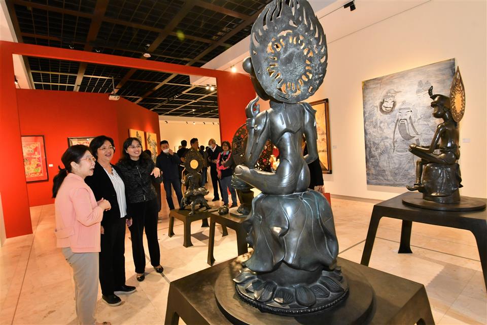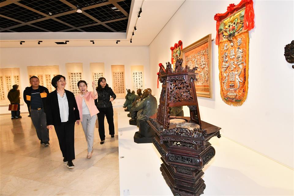 古今參照,鑑往知來,在彰化建縣300年的歷史時刻,彰化縣政府籌劃「請眾仙迎神–宮廟藝術展」,以跨世代對話梳理宮廟文化。今(29)日上午舉行開幕記者會,縣長王惠美、策展人陳筱君老師、參展藝術家等人與會,王縣長表示,在偶然的機會下,在欣向美吳明哲院長引薦策展人陳筱君老師,陳老師是彰化鹿港人,不但是台灣的寶,也是世界級的策展人,曾辦理許多國際性展覽,今年是彰化建縣300年,特別邀請她來策展更別具意義,邀請大家即日起至113年2月18日(大年初九天公生),前來欣賞承載三百年文化風華的宮廟藝術,如何以嶄新姿態走入美術館! 王縣長表示,這次展覽以「現在–過去–未來」時間軸呈現,分為三個展區,第一展區在美術館一樓,「古藝今來–宮廟信仰的美學詮釋」,有李松林、李秉圭、施鎮洋等重要傳統工藝保存者的作品,同時對照臺灣近當代美術,如藍蔭鼎、席德進、鄭善禧、廖修平等前輩藝術家作品,以及當代代表性藝術家朱銘、楊茂林的創作。第二展區在美術館三樓,「尋城訪古–廟宇文物的文化脈絡」,有龍年印版體驗區讓大家拓印版畫完可以帶回家,還有展示廟宇祭祀科儀與南北管戲曲文化薪傳,並將先賢書藝家之文字連結神明信仰,詮釋不同世代的書道精神。第三展區在美術五樓,「祈願之地–世代更迭的庶民觀點」,以擴增實境「放天燈」Web-AR互動設計,結合AI辨識與影像互動遊戲,打造虛擬實境的奇幻世界。此外,「時光迴廊」以老照片訴說早期民俗活動與宮廟盛事,讓大家能夠體驗不同宮廟美學的新詮釋。 王縣長指出,特別感謝策展人陳筱君老師用心規劃,也感謝臺灣8個公立美術館、博物館出借典藏品,包含:國立歷史博物館、國立臺灣歷史博物館、國立臺灣美術館、國立傳統藝術中心、國立自然科學博物館、國立臺灣工藝研究發展中心、國史館臺灣文獻館、高雄市立美術館等館舍分享藝術資源,讓藝術史上的赫赫巨跡能在彰化展出!以及2個館閣、2個宮廟、33個私人藏家提供展品,展出58位藝術家,其中35位是彰化縣籍藝術家,共計109件作品,歡迎鄉親把握機會,一起來欣賞。 策展人陳筱君表示,看到這麼多人一起齊聚一堂,讓她心中有滿滿的感謝與感動,這個展不是單靠她一人來成就,而是集合大家的力量,在彰化建縣300共同來促成,首次在彰化別具特色的展出宮廟藝術文化,特別是在一進美術館的入口處,由東海李思賢教授帶著學生團隊共同手繪來完成廟埕,因為廟埕是人們常常聚集的地方,去廟埕的人數比去故宫參觀的人數還要多,是人們生活中最接地氣的場域,希望大家從門口的廟埕,走進美術館,讓大家深刻感受宮廟美學。五樓「祈願之地」由逢甲大學鄭月妹教授,以擴增實境「放天燈」Web-AR互動設計,結合AI辨識與影像互動遊戲,以嶄新的手法,從現在、過去及未來,整合呈現文物之美,彰化有非常多優秀的文化資產,有美好的人文藝術,歡迎大家前來參觀。 與會貴賓還有策展人陳筱君、彰化縣文化局長張雀芬、參展藝術家周天龍、夫人蘇壽美、人間國寶施鎮洋老師、李秉圭老師、台灣現代版畫之父廖修平老師、藝術家黃淑卿老師、書法界巨擘杜忠誥教授、陳來興老師、於同生老師、吳啟林老師、梁基德老師、施承祐老師、溫文卿老師、彰化梨春園北管樂團長葉金泉、元長鰲峰宮保生大帝廟總幹事李妙菁、景薰樓董事長陳碧真、欣向美吳明哲醫師夫婦、吳媽媽、吳欣樺、帝圖科技董事長劉熙海、拍賣總經理劉嘉宸、南畫廊負責人黃于玲、異雲書屋負責人陳維駿、陳志昇老師、逢甲大學校長李秉乾、人文社會學院長翟本瑞、建築專業學院特聘教授鄭月妹、南華大學務長尤惠貞、義美集團歐瑞雲女士、小提琴家黃俊文、國際知名鋼琴家Alessio Bax、音樂家Pianist Lucille Chung、時藝多媒體公司營運長林志祐、彤采妮公司董事長郭鎮彰、四大社團召集主席施龍淵、中華文物學會南部召集人張德聰、朝和餅舖老闆梁陽昌、鹿港永安宮主委施炳坤先生、委員施昶全、蘇寶豐、彰化縣湘江書畫學會理事長李榮茂、彰化高中校友會副總幹事楊賜來、中華民國台灣南部美術學會理事長李學富、藝術家林章湖教授、彰化市公所藝術館館長粘碩尹、藝術家白丰中老師、博史館台灣文獻館組長陳惠芳、林俊寅老師、林躍堂老師、台灣文化小鎮協會理事長許書基等。 詳細活動內容請上彰化縣文化局官網查詢。 (https://www.bocach.gov.tw/)