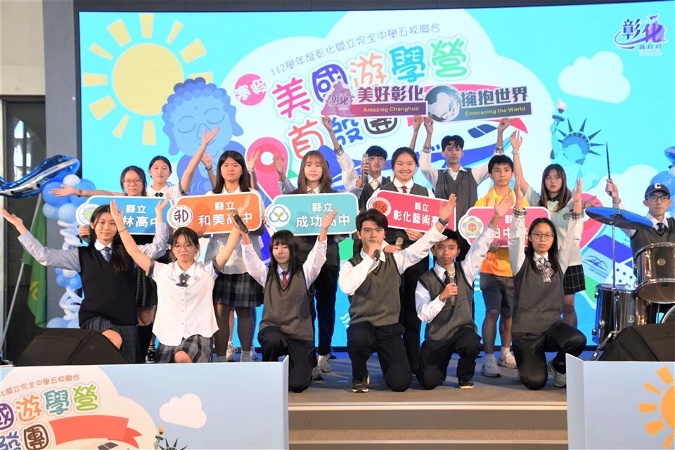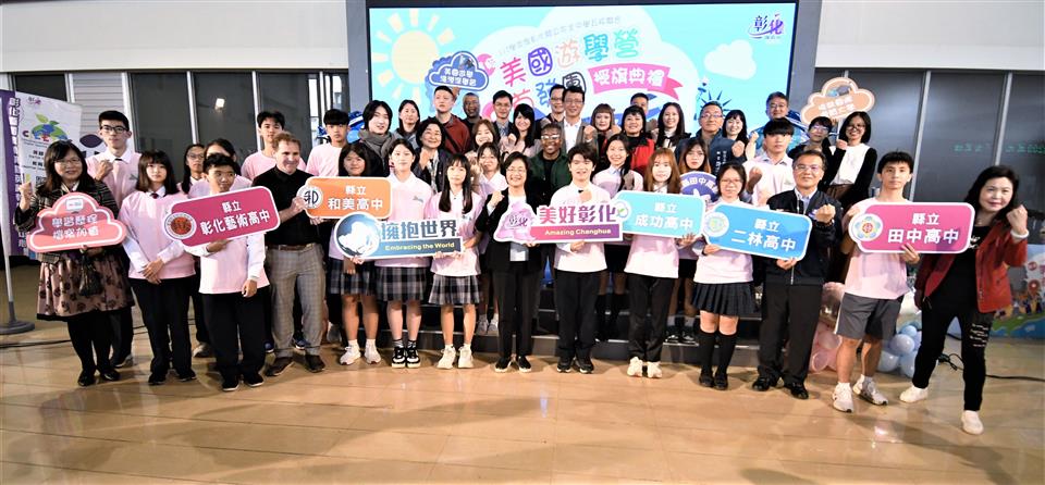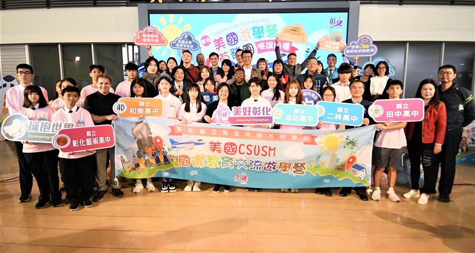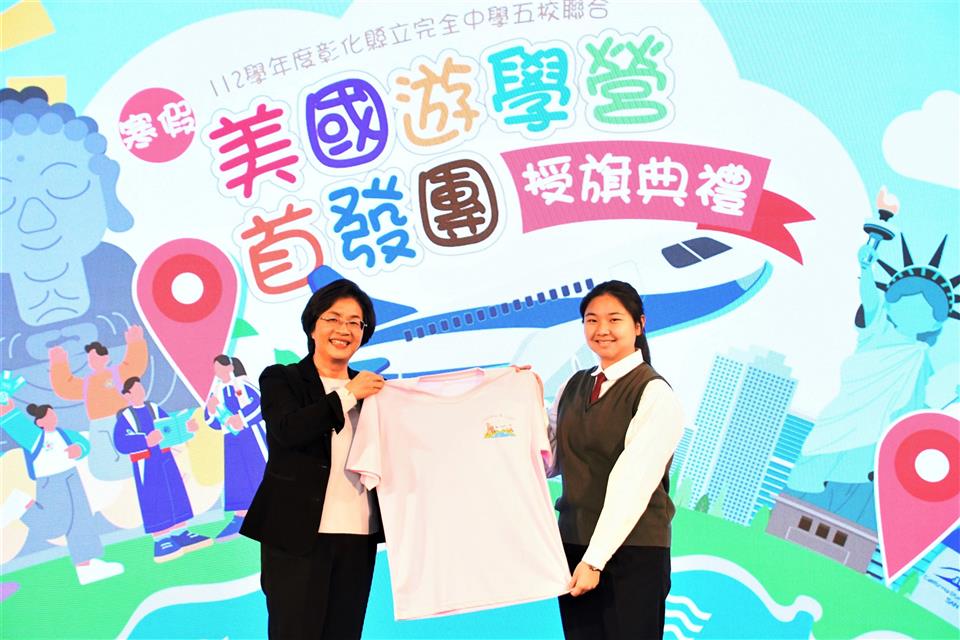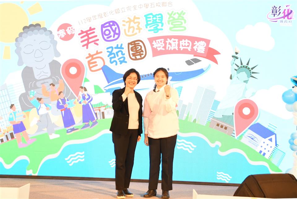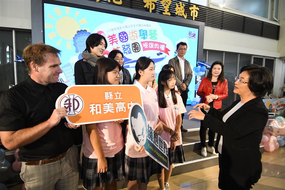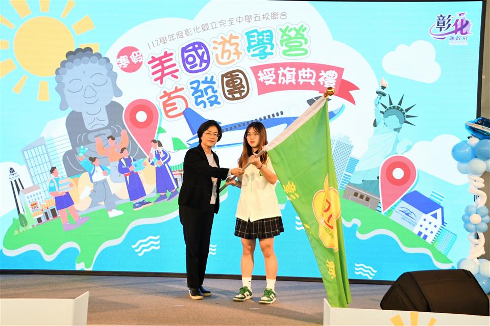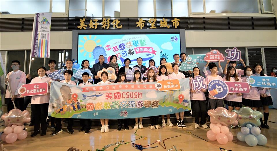 為厚植英語力加值競爭力,彰化縣政府與美國加州州立大學聖馬可斯分校去(112)年簽署雙邊合作計畫備忘錄(MOU)後,將迎來第一場實質國際交流,縣長王惠美今(4)日上午出席縣府中庭的授旗典禮,由縣長授予縣旗、團服嘉勉首發團學生,王縣長表示,去年,6月30日縣府與美國加州州立大學聖馬可斯分校簽署雙邊合作備忘錄,今年,將展開第一場國際教育交流活動,由縣立五所完全中學,包括彰化縣立藝術高中、和美高中、成功高中、田中高中、二林高中等20位師生組隊,辦理寒假遊學營隊,於1月25日赴美展開為期12天身歷其境的學習,正式展開友誼的雙邊實質交流,預祝孩子們國際教育交流旅途平安。 王縣長表示,縣府團隊很用心,要讓彰化孩子有更好的競爭力,特別感謝教育處國際教育顧問郭喬雯博士這次的牽線,不僅要讓孩子們學習收穫滿滿,這次遊學營也為彰化學子量身規劃,以語言及文化為主軸,除了學習英語以外,也安排參訪市政府及商會,與當地高中生交流共學,且深入體驗當地生活及文化,讓學生充實自己,也進行國際志工服務貢獻自己的力量。期勉同學們,面對不同語言及文化的挑戰,能化身最佳外交小尖兵,把彰化的好、台灣的好,介紹給國際友人,也透過這次交流,擴展國際視野。 王縣長指出,除了遊學營以外,下學年也將開始有線上修課的合作,另外,縣府補助縣立高中每校300萬元充實軟硬體、建置國際班教室,每校一位外師進駐,當聖馬可斯分校教師在美國端線上授課同時,彰化的駐校外師在這邊的教室現場協同,雙管齊下,幫助學生學習。希望藉由提升縣內學校的教學品質及量能,留住優秀學生在地就學,未來也將持續開拓國際交流課程,提供彰化的孩子們更多海外學習、拓展視野的機會。 與會貴賓還有彰化縣議員陳玉姬、黃柏瑜、副議長許原龍服務團隊、縣府教育處長蔡金田、彰化藝術高中校長蔣秉芳、家長會長王世昌、輔導會長曾裕祿、和美高中校長徐進將、家長會長何鳳慈、成功高中校長林克修、家長會長洪群偉、田中高中校長張淑女、家長會長張景富、二林高中校長黃洲海、家長會長謝建復、民生國小校長洪榮炎、大竹國小校長黃馭寰、國聖國小校長黃至賢、聯興國小校長柯文吉、三民國小校長江俊穎、快官國小校長楊淙富、明禮國小校長洪士訓等。