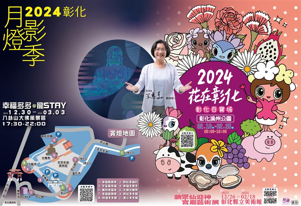 彰化縣政府今(30)日上午於縣府中庭舉辦「2024花在彰化」宣傳記者會,由縣長王惠美、各級民代、與會貴賓一同揭幕活動亮點。王縣長表示,春節首選就在「2024花在彰化」!將於大年初一至十六(國曆2月10日至2月25日)在溪州公園隆重登場,每日上午9點到下午6點免費開放,今年以「彰化百寶城」為活動主題,邀請全國民眾新春期間前來彰化,白天賞花、晚上賞燈,賞花漫遊、尋寶、吃美食。除了溪州公園花在彰化之外,還有許多能走、能玩的地方,包括品嘗溪州、溪湖的羊肉,北斗吃肉圓、到奠安宮拜拜求福氣,歡迎全國鄉親到彰化走春,體驗彰化百寶風光、品嚐在地美食。 王縣長表示,今年活動與日本知名角色設計家Hiroshi Yoshii(吉井宏)合作,設計「花精靈EVA」,帶領遊客探索以彰化在地花卉呈現農林漁牧特色的花藝布置,遇見彰化農業的鮮活多彩與生命力;並首次邀請來自日本、韓國、泰國、印尼等4個國家的表演團隊帶來精彩演出。 王縣長表示,園區主入口規劃「繁花之頂」大型主題裝置藝術,以現代的幾何結構展現出繽紛多變的繁花景象;室內「花精靈物語館」以彰化縣農、林、漁、牧、花五大主題花藝造景布置,搭配聲音、燈光、氣味等五感體驗,讓遊客有不同以往的觀賞感受;戶外花卉布置以花影林韻、傘花牧人、漁歌佳釀、田間稻形等四大主題呈現,同時搭配彰化優鮮農特產品展、特色工商產業暨美食展、親子遊戲區及各式團體舞台表演、農遊小旅行、園區尋寶遊戲、親子手作體驗教室等活動,並於2月18日辦理「花精靈與奇幻旅程親子主題日」,精心規劃花精靈大遊行、泡泡嘉年華、動物明星馬戲團兒童劇、還有最受歡迎的YOYO家族親子音樂會,讓參加遊客度過一個有趣又歡樂的親子時光。 王縣長指出,為鼓勵民眾在過年期間前來彰化,於大年初一到十六的活動期間,只要在「2024花在彰化」及「2024彰化月影燈季」兩活動地點以LINE掃描指定QRcode,完成集章即可參加抽獎,有iphone15、ipad等豐富獎項,另外,再加碼500個多多龍小提燈供參與活動的民眾抽獎。 農糧署果樹及花卉產業組長蘇登照表示,彰化是花的故鄉,無論是花卉、苗木等,產量都是全國第一,在彰化辦理花在彰化活動,可說是全國之福,歡迎全國民眾新春期間來到彰化走春,買花來彰化、賞花來田尾,並來溪州公園欣賞盆花。同時也鼓勵民眾在日常生活中多應用花卉,讓生活更加的美麗與溫馨。 溪州鄉長江淑芬代表致詞表示,溪州是一個好地方,每年花在彰化的活動都辦在溪州鄉,溪州有好吃的羊肉爐及芭樂、北斗有全國知名的肉圓、田尾還有眾多花卉可以欣賞,歡迎大家來彰化賞花、漫遊、吃美食,一起花在彰化。 縣議員劉淑芳代表致詞表示,一年一度的花在彰化即將開始,全國各地民眾都很期待,花在彰化、吃在北斗、玩在田尾,另外,埤頭是稻米的故鄉,還有溪州羊肉、芭樂,彰化的各鄉鎮都有不同特色,竭誠歡迎全國各地好朋友前來彰化遊玩。 彰化縣農會總幹事張建豐表示,每年春節期間的重頭戲就是花在彰化活動,感謝王惠美縣長規劃農特產品的展區,配合彰化優鮮品牌作展售,現場也會有農友、青農在溪州公園來展售農特產品,讓賞花的遊客們可以看見彰化農業的軟實力與硬實力。 與會貴賓有農糧署果樹及花卉產業組長蘇登照、縣議員劉淑芳、李俊諭、黃千宴、陳玉姬、凃淑媚、林宗翰、溪州鄉長江淑芬、田尾鄉長許淑美、北斗鎮長顏宏霖、彰化縣農會總幹事張建豐、線西鄉農會理事長楊玲珠、福興鄉農會總幹事林坤宏、和美鎮農會總幹事謝燕如、溪州鄉農會總幹事彭顯賦、大村鄉農會總幹事廖瑞樺、社頭鄉農會總幹事蕭良珍、埤頭鄉農會總幹事王宋民、埔心鄉農會總幹事張旗聞、彰化市農會總幹事白閔傑、田中鎮農會總幹事張瑞欣、永靖鄉農會總幹事陳翠玲、鹿港鎮農會總幹事梁竣傑、田尾鄉農會總幹事吳政憲、彰化區漁會理事長林明壽、常務監事陳宗義、總幹事陳威谷、前總幹事陳諸讚、縣府農業處長邱奕志、新聞處長李俊德、建設處長劉玉平、地政處長蔡和昌、農業處副處長蕭麗玲、各級民代與地方仕紳等。 官方活動資訊 白天賞花:溪州公園-花在彰化 活動期間:113/2/10~113/2/25 9:00~18:00 活動官網:https://ch-flower2024.com.tw/ 夜間賞燈:八卦山-月影燈季 點燈期間:112/12/30~113/3/3 17:30~22:00 活動官網:https://www.2024ch.com.tw/