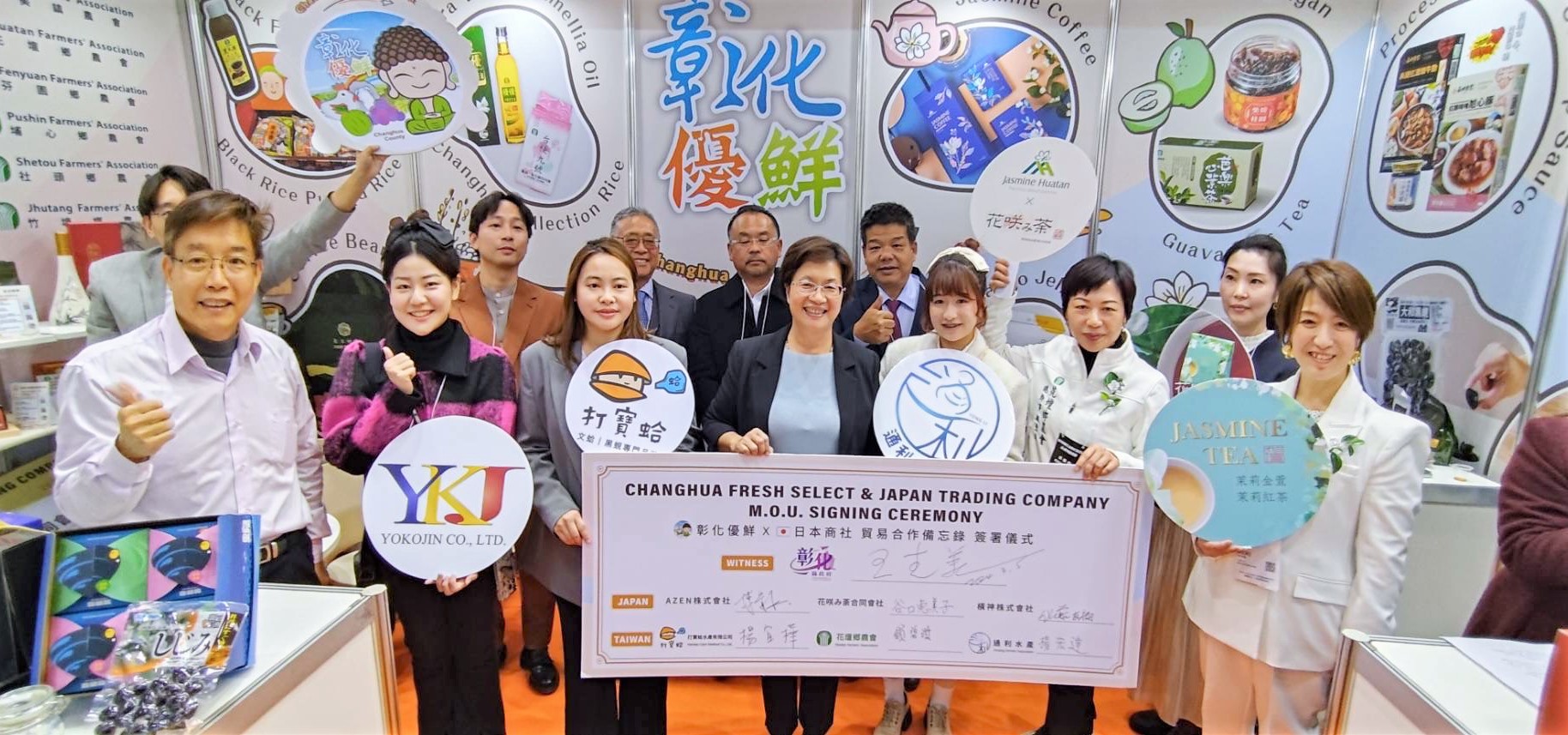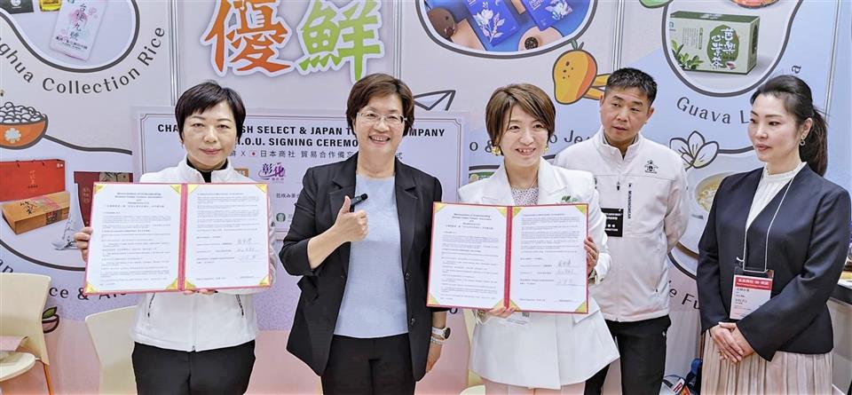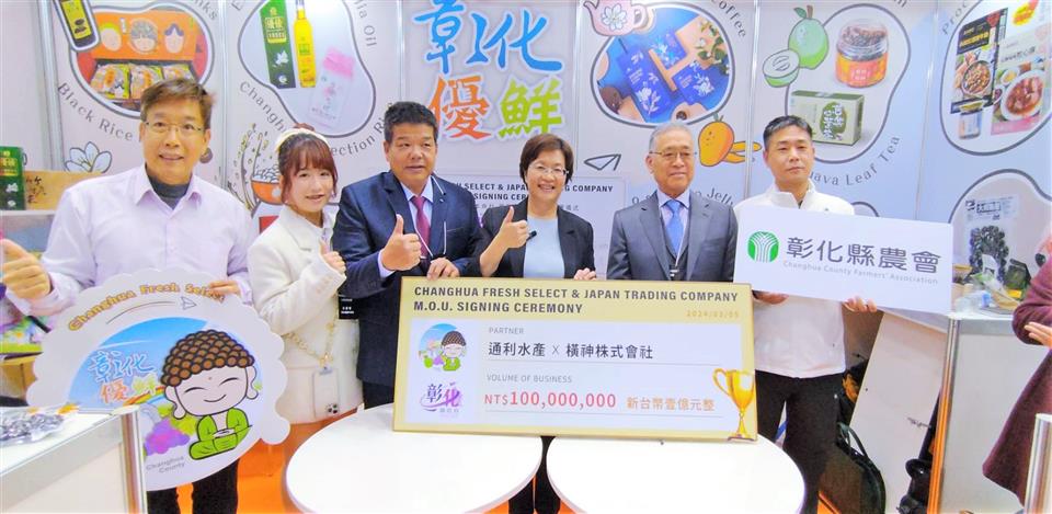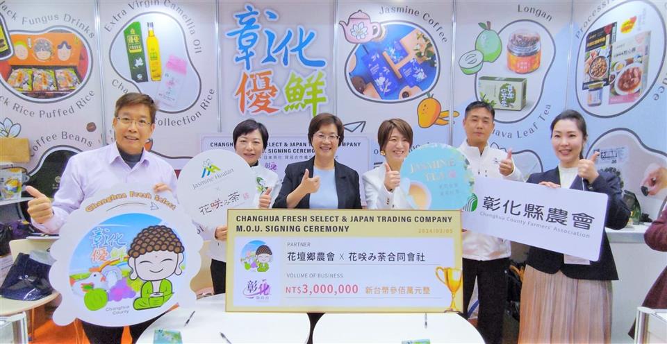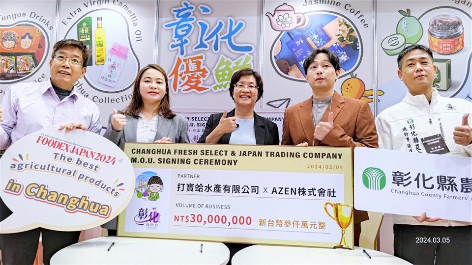 為提升「彰化優鮮」品牌能見度,並為彰化縣優質農特產品拓展全球行銷通路,彰化縣長王惠美、彰化縣農會總幹事張建豐一行人,3月5日參加為期4天的2024 FOODEX東京國際食品展,成功媒合彰化通利水產有限公司與日本橫神株式會社及彰化打寶蛤水產有限公司與日本AZEN株式會社及彰化縣花壇鄉農會與日本HANAEMICHA LLC等3家彰化優鮮廠商與日本商社共同簽署合作備忘錄,這次簽署為期3年合作,總金額達到新台幣1億3,300萬元,會展現場並由彰化縣農會、彰化縣各鄉鎮市農會、合作社、青農與彰化優鮮合格廠商共同設置的「彰化優鮮」展示攤位,讓世界看到最好的農漁特產在彰化優鮮。 王縣長表示,這是第二次帶著彰化隊,來到日本參加東京食品展,把26鄉鎮市最好的農林漁牧產品帶到日本參展,彰化農產品有很多,以「彰化優鮮」來做品牌行銷,產品需符合三章一Q才能加入,縣府也會替消費者把關,這次來到日本見證MOU的簽訂,經過1年來不間斷的努力及討論,終於簽訂MOU,感謝各農會總幹事的用心與努力,將台灣的好,彰化的棒,推薦給日本友人。 王縣長指出,縣政府持續推動產地到餐桌,使用彰化優鮮品牌,一來是肯定農民的用心,二來是為民眾的食品安全進行把關,這次與日本簽訂MOU有彰化通利水產有限公司、彰化打寶蛤水產有限公司、彰化縣花壇鄉農會,產值新台幣1億3300萬以上,簽約只是起步,希望未來能將更多彰化縣優質農特產推薦給日本友人。 王縣長進一步表示,彰化有亞洲唯二的扇形車庫活的古蹟,也有全球特有的海牛文化,還有世界唯一的台灣玻璃媽祖廟,歡迎大家有機會來彰化走走,感謝貿協、所有單位提供這個平台,讓彰化優鮮品牌讓世界看見,希望大家都能業績長紅,攏賺大錢。 彰化縣農會總幹事張建豐表示,埋藏已久的期待,化作今日相逢的喜悅,記得1年前,彰化縣農會總幹事們跟著王縣長的腳步第一次來到日本東京食品展,帶來很多很好的產品,經過1年的努力,有不錯的成果,我們看到彰化通利水產、打寶蛤以及花壇鄉農會,跟日本的廠商簽訂MOU,這是一個新的里程碑,也是歷史性的里程碑,期待未來在日本能買的到更多的彰化優鮮,彰化農業也會努力再前進。 彰化通利水產公司二代成員暨行銷經理楊渝涵表示,感謝王惠美縣長縣府團隊及在地農會的協助,讓彰化通利水產公司能有這個機會來到日本參展展覽,將很優質的彰化水產介紹給日本友人。 彰化打寶蛤水產有限公司三代成員品牌創辦人楊宜樺表示,感謝王惠美縣長縣府團隊及在地農會的協助,打寶蛤主要是使用無毒養殖、友善環境的方式來養殖黑蜆,期許能將通過認證且優質的水產品帶到日本來,讓日本友人品嘗到彰化味。 花壇鄉農會總幹事顧碧琪表示,去年,有幸與王惠美縣長來到東京食品展,推廣茉莉花茶,感謝日本的社長喜愛茉莉花茶,才有機會再行銷到日本的百貨公司,茉莉花茶的推廣是現在花壇鄉農會的一小步,將會成就未來的一大步。 稍早王惠美縣長在東京食品展台灣館開幕式時指出,近年來縣府積極拓展農產品外銷市場,除維持香港與新加坡等持續外銷的出口夥伴,這兩年連續率隊參加全球排名前三大的食品展,開拓國際貿易與外國超市的合作通路,終於傳出佳績,未來將持續努力於出口彰化農特產品到星馬、日韓、歐美等地,攻占當地人的味蕾並協助農友拓展更多海外通路,增進彰化縣農特產品外銷出口實績。 與會人員還有彰化縣農會總幹事張建豐、花壇鄉農會總幹事顧碧琪、各農會總幹事、農業處長邱奕志、新聞處長李俊德等人。