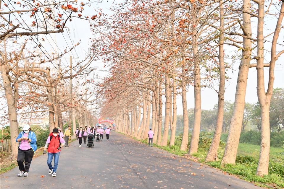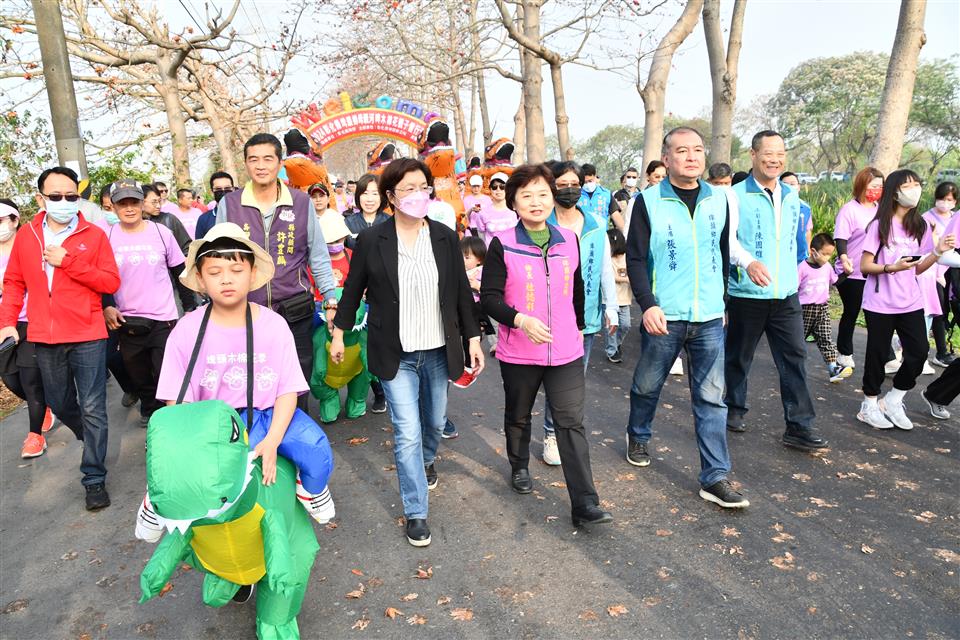 彰化縣埤頭鄉公所今(16)日一早在舊濁水溪中溪橋畔木棉花道盛大舉辦「2024彰化縣埤頭鄉母親河畔木棉花季親子健行活動」,彰化縣長王惠美、埤頭鄉長杜懿彩邀請全國民眾一同來埤頭鄉欣賞木棉花之美。王縣長感謝埤頭公所用心辦理活動,今年有親子健行、在地特色產業美食推廣及歡樂摸彩等活動之外,還有全國最長的木棉花道,正熱情如火綻放中,彰化是花都,春暖花開,歡迎大家龍來彰化遊玩賞花。 王縣長表示,今天天氣風和日麗,非常適合親子一起運動,中溪橋有開得非常漂亮的木棉花,感謝埤頭鄉公所長年來對木棉花道的推廣,縣府也不遺餘力的支持活動,讓更多民眾前來參與,今天的木棉花季親子健行活動,來回總共6公里的木棉花道,報名參加的人不但有參賽禮帆布提袋、社區美食餐券,走完全程還可以參加摸彩活動,有75吋液晶電視、20台腳踏車等多項大獎,獎項十分豐富,感謝公所的用心,讓活動更加精彩。 王縣長指出,埤頭鄉不僅是彰化的農業重鎮,有美麗的綠色隧道、田園風光,除了「彰化母親河」之稱的東螺溪,還有接住炸彈的合興宮媽祖,台灣穀堡稻米博物館、冰粽發明館、網羅彰化多元優質產品的彰化百寶村等景點,埤頭更有在地農產品「埤頭F4」-台粳9號米、蔥、包心白菜、平地高接梨,歡迎民眾來吃當季,享在地。 王縣長指出,縣府近期向中央爭取水環境整體改善計畫,總共核列7.66億,以生態保護、自然永續的工法進行水環境的整治,將讓在地的台灣伯樂、木棉花、台灣欒樹能成為埤頭當地的特色景點。 埤頭鄉長杜懿彩表示,感謝王惠美縣長在來參與活動,感謝縣府持續投入經費整治東螺溪,讓木棉花沿岸水質更加清澈,更撥列1700萬元持續打造木棧道及觀景台,相信明年來參與活動的民眾有更好的觀景體驗。感謝縣府及埤頭鄉民代表會的支持,除了今日的親子健行比賽,明天還有親子寫生比賽,希望鄉親可以利用假日期間,來木棉花道欣賞盛開的木棉花。 城觀處表示,3至4月是賞花的好時節,彰化各地開始百花齊放,有媲美金色隧道的「黃花風鈴木」、夢幻雪白的「苦楝花」、鐵道限定的賞花秘境「粉紅花旗木」、萬紫千紅的「蜀葵花海」以及熱情如火的「木棉花」等等,每月都有專屬季節的花兒熱情盛開,相關賞花資訊可至「愛玩彰化」搜尋,歡迎全國鄉親,來彰化賞花看表演、吃美食、遊景點。 與會貴賓有立委謝衣鳯服務團隊、埤頭鄉長杜懿彩、埤頭鄉民代表會主席張景舜、副主席陳國雄、議員劉淑芳服務團隊、縣政顧問林明暐、許豐麟、黃坤煌與各級民代及地方仕紳等。