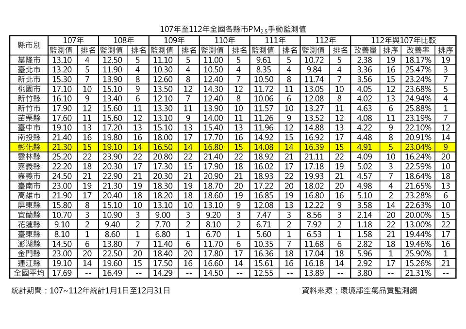 有關媒體報導IQAir瑞士空氣品質科技公司於113年3月19日公布第6屆全球空氣品質年度報告,台灣空氣品質最差前3名是彰化、台南和東港,經查其監測站數量、站名及PM2.5數據皆與環境部空氣品質監測網公示資料差異甚大,經查環境部空氣品質監測網彰化縣彰化測站112年度PM2.5手動年平均值為16.4μg/m3,並非IQAir網頁所指24.5μg/m3,也並非全台空氣品質最差之城市。 依據環境部表示,由於IQAir是瑞士一家販售空氣清淨機的私人公司,數據來源包含政府單位空品測站占39%,低成本空氣品質感測器(如IQAir業者製造販售的微型感測器)61%,且裝設位置不明,數據可能未必能反映真實情況。根據IQAir報告,2023年東亞地區多數城市PM2.5濃度為上升趨勢,台灣則由2022年13.4μg/m3上升至20.2μg/m3,升幅達5成。然而,環境部監測資料顯示,台灣2023年之PM2.5濃度為13.7μg/m3,相較2022年之12.4μg/m3,僅增加約1成,並非IQAir所述增加5成。 環保局表示,彰化縣近年致力於改善空氣品質,107年度至112年度PM2.5手動年平均值全國排名介於14~15之間,長期觀察本縣PM2.5濃度有大幅下降趨勢,從107年度之21.3μg/m3下降至112年度之16.4μg/m3,且112年度較107年度改善量更為全國排名第5,屬全國PM2.5改善前段班,本局將持續透過滾動式精進管制策略,務實的解決空汙問題,積極改善彰化縣空氣品質及維護縣民健康。