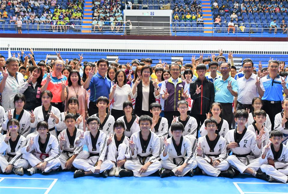 為推行普及化運動,培養默契及團體合作精神,讓學生感受運動的樂趣,並希望藉此培養學生規律運動習慣,強化體適能,24日上午於彰化縣立體育館辦理113年體育嘉年華會開幕典禮,彰化縣長王惠美到場為選手加油打氣,信義國中小跆拳小將們在全國賽事中成績亮眼,開幕式由小將們結合熱舞活力四射演出,另外,頂番國小陳冠佑同學在今年全國賽事中為彰化縣勇奪四金,代表宣誓,王縣長及與會貴賓,與小朋友進行毛毛蟲團體競跑,且展演踢毽子,現場洋溢歡樂氣氛,為活動開場,王縣長勉勵選手運動健身,歡樂動起來,發揮團隊合作精神,突破自我、再創佳績。 王縣長表示,現場有103校,2,904位選手來參與,比賽有6大項目,包括「趣味毛毛蟲團體競跑」、「團體跳繩計次賽」、「大隊接力」、「新式8人拔河賽」、「九宮格棒球擲準賽」及「民俗體育踢毽子」等項目,有趣味也有健身,要讓大家在歡樂中也能運動健身,為嘉勉表現優異的學校,感謝議會議長謝典林及議員們對預算的支持,以及各校師長、教練們長期用心推動體育教育,縣府特別提撥200萬元作為優勝學校競賽獎勵金,要讓選手們在參與運動時,不僅強壯體魄、培養團隊合作的精神,更能為學校爭取充實體育器材設備基金。另外現場也有辦理捐發票等租稅宣導及水域安全宣導攤位,讓選手在比賽之餘,也能學習正確租稅及防溺觀念。 王縣長表示,今年彰化子弟在各項競技運動上都有優秀的表現,如在上個月剛辦理完的113年全國中等學校運動會,彰化小將大放異彩,獲得20金24銀45銅,總共89面獎牌的好成績,而在更高層級的亞運會、全國運動會也都有彰化子弟奪金牌,這些都要感謝彰化選手們堅持不懈的訓練,以及老師教練們的用心輔導,才能有如此優異的成績。另外,縣府也爭取到「第16屆全國國中大隊接力賽」全國總決賽在彰化舉辦,預將在明年5、6月登場,鼓勵縣內各校積極備戰,展現彰化囡仔的運動實力,一起將冠軍留在彰化。 與會貴賓還有縣議員黃柏瑜服務團隊、縣府教育處長蔡金田、彰化縣地方稅務局長陳燕慧、溪湖鎮公所鎮長服務中心副主任楊定欽、各學校校長、及各級民意代表與地方仕紳等。