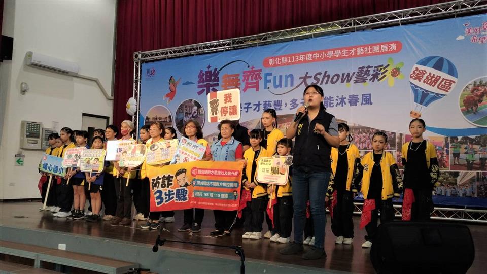彰化縣113年度中小學學生才藝社團展演活動熱鬧開鑼,今年共分區辦理4場,最後一場25日在埔心國中活動中心登場,為溪湖區—「湖埔學子才藝豐,多元展能沐春風」展演活動,學生才藝盡出、精采絕倫! 中小學學生才藝社團展演活動今年邁入第三年,今年才藝社團展演活動自3月30日至5月25日間共辦理4場次,由縣內中小學以一校至少一社團的方式,呈現學生多元才藝與社團學習成果,演出內容包含舞蹈、武術、太鼓、儀隊、陶笛、國樂、南北管、管弦樂、運動競技等,有如藝文饗宴嘉年華會,豐富又精采! 教育處指出,為了讓每個才華洋溢的彰化囝仔有大顯身手的機會,縣府積極建構多元的舞台,擴大辦理學生才藝社團展演活動,讓同學們在豐富的展演經歷中大放異彩,實現表演的夢想,將辛勤努力的習藝過程,轉化為舞台上引人入勝的精彩篇章,同時藉此增加校際交流與觀摩學習,傳遞本縣藝術教育量能,共創「美好彰化、希望城市」的共榮願景。不僅如此,各場次更邀請來警察局、環保局、衛生局、社區大學、樂齡學習中心設攤宣導,讓活動不僅很“藝術”更有“知識”。 教育處表示,本次為今年度最後一場才藝社團展演活動,誠摯邀請家長與鄉親蒞臨觀賞,您的熱情參與給予了彰化囝仔最大的支持與肯定,再次由衷感謝各位的共襄盛舉,為孩子們的學習路上增添無限動力。 與會貴賓有副縣長林田富、縣議員劉珊伶、立委謝衣鳯服務團隊、埔心鄉長張佩瑩溪湖鎮公所主秘顏明亮、溪湖鎮代表會主席陳孟宏、副主席黃佳惠、縣府教育處長蔡金田、縣府秘書詹秀貞、各校代表、各級民代與地方仕紳等。