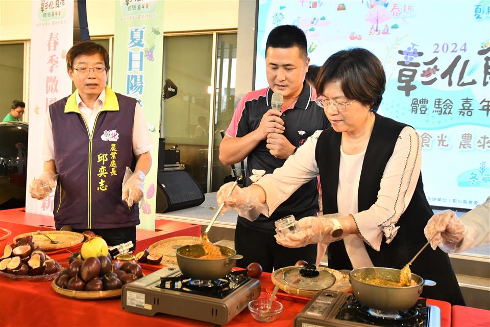 為讓民眾吃在地、享當季,並體驗彰化獨特的食農饗宴。彰化縣政府「2024彰化食農體驗嘉年華」,以「四季好食光 農來遊彰化」系列特色農事體驗,不僅可減少食物的碳足跡,還能享用彰化當季味道正好、營養豐富的蔬菜和水果。今(28)日上午於縣府中庭舉辦宣傳記者會,現場由王惠美縣長和與會貴賓示範製作百香果醬,現場由和仁國小四位小朋友石秉祐、吳孟宸、楊宜涵、洪沛愉,榮獲112年全國四健作業組競賽一等獎,為記者會活動介紹縣產彩椒,為活動暖場,王縣長歡迎全國鄉親報名參加,一起來感受彰化農業的美好,夏季遊程從即日起報名到額滿為止,才開放報名馬上全部秒殺,秋冬季遊程則從9月1日開放報名,歡迎全國鄉親把握機會、踴躍報名,一起來彰化體驗農遊樂趣,享受在地好食材。 王縣長表示,彰化是農業大縣,有豐富的農產、畜產與水產,在台灣農業生產上具有舉足輕重的地位,食農嘉年華系列活動今年是第三年,今年為讓民眾一年四季都能吃在地、享當季,特別以「四季」為主題辦理25場次系列食農教育體驗活動,春季8場遊程已辦理完成且場場報名秒殺,緊接著夏季,暑假期間,帶來更多場精采的食農體驗活動,還加入內容豐富的食魚體驗活動,後續還有秋季,有限量的蕎麥體驗活動,費用從200元到750元不等,請大家拭目以待。 王縣長指出,縣府致力推動食農教育,去年成立食農教育輔導團,透過一系列校園食農課程向下扎根,培養學生珍惜食物的觀念,同時也與農漁會及在地青農合作,整合農業、觀光、休閒等資源,再藉由食農教育的方式來推廣,去年農業部辦理第一屆全國創新食農教育體驗活動競賽,彰化縣就有5個單位獲得優選,以及埤頭青農食農遊程提案也榮獲十大食農體驗經典路線,都凸顯彰化推動食農教育的用心及努力,再次邀請全國鄉親一起來彰化遊農村吃美食。 農業部臺中區農業改良場長楊宏瑛表示,彰化的食農教育很早就開始做了,而且做得很好,今年特別規劃25場活動,推動食農教育的重要面向,包括彰化有很多在地化農產美食,如菜脯蛋、花椰菜乾爌肉、甜椒等,別具在地特色,還有透過食農教育,縣府每年也多次抽樣把關,推動產銷履歷,替國人的健康把關,因為有優質的農產品,才能帶動消費,讓農業永續發展。 彰化縣農會總幹事張建豐表示,鋤禾日當午,汗滴禾下土;誰知盤中飧,粒粒皆辛苦,這是古人教導食農教育的精神,隨著時代變遷,現在的食農教育很不一樣,今年王惠美縣長縣府團隊整合資源,一整年都有獨特食農教育體驗活動,在四季以各鄉鎮市的在地農產,讓大家來做食農教育體驗,透過育教於樂的方式,讓大朋友帶著小朋友一起來體驗,邀請所有鄉親來參加彰化縣辦的食農教育體驗,一同遊彰化。 農業處表示,彰化縣食農教育資源相當豐富,目前有26個休閒農場、15家觀光工廠及3個休閒農業區,青農人數超過2,600人全國最多, 夏季暑假期間,將辦理更多場精采的食農、魚體驗活動,首先由二林鎮農會於6月15日辦理「遊農園覓好食·葡見不散」活動,將結合于恩果園進行葡萄採果及包裝、葡萄果汁DIY等體驗;線西鄉農會於6月22日辦理「風之鄉食農趣」活動,將結合台灣優格餅乾學院及聆風農場進行多肉植物盆栽及地瓜餅DIY等體驗;二水鄉農會6月29日辦理「果然好紅」活動,結合四季農園及倡和社區發展協會進行火龍果小盆栽及輕食沙拉DIY等體驗;埤頭鄉農會6月30日辦理「梨饗埤頭 蔥滿希望」活動,結合產銷班農民及藝龍種苗進行平地梨解說導覽、百香果嫁接苗及蔥點心DIY體驗等。 彰化縣農會7月6日結合愷式好米進行爵餉米體驗及祈福注連繩DIY等;鹿港鎮農會7月13日結合樂採果溫室觀光農場進行採摘番茄、焢窯及紅寶石水果棒棒糖DIY體驗等;7月20日彰化縣農會結合萬春羊牧場及路葡萄酒莊進行擠羊奶、採葡萄及羊奶優格DIY等體驗;田尾鄉農會結合瑞楓園藝進行開運竹盆栽及精緻花束DIY體驗等;和美鎮農會結合源埤生態園及農民果園進行夏日梨果DIY及生態導覽等;7月27日福興鄉農會結合愷式好米及黃金蜂園進行碾米體驗、割稻飯品嘗及蜜蜂生態體驗等;芳苑鄉農會結合上佑農場進行菇菇吊飾DIY、採菇及太空包裝體驗等。 花壇鄉農會於8月3日結合大山牧場及茉莉花夢想館進行餵牛體驗,牛奶製品及茉莉花茶品嚐等;彰化縣農會於8月24日結合海牛學校進行潮間帶走讀、搭牛車體驗及牛牛杯墊DIY等。另外彰化區漁會結合哈哈漁場於每月辦理食魚教育體驗活動,6月活動除了有認識牡蠣、烏魚等體驗外,還推出端午節特別活動,整個夏天彰化都有快樂有趣的食農、魚體驗等你來參加。 與會貴賓還有縣議員温芝樺、台中區農業改良場長楊宏瑛、彰化縣農會總幹事張建豐、員林市農會總幹事黃豐盛、線西鄉農會總幹事王嘉琪、和美鎮農會總幹事謝燕如、福興鄉農會總幹事林坤宏、溪湖鎮農會總幹事陳金源、竹塘鄉農會總幹事詹光信、溪州鄉農會總幹事彭顯賦、田尾鄉農會總幹事吳政憲、田中鎮農會總幹事張瑞欣、大村鄉農會總幹事廖瑞樺、芳苑鄉農會總幹事謝介民、二林鎮農會總幹事邱士平、社頭鄉農會秘書劉正訓、埤頭鄉農會秘書許雅珍、秀水鄉農會秘書陳松柏、彰化市農會主任張香元、芬園鄉農會主任廖梅茜、永靖鄉農會主任林瑞敏、伸港鄉農會主任柯景元、大城鄉農會主任劉双美、花壇鄉農會秘書陳合益、埔心鄉農會秘書張正利、鹿港鎮農