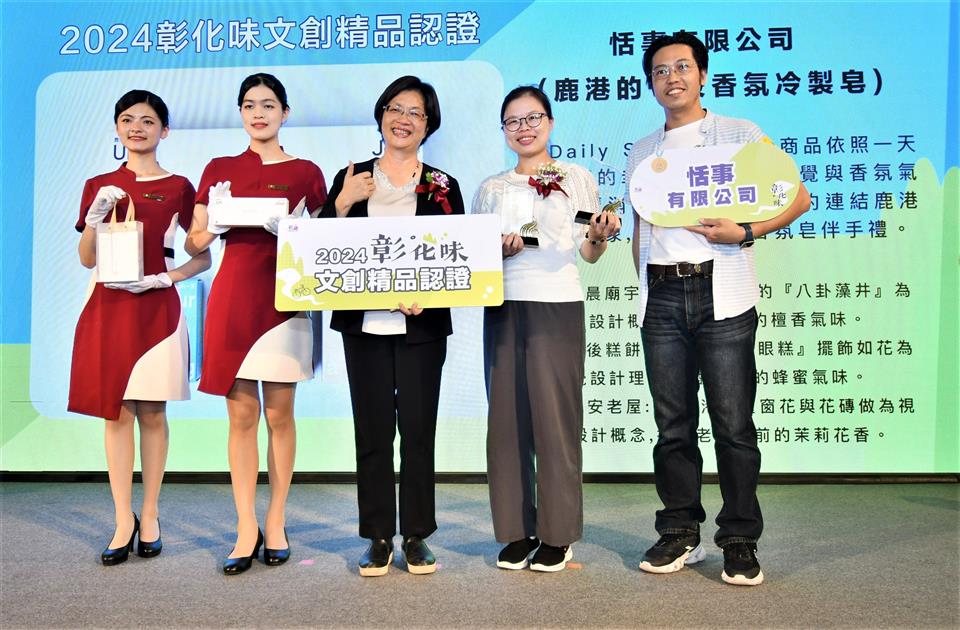 彰化縣政府為鼓勵縣內業者打造富含文化連結及意象之文創商品,扶植在地文創產業品牌,提升產品形象價值及國際競爭力,今(6/4)日上午在縣府中庭舉行授證典禮,縣長王惠美表揚獲獎業者,王縣長表示,2024彰化味文創精品認證徵選活動,精品認證共57家業者報名,商品總件數95件,最終精選出12件文創商品入選,包含文創商品類8件、視覺及包裝設計類4件,每件商品都別具特色,各入選商品預計於年底上架在今(113)年度建置的彰化味文創品牌網站上,加強行銷力道,彰化縣政府亦期盼未來能帶領業者至相關文創博覽會展示宣傳,讓彰化文創展現獨特的彰化味魅力,進而發光發熱。 王縣長表示,彰化建縣有300年,有豐厚的人文底蘊,過去,大家對彰化商品的印象就是便宜又大碗,大家都很喜歡買,現在,彰化味,各產業加上自己的文化特色,如傳統在地產業、節慶活動等在地意象,讓商品中融入多元元素,提升產品的附加價值,讓商品富含彰化味及故事性,更具獨特魅力。 王縣長指出,感謝這次參與徵選的在地文創業者及青年朋友們,透過獨特的設計和精湛的工藝,提升產品的附加價值,更透過設計將這些故事陳述出來,也感謝評審委員的辛勞,全方面為彰化味文創精品把關,希望透過這次認證活動,持續推動彰化文創發展,扶植出更多彰化優秀的文創業者,2025年台灣設計展在彰化,也將透過設計展讓更多人看到這些富含在地文化特色的文創商品。 國立臺灣師範大學設計學系系主任蘇文清表示,他在彰化的10年間,因為擔任社區營造計畫的主持人,踏遍彰化各鄉鎮。社區營造有「人、文、地、景、產」等五大面向,其中「產」就是最後一道關卡。一個好的產品需要透過在地創意、素材等,創造出產品的特質與內涵,接者還要有「賣相」,才能夠進入到「精品」的階段。之後還要再考慮如何與市場對接、生產數量是否能夠滿足市場需求、如何推廣行銷到市場等。因此在遴選這次90幾件作品過程中,絕對不是看產品的單一構面而已,而是會去考量背後的脈絡與行銷,遴選出標竿性的產品,讓日後參加的廠商可以學習,進而創造出更棒的產品。 彰化縣商業會副理事長楊曜聰表示,王縣長常說,不怕沒人才,就怕沒舞台,縣府特別創造一個精品選拔的舞台,讓許多在地文創工作者有機會可以展現他們的創作能力,也把富含彰化味的商品推展出去,今天活動現場讓他眼睛為之一亮,王惠美縣長縣府團隊真的很認真,將文化變成商品,只要把在地產業慢慢推廣出來,相信年輕人就會回到彰化,期待未來彰化縣商業會跟大家攜手,讓彰化的文創產業持續蓬勃發展,讓更多有創意及想像力的年輕人能夠發揮才能,也將好的商品行銷出去。 文化局表示,文創商品類入選8件商品如下:卡里善之樹有限公司的「扇型車庫百年紀念傘」,設計源自於彰化旅遊景點「扇型車庫」,傘面生動呈現火車的多樣風貌及扇型車庫的包容精神;寶豐香皂股份有限公司為彰化田中傳承75年老店,商品「帶一碗米皂回家」巧妙與當地米廠合作,為結合在地產業、永續議題的典範;恬事有限公司的「鹿港的一天香氛冷製皂」及「彰化的一天 空間香氛噴霧」,透過視覺與香氛氣味,營造一天時序的幸福想像,讓消費者能直覺性的連結在地印象;白玥窯工作室之「田野香座系列」以彰化地理特色發想,並結合環保網狀紙材包裝;格瑋國際有限公司強調台灣文化為核心理念,商品「品竹花器」及「品竹調味罐」皆以竹為主題,結合瓷器材質,展現高品質工藝,極簡卻不凡;參先生工作室的「再生名片夾直式卡套組」,選用剩餘布料為主要材料,融合綠色環保理念。(其中,恬事有限公司及格瑋國際有限公司獲得雙獎) 視覺及包裝設計類4件入選商品如下:華新橡膠工業股份有限公司「MOTEX鑽石型醫用口罩禮盒組」為100%可回收的環保口罩,設計融入彰化縣歷史文化,突顯輝煌和守護主題;花壇鄉農會「風華綻現禮盒」傳承當地茉莉花文化,打造安全無毒的茉莉花商品;員林食品有限公司「仙草甘茶12入禮盒」,凝聚著百年仙草的傳統與當代創新,以深邃的黑色包裝展現獨特且深邃的特質;宥森企業有限公司「台灣小吃刺繡美食襪四入禮盒組」以正宗台灣風味為核心,打破傳統單一包材,完美融合優雅設計與在地風格。 本次複審邀請文創、設計及行銷等領域專家學者組成評審團,針對產品的視覺美感、文化元素、創意發想、及發展潛力進行整體性的評比。視覺美感方面以產品整體的創意構想、獨特性、造型、及美觀質感進行檢視,文化元素方面以產品具備彰化在地性故事、或代表彰化地方特色精神象徵為主要評比依據,創意發想層面以產品的創意設計與獨特構想,且具備設計者與製作者的精神融入進行評比,發展潛力層面則以產品量產的可行性、市場接受度、及異業合作的潛力作為評比依據。經委員評審及密集討論,嚴選出12件優質商品,兼具與設計巧思、在地文化連結及環境永續精神,件件優質。 與會人員還有縣議員陳玉姬、彰化縣商業會副理事長楊曜聰、國立臺灣師範大學設計學系主任蘇文清、花壇鄉農會總幹事顧碧琪、彰化縣文化局長張雀芬、縣府秘書黃雅伶、賴清隆、各級民代與地方仕紳等。