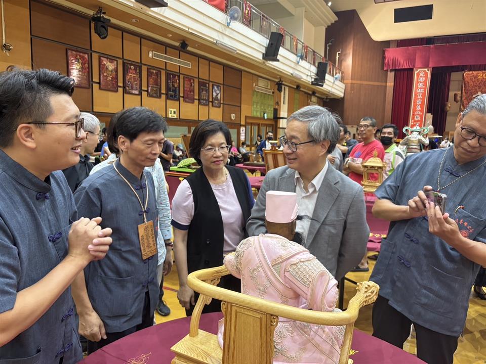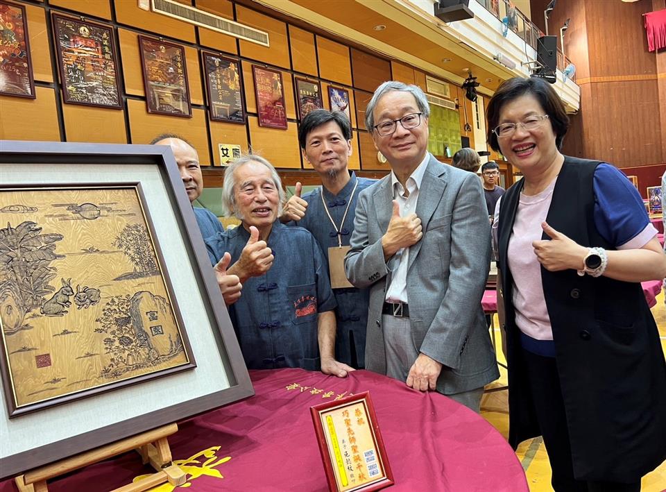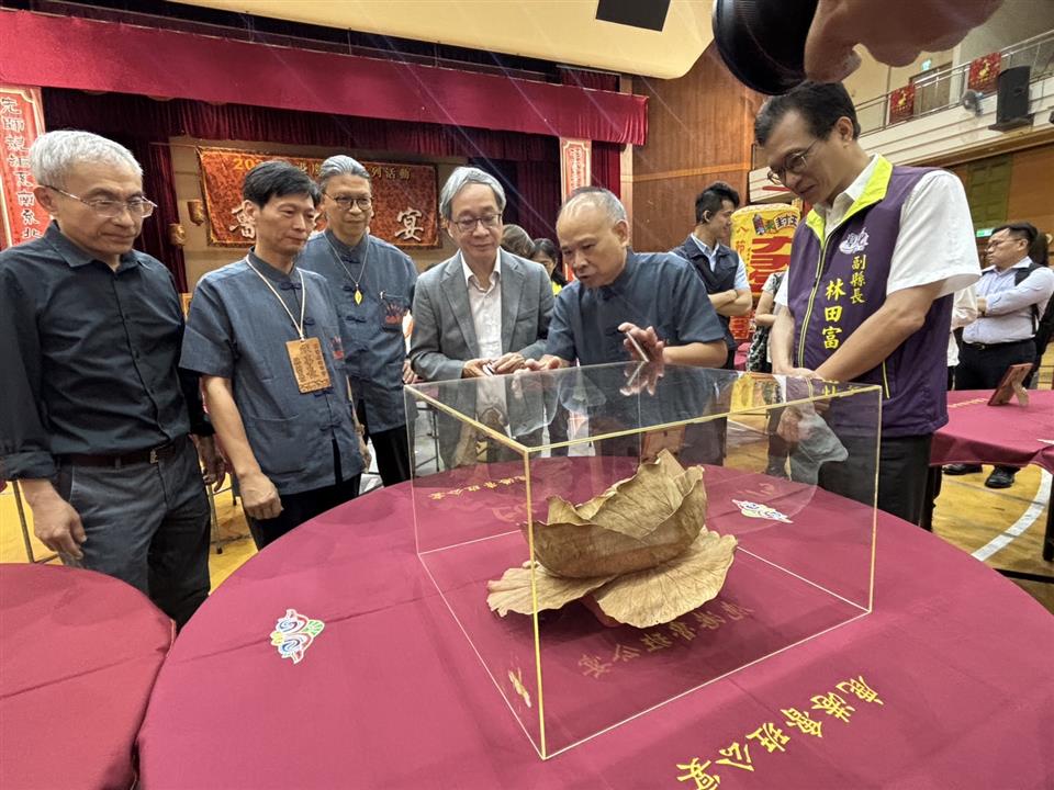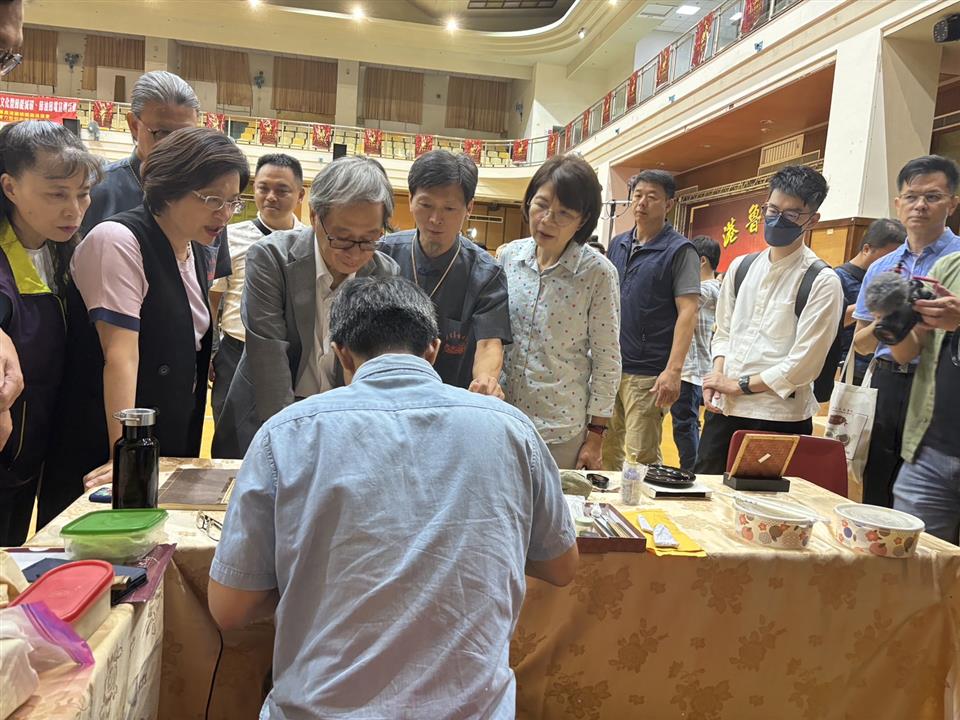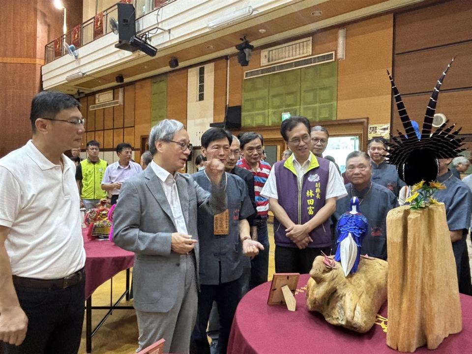 113年鹿港魯班公宴」巧聖先師祀典儀式於今(6/10)日上午在亞太鹿港渡假村舉行,彰化縣長王惠美、文化部長李遠、鹿港鎮朝陽鹿港協會理事長林新發等人出席祭典儀式,現場並展出108桌「看桌」形式的工藝 作品,展示作品共35類、超過500件,呈現壯闊的工藝作品排場。 鹿港魯班公宴,自1996年開辦以來,每年邀請全臺工藝家將集結一整 年心血結晶作品,以傳統民間祭拜習俗的「看桌」展示工藝品,將工藝作 品擺置於供桌齊心「宴祖師」,呈現結合宗教信仰與傳統工藝的藝文活動 ,有傳統工藝技藝的展現,更蘊涵深厚的歷史與文化。 「鹿港魯班公宴」為紀念工藝界的巧聖先師魯班公,於每年魯班公誕 辰日(農曆5月7日)前後舉行「巧聖先師祀典儀式」,祭祀鹿港巧聖先師 會、國立傳統藝術中心及國立臺灣工藝研究發展中心共3尊魯班公神尊, 在儀式中邀請各地工藝家擔任十大護法及五寶侍者,並請主祭官依傳統習 俗獻上班門五寶「文公尺、墨斗、斧頭、大鋸、規矩」,傳達尊師重道的 精神。此外,今年主辦單位於「獻五寶」儀式後增加「祭先賢子弟」儀禮 ,以表達對工藝先賢的崇敬,也復振過去魯班公宴的傳統儀式。 今(10)日為魯班公宴活動最後一日,延續早期鹿港地區魯班公會的組 織型態,下午於會場採跋桮的形式,擲選新任巧聖先師會值年爐主,以擲 最多聖桮獲選新任爐主,作為魯班公宴最後一個儀式,也是重要的起始儀 式,且巧聖先師會魯班公神尊由新任爐主請回家中供奉一年。文化部長李遠親自出席擔任主祭官並逐桌參觀工藝作品,部長表示自己小時候跟著爸爸在廟裡畫門神,今天看到這些工藝作品時,情感彷彿回到小時候。越在地越國際,相當驚艷臺灣的工藝融合現代,不斷精進,感謝臺灣工藝師一輩子奉獻於臺灣工藝。 主辦單位鹿港鎮朝陽鹿港協會表示,為推廣臺灣傳統工藝,今年特別 建立「線上藝廊」,於每件展示工藝品前設置QR code,讓民眾可以透過 線上藝廊進一步認識工藝家及其工藝作品;另外,今年鹿港魯班公宴擴大 舉辦系列活動,包含巧藝薪傳傳統匠師現場操作、百工獻藝傳統工藝市集 活動、DIY工藝小學堂,為進行教育推廣,並與鹿江國際中小學合作,提 供國、臺、英語三種語言導覽服務,讓民眾能多元化的體驗工藝之美,4 天精彩活動佳評如潮,吸引約4萬人次,且祭典維持有老、中、青三代工藝師參與的傳統,希望未來能繼續綿延不斷,一代傳一代來參加魯班公宴。 與會貴賓有故宮博物院院長蕭宗煌、文化部文化資產局局長陳濟民、國立臺灣工藝發展中心主任陳殿禮、國立傳統藝術中心副主任陳修程、人間國寶施鎮洋、陳萬能、立法委員黃秀芳、縣議員凃淑媚、施佩妤、福興鄉長蔣煙燈、鹿港鎮長許志宏、副縣長林田富、彰化縣文化局局長張雀芬、縣政顧問許富足等地方仕紳。