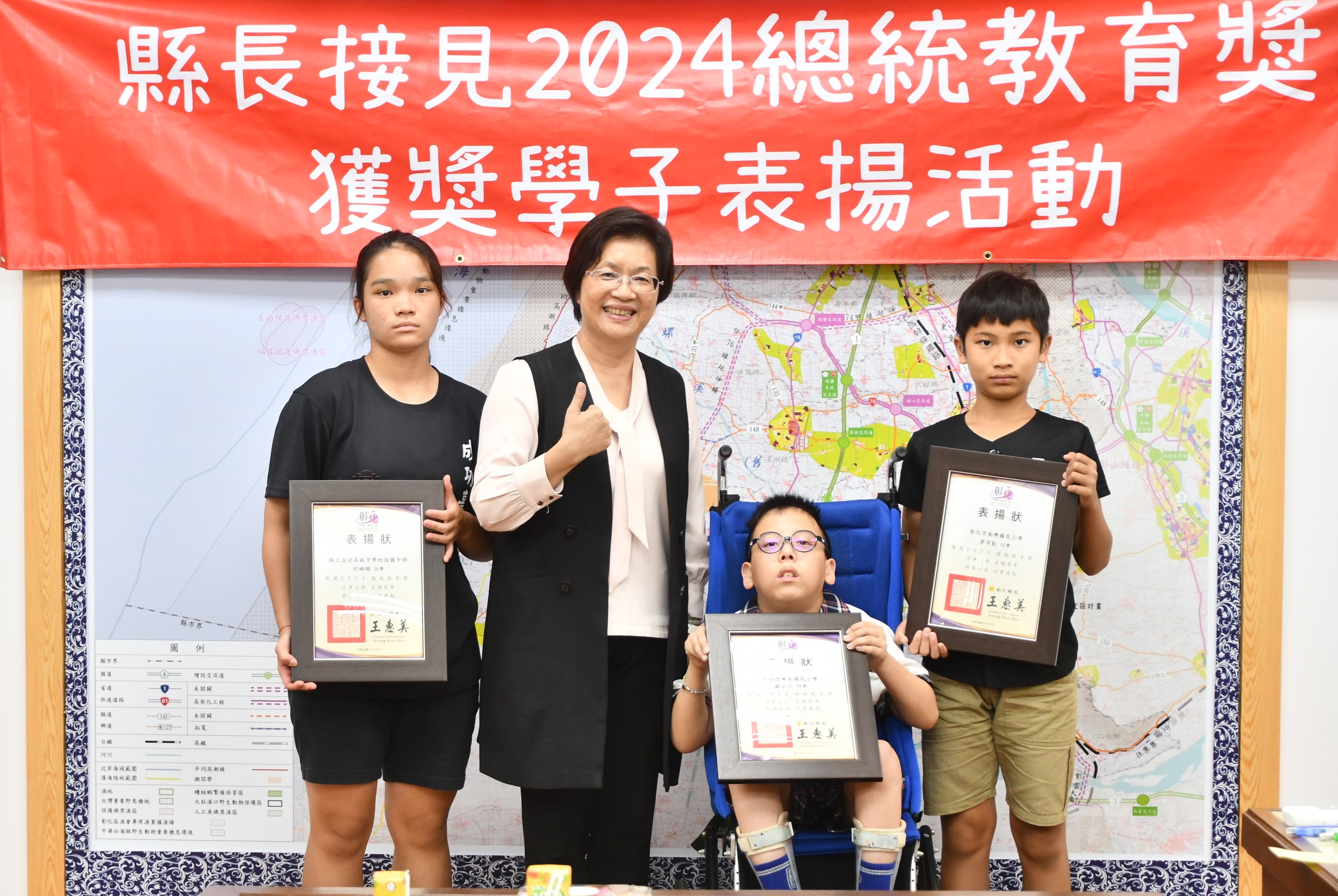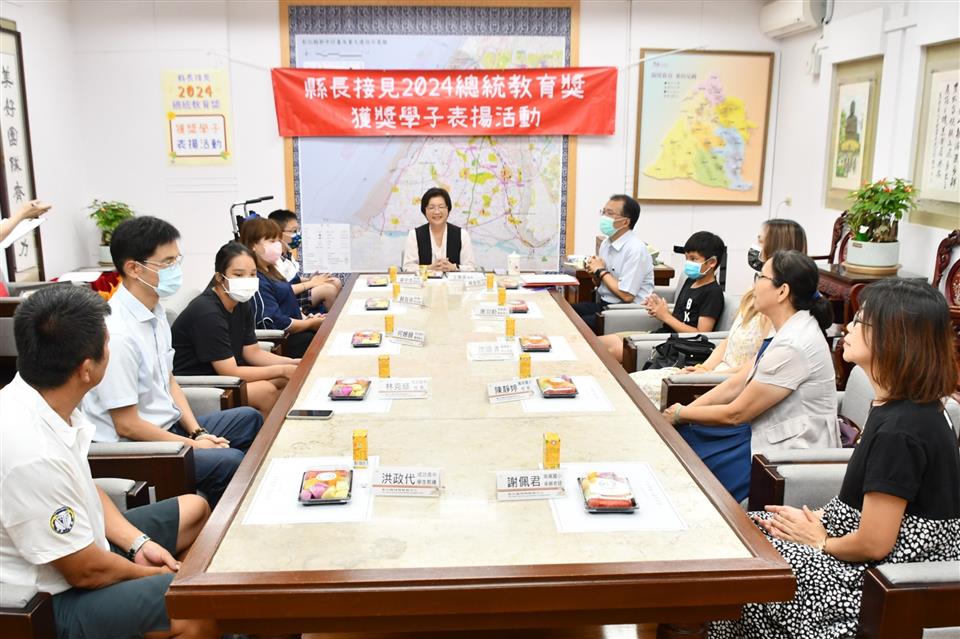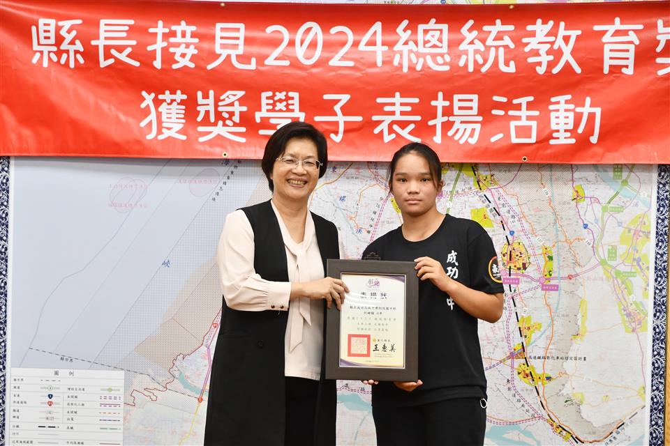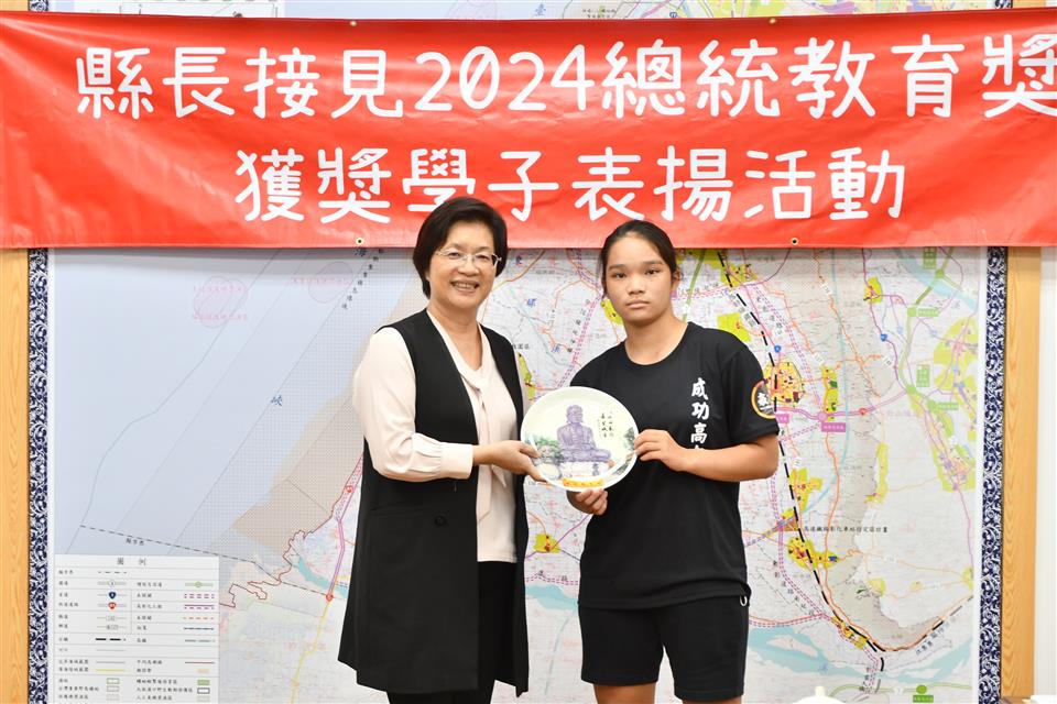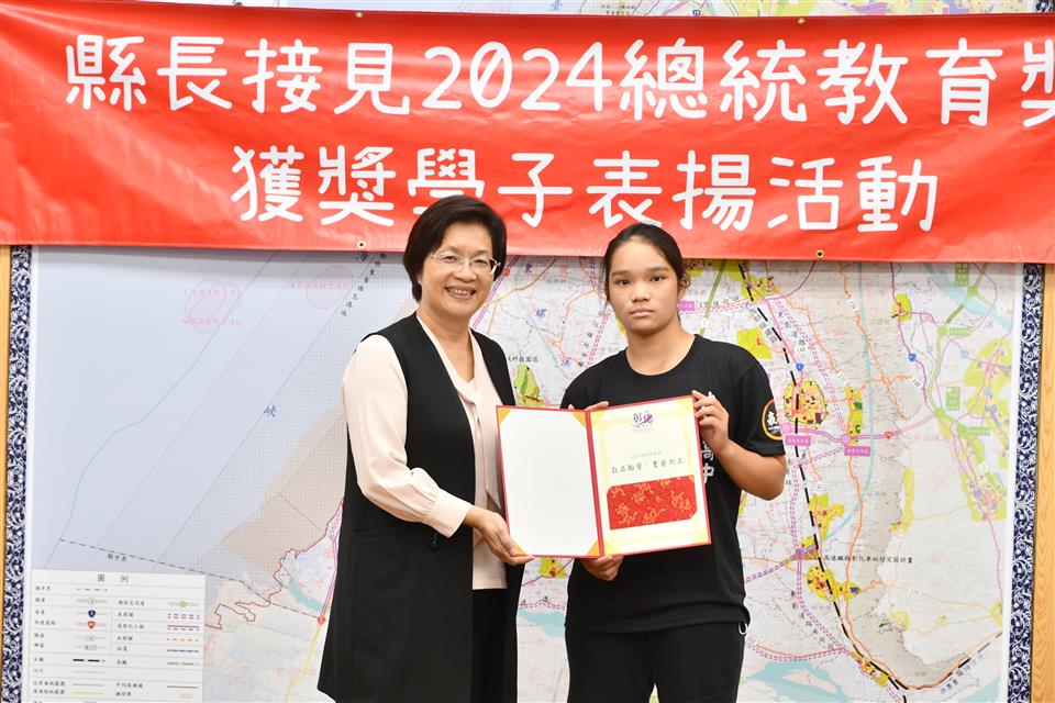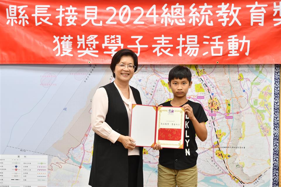 今年總統教育獎由全國各級學校推薦的410名學生中,歷經層層審查後,彰化縣計有3人得獎,分別是縣立成功高中國中部何姍頤同學、南興國小唐羽勤及萬來國小嚴宇浩同學,彰化縣長王惠美於21日在縣長室接見表揚並頒發獎學金各1萬元,王縣長表示,「敦品勵學 奮發向上」,恭喜三位同學克服障礙與努力不懈,於全國410名推薦學生中脫穎而出,榮獲2024總統教育獎,力爭上游的生命故事,不畏懼生活的困苦,克服先天的不便,奮發向上的精神值得鼓勵,也是彰化之光,感謝校長、教練、老師、家長的鼓勵與陪伴,命運掌握在自己手上,期許同學突破自我、再創佳績。 王縣長表示,萬來國小的嚴宇浩同學克服身體的障礙,雖然他的醫院治療師曾評估他終身無法執筆書寫,但他每天忍痛一筆一劃反覆練習,如今,已能書寫工整國字,在各科學習中經常獲得優異成績或進步獎,並二度蟬聯模範生。 王縣長指出,南興國小唐羽勤同學,自小因聽覺障礙,在學習過程上跌跌撞撞,但羽勤並不氣餒,雖然聽不到的耳,但經多次的練習後,眼睛可以看出聲音來,在閱讀、運動和繪畫方面展露長才,積極參加比賽,獲得多項獎項。特別是在閱讀方面,他獲得了學校多項書香獎,也富有正義感,經常幫助同學,未來立志成為一名有智慧且樂於助人的法官。 王縣長表示,成功高中國中部的何姍頤同學,自小家境清寒遭逢父親意外過世,但她從未向命運低頭,為了改變自己,她選擇加入拳擊隊,勤奮苦練,突破困難,不僅在112年獲得全中運銅牌及總統盃全國錦標賽金牌,展現了永不放棄的精神,現在更是學弟妹們的最佳指導員,期望未來朝拳擊隊國手之路努力。 萬來國小的嚴宇浩同學表示,很高興今天能夠來跟縣長媽媽見面,未來希望能夠用自己的力量幫助更多需要的人。 南興國小唐羽勤表示,他立志未來希望能夠成為一名法官。 成功高中何姍頤同學表示,能夠獲得總統教育獎,要謝謝教練、老師以及學校,期望能夠藉由她的故事,鼓勵更多人不畏逆境,勇往向前。 與會陪同貴賓有縣府教育處長蔡金田、縣立成功高中校長林克修、教練洪政代、南興國小老師謝佩君、萬來國小校長陳靜婷等。