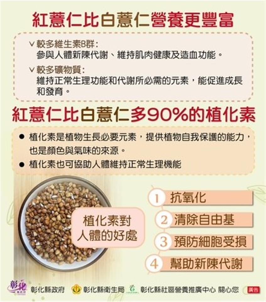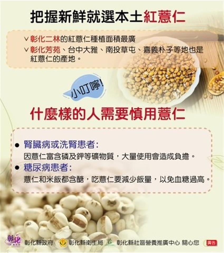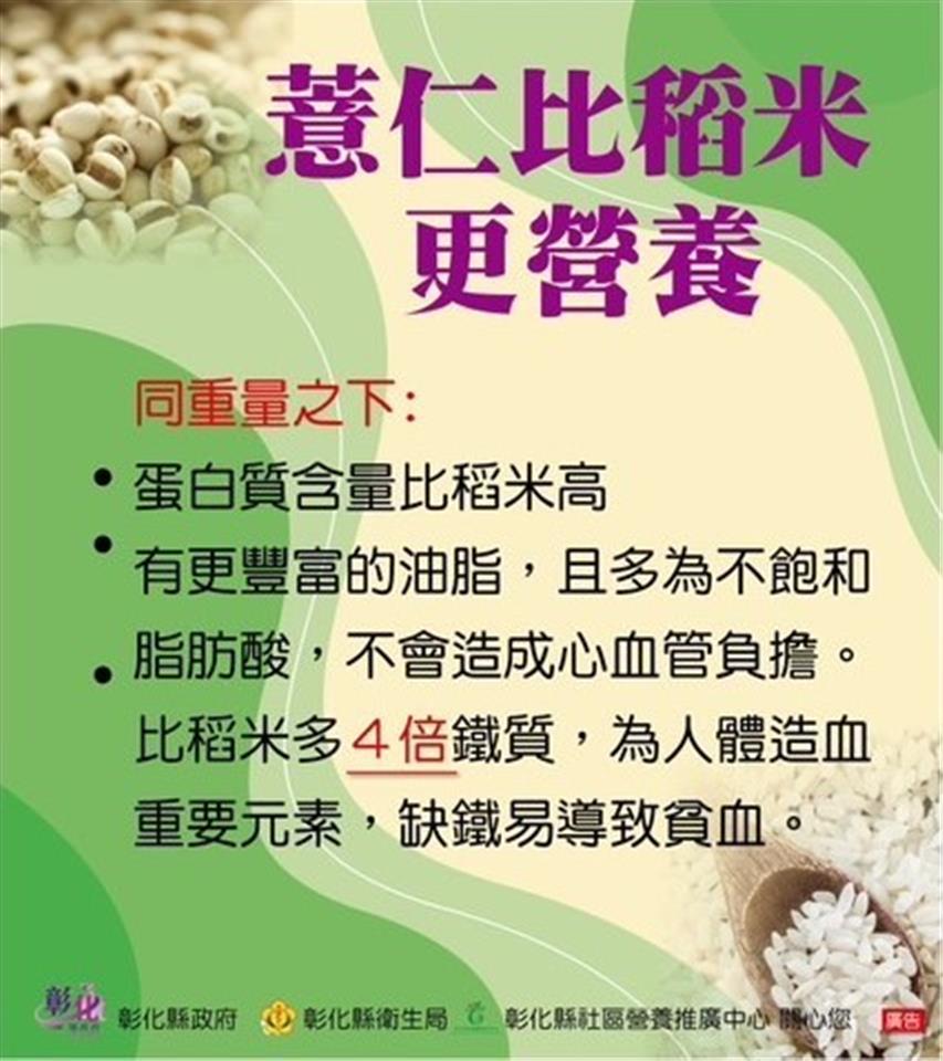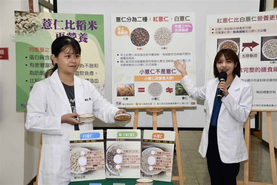 彰化縣衛生局於113年7月30日上午在縣政府新聞處外的咖啡藝廊舉辦「健康薏仁 營養滿點」記者會,旨在提升民眾對薏仁的認識,並鼓勵大家將薏仁融入日常飲食,以促進全民健康。 本次活動由彰化縣衛生局局長帶領多位營養師共同探討薏仁的營養價值及其對健康的多方面益處。隨著現代人飲食習慣以白米和精製麵食為主,這些食品在加工過程中流失了大量營養成分。相對而言,未經加工的薏仁保留了更多的維生素、礦物質和膳食纖維,對人體健康具有顯著益處。 施曉婷營養師指出,薏仁的營養價值遠超過稻米,主要分為紅薏仁和白薏仁兩種。其中,紅薏仁不僅保留麩皮,且營養成分更為完整,膳食纖維含量是白薏仁的兩倍,並富含維生素B群,有助於新陳代謝、維持肌肉健康及促進造血功能。此外,紅薏仁的植化素含量高出90%,對身體健康有額外益處。 針對特定人群的健康建議,腎臟病患者及洗腎病人應慎用薏仁,因薏仁含有較高的磷及鉀,過量食用可能對腎臟造成負擔。同時,糖尿病患者在食用薏仁時應減少飯量,以避免血糖過高的風險。 彰化縣二林鎮與芳苑鄉為台灣薏仁重要產地。活動中,營養師現場示範了兩道薏仁料理,包括「薏仁銀耳消暑湯」和「創薏彩蔬御飯糰」,以鼓勵民眾在日常飲食中輕鬆融入薏仁,增加膳食多樣性。 衛生局希望通過此次活動,提升民眾對薏仁的認識,並鼓勵更多人將薏仁添加到日常飲食中,以促進全縣居民的健康並預防各類疾病。未來,衛生局將持續推廣健康飲食理念,提升民眾的健康意識。