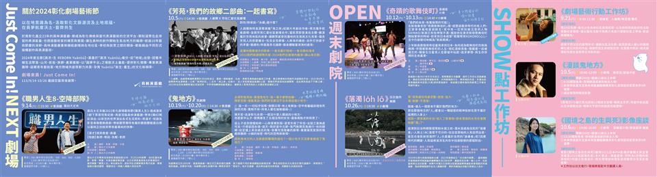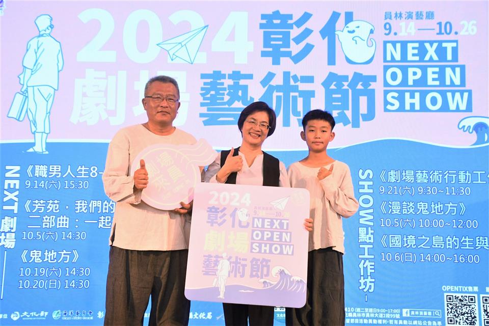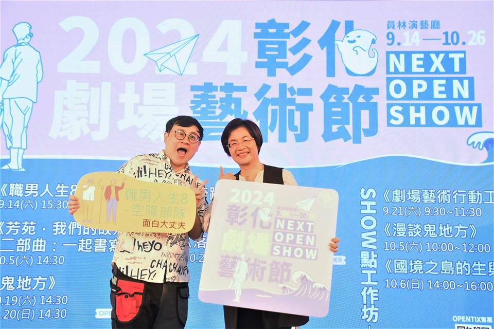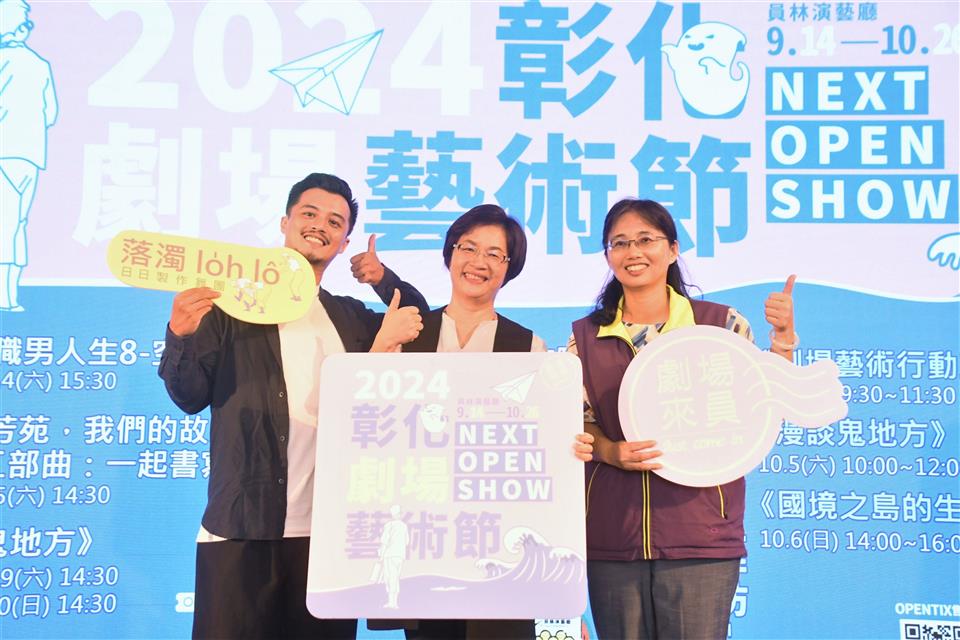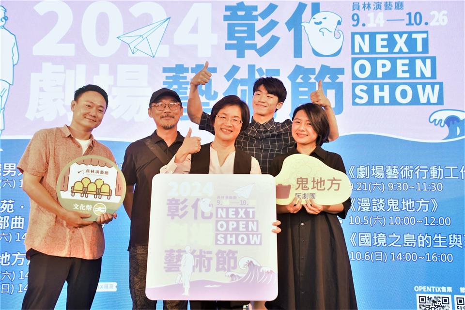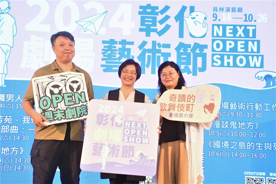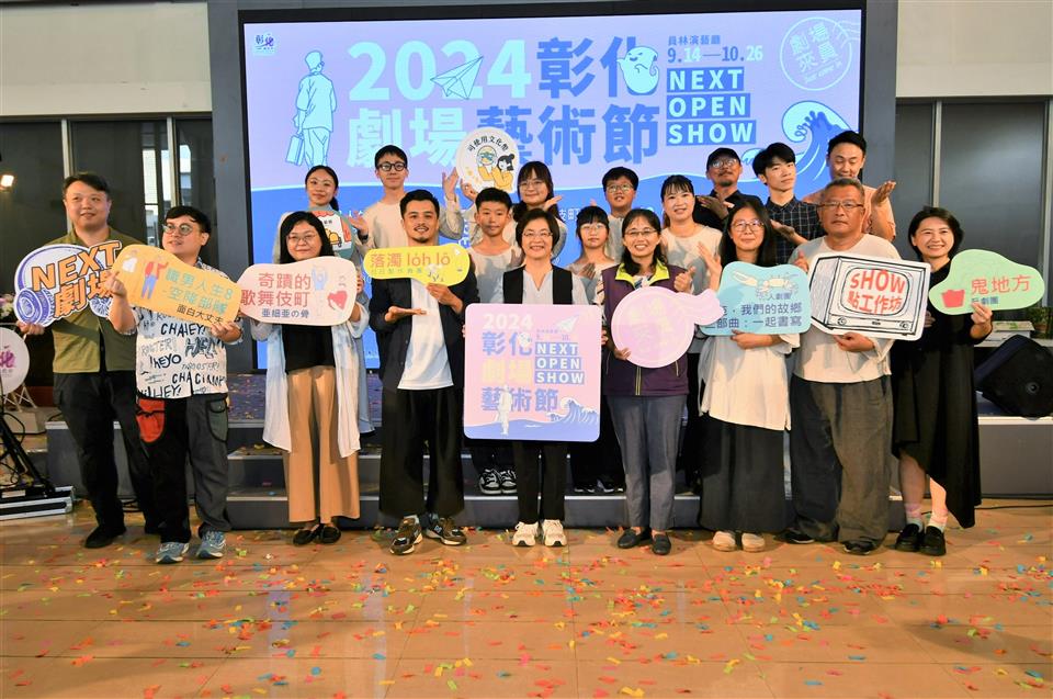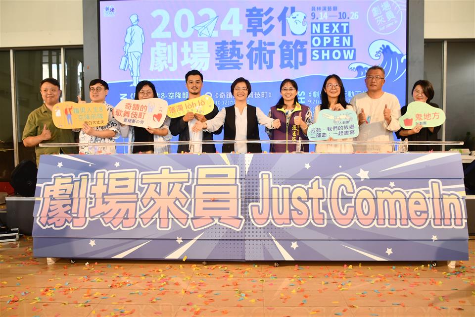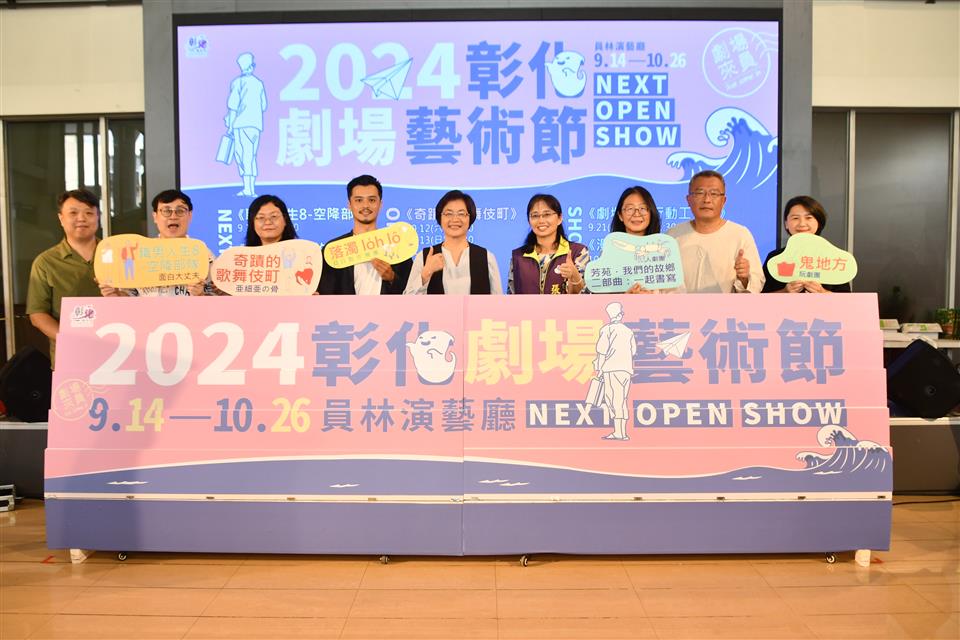 邁入第11年的「彰化劇場藝術節NEXT OPEN SHOW」,彰化縣文化局今(1)日上午於縣府中庭舉辦「2024彰化劇場藝術節」活動記者會,由彰化縣長王惠美介紹今年秋天在員林演藝廳的系列活動,彰化縣旅德作家陳思宏跨海以影片感謝縣長及書迷的支持,阮劇團也帶來《鬼地方》精選片段演出,現場充滿語言美感與戲劇氛圍,王縣長表示,每年大家引頸期盼的彰化劇場藝術節,即將在9月14日至10月26日,將於員林演藝廳隆重登場,由國內外5組優質表演團隊帶來5檔精彩演出、4場演後座談及3檔工作坊,邀請大家來看戲。 王縣長表示,2024彰化劇場藝術節邀請5組劇團帶來5檔精彩好戲,首場次9/14(六),由年輕人喜愛的「面白大丈夫」帶來日式搞笑風格的《職男人生8-空降部隊》,以笑聲為藝術節揭開序幕;第二場10/5(六),是長期關注彰化海岸生態的「人劇團」與「芳苑仁愛社區」共創的《芳苑,我們的故鄉二部曲:一起書寫》劇場,由社區居民演出自身討海人與海搏鬥的故事,感動人心。第三場10/12(六)-10/13(日),則由臺灣劇作家林孟寰與「日本亞細亞の骨」跨國共製的《奇蹟的歌舞伎町》,講述在日本的臺灣人追求夢想、拚搏生存的故事。第四場10/19(六)-10/20(日),「阮劇團」將改編永靖作家陳思宏的《鬼地方》小說,帶來全球首演的舞台劇。壓軸場10/26(六),則由文化部媒合的新創演藝團隊「日日製作舞團」帶來的《落濁》,講述濁水溪流域與人的交互共存。 王縣長表示,另外安排4場演後座談及3檔工作坊,提供觀眾及學員與編導、演員、幕後製作的互動機會,豐富多元的課程規劃,包含劇場藝術行動、文本與劇本創作、電影影像設計等,期待能碰撞出更精采的創作火花。歡迎大家即日起到「兩廳院文化生活售票系統」購票,8月31日前可享早鳥優惠75折,且年底前持票券到員林演藝廳配合的藝文店家享有「一票雙享」消費折扣。另外,鼓勵青年學子使用文化幣線上購買員林演藝廳的青年席位指定席、5折自由座再送精美小禮!邀請鄉親把握於員林演藝廳登場的「彰化劇場藝術節」系列活動。 文化局表示,「2024彰化劇場藝術節」系列節目8月1日中午12點於OPENTIX兩廳院文化生活售票系統( https://www.opentix.life/ )全面啟售,即日起至8月31日購買NEXT OPEN任一節目可享早鳥優惠75折!年底前持藝術節票券前往員林演藝廳藝文店家消費還有一票雙享折扣!另外提供青年學子絕佳優惠,使用文化幣線上購買員林演藝廳節目,除了青年席位指定席、限量5折自由座,還有好禮三重送(買就送、填問卷再送、來3次加碼送)!邀請全民藝起劇聚,規劃屬於自己的劇場秋日輕旅!購票請上OPENTIX兩廳院文化生活,更多詳細活動內容請上員林演藝廳官網( https://gov.tw/Q9G )或洽04-8323410。 與會貴賓還有彰化縣文化局長張雀芬、面白大丈夫團長董軒、人劇團團長蔡旻霓、芳苑鄉仁愛社區發展協會理事長陳焕明、演員廖玉玲、洪立洧、林奕辰、林可芯、陳威宇、人劇團共創演員曾少彤、顧紘恩、宅故事創作故事總監林孟寰、同毗文化有限公司製作人廖心彤、阮劇團團長蔡明纯、導演莊雄偉、行銷統籌嚴婕、演員顧軒、鍾汶叡、日日製作舞團藝術總監許庭瑋、彰化縣私立精誠高級中學教師陳銀桂與學生等人。