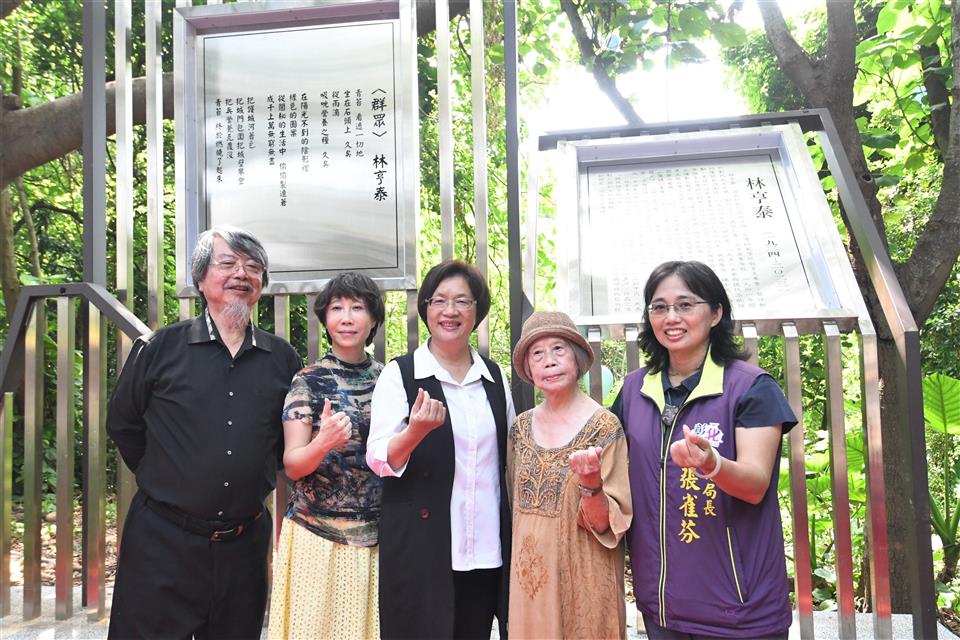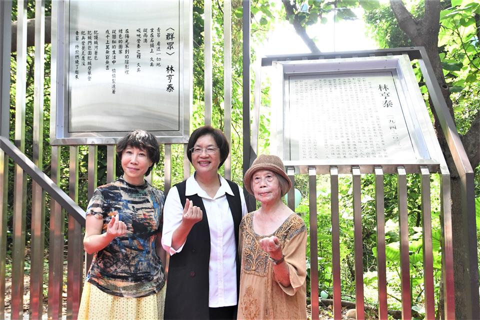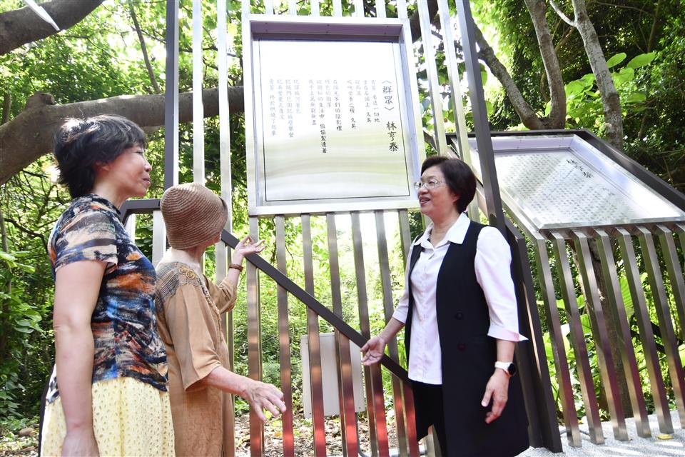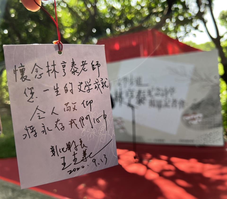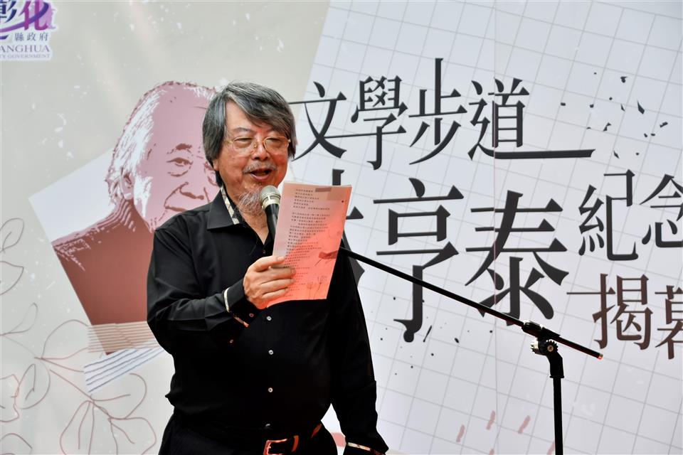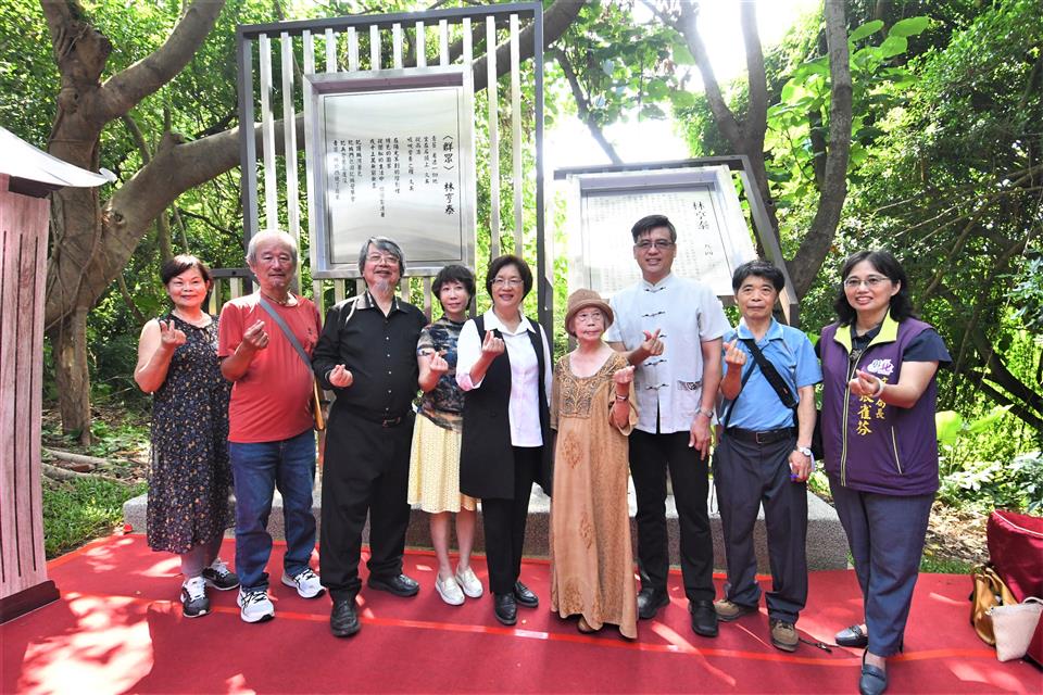 跨語世代重要詩人林亨泰於2023年9月辭世,為紀念林亨泰老師辭世一週年,且感謝其為彰化文學盡心盡力的貢獻,彰化縣文化局於八卦山文學步道上新建林亨泰紀念詩亭,於今(9/13)日上午舉行揭幕儀式,彰化縣長王惠美、林亨泰夫人黃綺雲女士、女兒國立臺灣師範大學林巾力教授及詩人康原等貴賓一同揭幕,會中邀請到康原老師朗誦林亨泰老師作品,由彰化學子音樂演奏,祝賀紀念詩亭新建落成、感懷林亨泰老師。王縣長祈福卡寫下「懷念林亨泰老師:您一生的文學成就令人敬仰將永存我們心中」。 王縣長表示,彰化是台灣文壇的重要搖籃,培育出許多舉足輕重的文學家,為了讓鄉親認識彰化文學家,縣府自2001年興建「八卦山文學步道」,兩旁設立了13座詩亭,有賴和、陳肇興、洪棄生等多位文學名家的代表作及生平介紹。這次特別新增第14座「林亨泰紀念詩亭」,向老師致上最崇高的敬意,感謝老師一生對於台灣文學的貢獻。 王縣長指出,林亨泰老師1924年出生於彰化北斗,去年9月辭世,享嵩壽100歲。一生對臺灣新詩推動,有非常深遠的影響,他曾經歷過語言的轉變,成為台灣文壇重要的「跨語世代作家」,留下無數珍貴的文學寶藏,並長期推動彰化文學,一生獲獎無數,今年4月更榮獲國家最高文化榮譽「行政院文化獎」,表彰老師對臺灣文學領域的傑出貢獻。 王縣長指出,今年9月老師逝世一週年,除了紀念詩亭揭幕,文化局特地在「磺溪文學」系列活動中,安排兩大主題讓大家更加認識林亨泰老師,一是明、後兩天(9/14、15)有「文學走讀—懷念林亨泰」活動,帶領大家走訪老師的生活軌跡。二是在縣立圖書館3樓的彰化學專區,有「字裡行間—福爾摩莎詩哲林亨泰」主題書展,感謝師母及巾力教授提供老師珍貴的手稿及照片,展期自即日起至11月30日,歡迎民眾前往參觀,共同緬懷彰化之光、文壇巨擘的林亨泰老師。 臺灣師範大學臺灣語文學系教授林巾力(林亨泰女兒)說,感謝王惠美縣長縣府團隊舉辦文學步道林亨泰紀念詩亭揭幕,感謝縣府長期以來對於文學文化領域的重視與努力,她從小在人文薈萃的彰化成長至今,身為縣民感到非常榮耀 。感謝縣府於111年提名行政院文化獎審核,113年4月榮獲國家最高文化榮譽「行政院文化獎」。感謝康原(康丁源)老師長期與父親林亨泰交流對於彰化文學非常熱心投入,再次感謝縣府及詩友讀者的支持。 笠詩社長利玉芳表示,看到八卦山有這麼棒的文學步道,林亨泰先生與笠詩社淵源頗深,是笠詩社第一位主編及評論家,今天林亨泰紀念詩亭的建立,在這個適合吟詩的地方,也在活動的紀念小卡中寫下祝福,愛好詩詞的詩人們,期望在這個詩亭中,能與林亨泰一甲子的著作一起享受詩詞的美好。 文化局表示,林亨泰老師對臺灣文學的貢獻無數,其文學歷程亦為臺灣現代詩發展的縮影,是臺灣重要的文學寶藏,歡迎到文學步道感受彰化的文學氛圍,參加系列活動,懷念林亨泰老師的同時更了解他的文學人生。 與會貴賓有縣議員黃千宴、黃柏瑜、彰化縣文化局長張雀芬、城市曁觀光發展處處長王瑩琦、林亨泰老師夫人黃綺雲、臺灣師範大學教授林巾力、笠詩社長利玉芳、彰化文學家康原、彰化文學家蔡榮勇、彰化師範大學國文系主任楊菁、彰化師範大學教授葉連鵬、前進人文願景工作室執行長賴瑞玲、彰化縣讀書協會理事長葉妙玲、磺溪文學獎歷屆得獎作家張薈茗、林秀蓉、彰化藝術高中秘書李淳淳、聯合大學教授黃豐隆、晨星出版社主編徐惠雅與各級民代及地方仕紳。