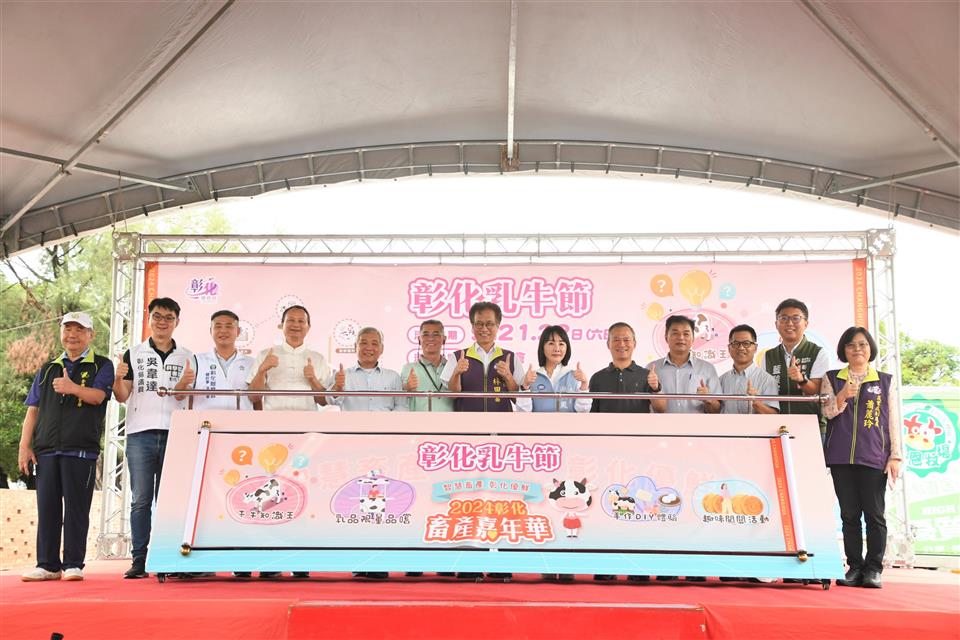 彰化縣為畜牧業大縣,是全國畜禽產品重要的產地,彰化縣政府為推廣彰化在地優質畜禽產品,辦理「2024彰化畜產嘉年華-智慧畜產.彰化優鮮」系列活動,9月21、22日兩天由福興鄉農會在福興穀倉辦理「2024彰化乳牛節」,展現彰化國產生乳產量全國第一的在地優勢。副縣長林田富代表縣長王惠美與福興鄉農會理事長粘銘燦、常務監事蔡成芳、總幹事林坤宏等人出席,今天是彰化畜產嘉年華系列活動第三場次,喝牛奶補營養「鈣」健康,歡迎大小朋友選購在地生產最新鮮、品質最可靠、口感最濃郁最香醇的國產鮮乳,第四場「彰化豚肉節」9月29日在田尾怡心園,歡迎大家一起來參與。 林副縣長表示,彰化是台灣酪農產業重要生產縣市,縣內乳牛的畜養量超過3萬頭,年產值超過33億,生乳產量為全國第一,彰化養出來的牛一年可生產10公噸以上的生乳,所以「天噸牛」之稱號,全臺灣天噸牛頭數分布縣市中,彰化排第一名,品質也非常好。今天乳牛節活動,有展示區、銷售區,還有DIY區等,現場還有限量的鮮乳、鮮乳小饅頭,讓遊客免費品嘗。另外,也邀請鹿江詩書畫學會及崇晉書道學會,在福興穀倉辦理詩書畫聯展,讓大家也能感受彰化人文薈萃的藝術文化。 福興鄉總幹事林坤宏表示,彰化縣是畜牧大縣,彰化在9月舉辦畜產嘉年華,以雞、鴨、羊、豬、牛為每週不同的主題,畜牧業對於彰化非常重要,前年面對美國豬進口,雖然產生危機,但是在風雨中渡過危機,現在國內豬隻也有穩定的銷售,未來面對紐西蘭牛乳免關稅進口,雖然可能帶來衝擊,但相信台灣一定可以化危機為轉機,大家一起努力。 農業部農民輔導司長陳俊言表示,經營畜產業非常不簡單,從生產、環境改善及畜牧發展,農業部會大力給予支持,並且重視食農教育,支持本土產品,國內所有的農產品、乳製品都非常優質,跟國外進口做出產品區隔,相信國內產品也可以維持很好的運作,也呼籲大家多加支持國產品,一起喝國產鮮乳。 農業處表示,為響應推廣國產優質乳品,由彰化縣草食動物產業協會、統一企業股份有限公司、光泉牧場股份有限公司、中華民國農會台農鮮乳廠熱心捐贈乳飲品,藉由彰化乳牛節活動宣導民眾愛用國產鮮乳,建立民眾長期飲用鮮乳習慣。 與會貴賓還有農業部農民輔導司長陳俊言、農業部農業金融署長李聰勇、立委謝衣鳯、縣議員藍駿宇、吳韋達、縣議員黃俊源服務團隊、凃淑媚議員服務處、福興鄉長蔣煙燈、二林鎮長蔡詩傑、農業部畜產試驗所北區分所長蕭振文、農業信用保證基金會襄理陳平軒、彰化縣草食動物產業協會黃德仁理事長、彰化縣草食動物產業協會常務監事顏志明、彰化縣水禽協會理事長吳鴻基、彰化縣養豬協會理事長陳筆輝、彰化縣養豬協會總幹事涂孟妤、彰化縣農會總幹事張建豐、員林市農會總幹事黃豐盛、田尾鄉農會理事長楊春枝、線西鄉農會總幹事王嘉琪、溪州鄉農會總幹事彭顯賦、埔心鄉農會總幹事張旗聞、田中鎮農會總幹事張瑞欣、秀水鄉農會總幹事吳明信、溪湖鎮農會總幹事陳金源、埤頭鄉農會總幹事王宋民、彰化市農會總幹事白閔傑、永靖鄉農會總幹事陳翠玲、北斗鎮農會總幹事陳瑩昇、大村鄉農會總幹事廖瑞樺、二林鎮農會總幹事邱世平、二水鄉農會總幹事羅崴騰、田尾鄉農會總幹事吳正憲、縣府農業處代理處長蕭麗玲、縣政顧問許瑞庭、黃建元、全國農業金庫董事長吳明敏、台中區農業改良場、各級民代與地方仕紳等。 活動詳情請上彰化乳牛節活動粉絲專頁(https://www.facebook.com/p/%E5%BD%B0%E5%8C%96%E4%B9%B3%E7%89%9B%E7%AF%80-61550357933240/ )查詢。