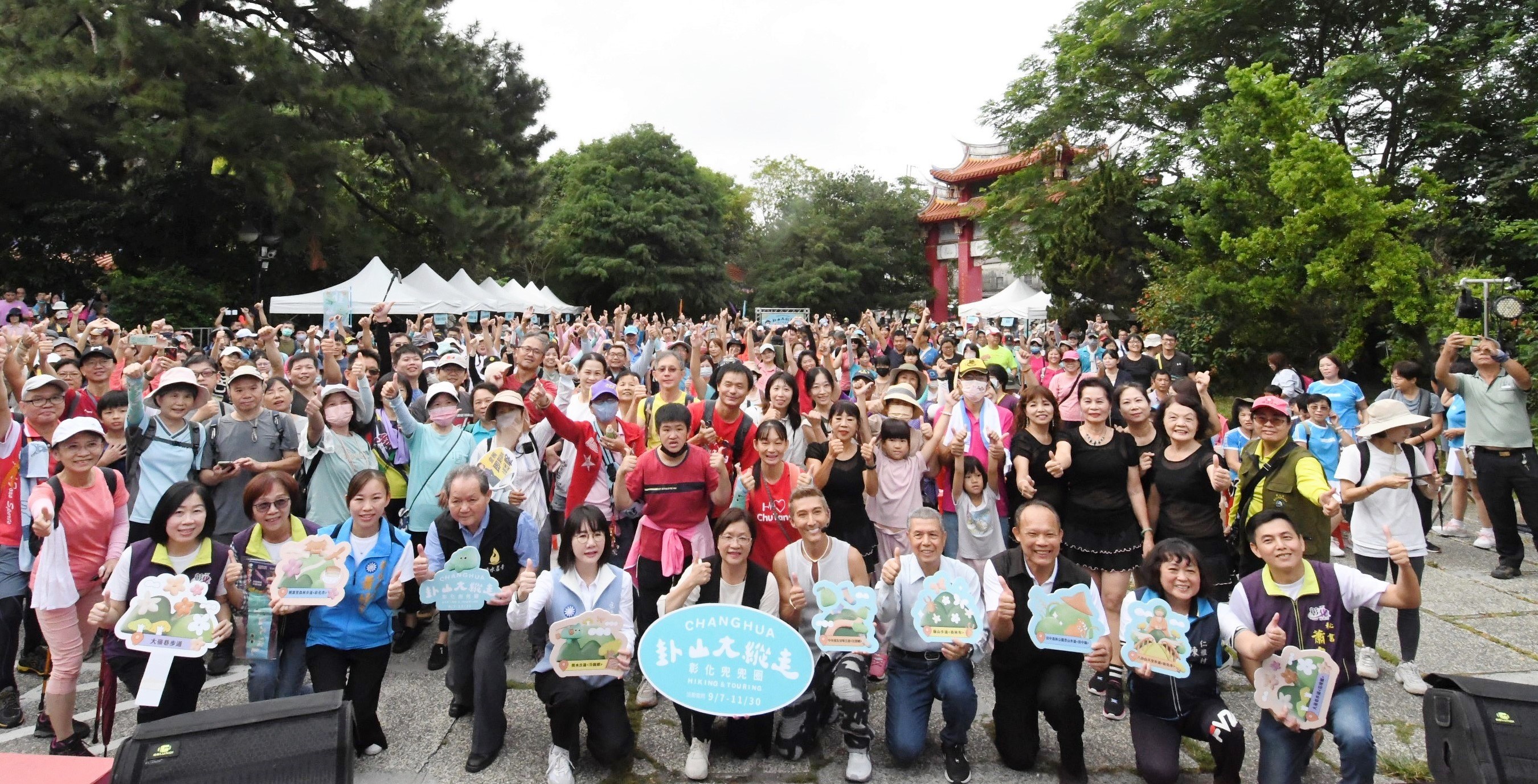 今年「卦山大縱走 彰化兜兜圈」活動從9月7日起至11月30日止,為期將近3個月,第四場今(5)日一大早彰化縣政府攜手社頭鄉公所等單位,在社頭清水岩寺廣場舉辦登山健行活動,彰化縣長王惠美與亞洲有氧天王潘若迪老師、與會貴賓及鄉親一起暖身帶動跳,每位報名完登社頭中央嶺及十八彎古道的民眾都能獲得限量紀念的物資包(有茄芷袋、涼感毛巾、礦泉水、小餅乾),還有加碼電視摸彩活動及在地「森活市集」農特產展售,現場超過二千人一起挑戰社頭「中央嶺及十八彎古道」。王縣長表示,要活就要動,没有健康就什麼都没有,身體健康真的很重要!「卦山大縱走 彰化兜兜圈」第4場活動來到社頭清水岩,二千人以上要來走社頭清水岩中央嶺及十八彎古道,名列台灣必訪百大步道之一,非常具有挑戰性,風景也十分優美,來清水岩健行不僅能讓身體更加健康,還有清水岩寺觀世音菩薩賜福與加持,完登後還可以逛逛購物,一舉多得。 王縣長表示,感謝清水岩寺提供很好的場地,議長謝典林及議員們對預算的支持、公所等單位的協助,社頭有三多,「芭樂多、襪子多以及董事長多」,近期是芭樂的產季,芭樂可說是香甜又可口。另外,全國75%織襪都是來自社頭,來社頭就能買到品質好又便宜的襪子。社頭近年更大力發展觀光產業,歡迎民眾健行後能到福井鐵道文物館、樂活襪之鄉博物館、台灣手套博物館等觀光,品嚐在地美食小吃。 王縣長指出,鄉親健行只要報名參加完成1條,即可兌換1份步道完登禮,完成4條路線以上,更能抽大獎,獎品有iPad Air、Apple Watch、50吋電視等多項登山休閒好禮,下週六接力第五場(10/12),在八卦山天空步道,健行更是結合「彰化爌肉飯節」大胃王比賽,完登還有兌換爌肉飯一碗,歡迎鄉親一起來健走。 社頭鄉長蕭浚二表示,感謝王惠美縣長縣府團隊來社頭舉辦卦山大縱走活動,社頭有好山好水,鄉親一起來中央嶺及十八彎古道健走,公所也一起辦理在地「森活市集」農特產展售,歡迎大家多來消費;另外,附近還有清水岩生態展示中心,裡面有600多種蝴蝶,社頭鄉是個好地方,有很多景點,12月將舉辦社頭織襪芭樂節,去年參加的人次突破30萬人次,現在已經開始籌備今年的活動,屆時也歡迎大家共襄盛舉。 城觀處表示,「卦山大縱走 彰化兜兜圈」步道健行活動包含彰化八卦山天空步道、桃源里森林步道、員林藤山步道、花壇大嶺巷步道、芬園挑水古道、社頭中央嶺及18彎古道、田中森林公園步道及二水坑內坑森林步道,一共8條步道路線,共設置16個數位集章點,民眾只要上網報名並下載LINE《愛玩彰化》APP參與卦山大縱走活動,每條路線完成2枚數位集章,即可兌換步道完登禮,完成4條路線以上,還可抽大獎,獎品有iPad Air、Apple Watch、50吋電視等多項登山休閒好禮,且完登一條步道即可享有活動37家特約店家優惠折扣或滿額贈禮。 今年「卦山大縱走」結合「彰化爌肉飯節」推出「健走美食之旅」,10月12日八卦山天空步道健行與「彰化爌肉飯節」大胃王比賽結合,只要報名參加卦山大縱走且完登天空步道者,即可免費兌換爌肉飯,11月2日在延平公園有爌肉飯嘉年華,100元就可以品嚐到限量1,000份的在地小吃。另外,現在到彰化消費滿額,還可以參加「2024彰化GO購」抽獎活動,最大獎是百萬油電車,歡迎大家一起來八卦山登山健行,品嚐彰化爌肉飯美食小吃。 與會貴賓有立委謝衣鳯、縣議員蕭妤亘、鄭俊雄、社頭鄉長蕭浚二、社頭清水岩主委蕭惠仁、社頭鄉民代表會主席陳慶福、彰化旅遊產業協會理事長黃昱哲、縣政秘書蕭自成、縣政顧問蘇芳蘭、城觀處長王瑩琦、副處長洪世益與各級民意代表及地方仕紳等。