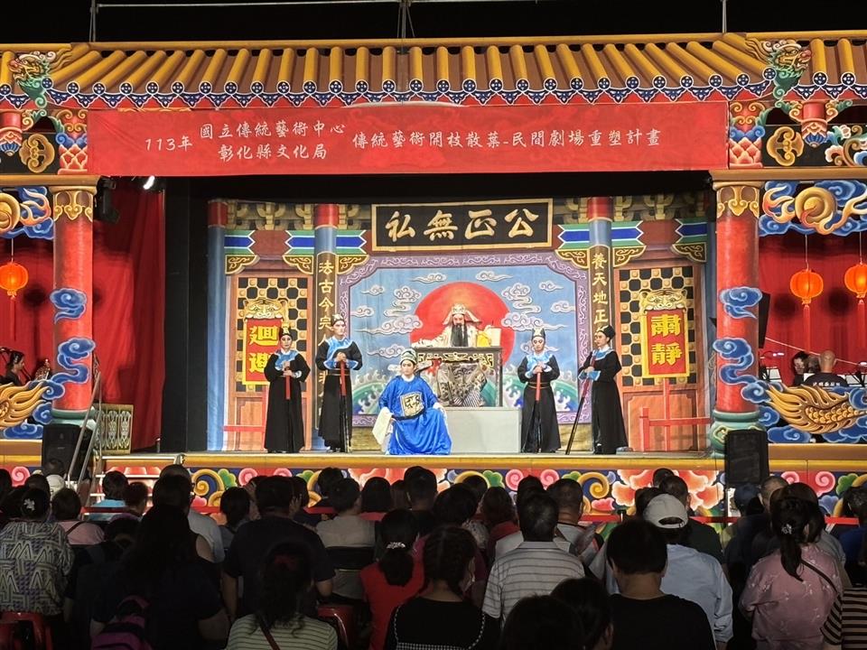 由彰化縣政府與國立傳統藝術中心共同辦理的「傳統藝術開枝散葉-民間劇場重塑計畫」,今(6)日晚間來到全年度演出的尾聲,壓軸演出由「鴻明歌劇團」擔綱,以歌仔戲經典《三進士》為全年度的民間劇場活動呈現完美的句點,以獨特的表現方式讓傳統藝術在現代舞台上煥發新生,展現歌仔戲的深厚文化底蘊與藝術魅力,彰化縣文化局長張雀芬代表縣長王惠美蒞臨觀賞,與民眾再次感受新時代傳統戲曲的風華。 鴻明歌劇團成立於1963年,前身為「新義樂歌劇團」,以擅長改編傳統劇目的「古冊戲」而聞名。自2001年起,在歌仔戲專家劉南芳老師的指導下,劇團逐漸嶄露頭角。2002年,鴻明歌劇團在臺北市地方戲劇觀摩匯演中榮獲第三名;2004年再度奪得優良團體獎;2005年,更被選為國立傳藝中心「外台歌仔戲匯演」的表演團隊。近年來,劇團於2017、2019、2022及2023年的台北市匯演中屢獲優秀團隊獎的殊榮,實力備受肯定。 此次演出的《三進士》是歌仔戲的經典劇目,講述了一門三代同登進士的動人故事。劇中公堂上一門三魁的場景尤為精彩,充分展現了該劇團演員的精湛演技和深厚的藝術功底。鴻明歌劇團通過這齣戲展現傳統歌仔戲的魅力,同時也融入了現代元素,為觀眾帶來耳目一新的體驗。 民間劇場重塑計畫不僅展現了傳統藝術的獨特魅力,更讓人們看到了歌仔戲在現代舞台上的無限可能。這個計畫不僅為優秀的傳統藝術團體提供了更多演出機會,也讓鄉親朋友有機會欣賞到高水準的傳統戲曲表演,促進了文化交流和傳承。國立傳統藝術中心與彰化縣政府致力於推廣傳統藝術與文化扎根,希望透過多元形式的演出活動,讓更多民眾觀賞接觸,進而喜愛傳統戲曲,讓傳統文化能持續蓬勃茁壯。 與會貴賓有縣議員吳錦潭、埤頭鄉鄉長杜懿彩、合興宮主委楊龍河、縣政顧問林明暐、縣政顧問許豐麟、彰化縣文化局長張雀芬、縣府秘書鄭朝元、鴻明歌劇團團長顏子軒、濟安宮主委李鴻嘉、合興村長杜崇維等地方仕紳。