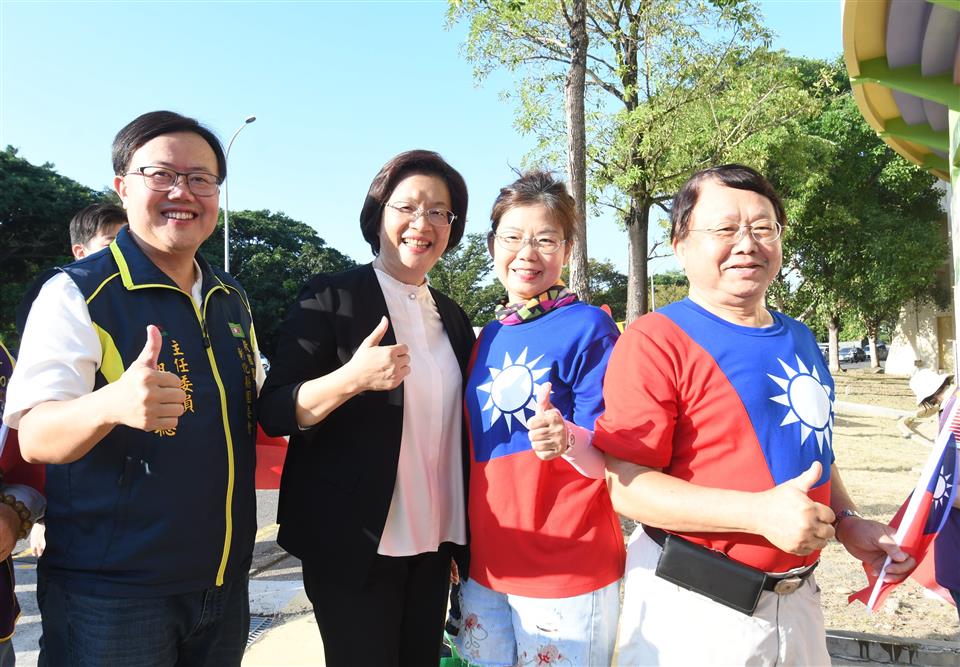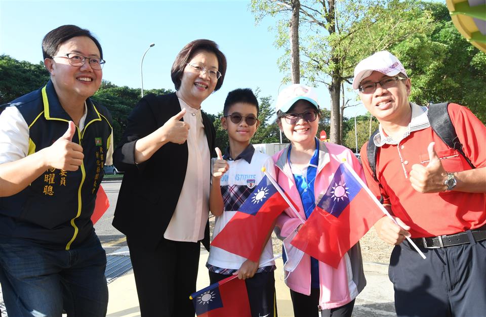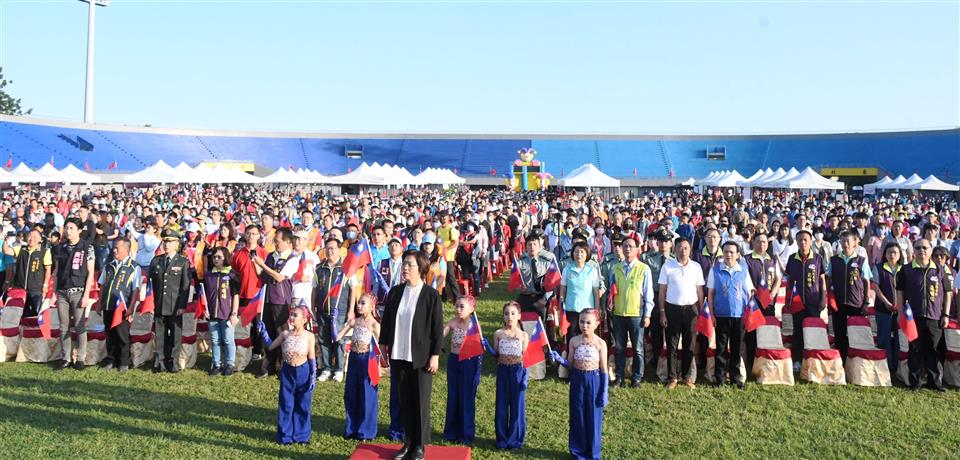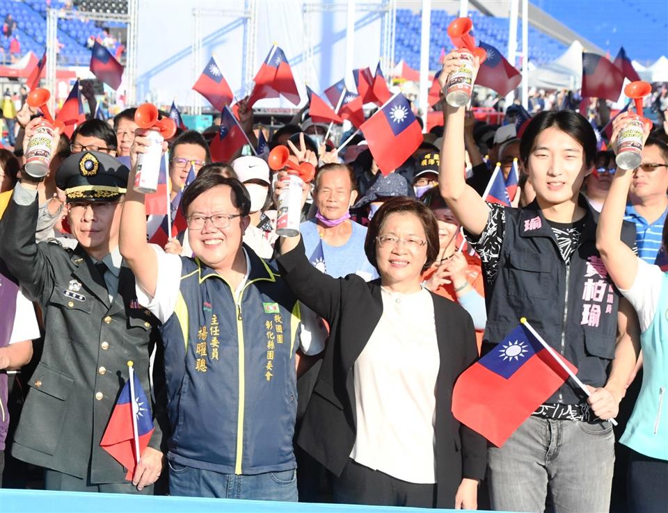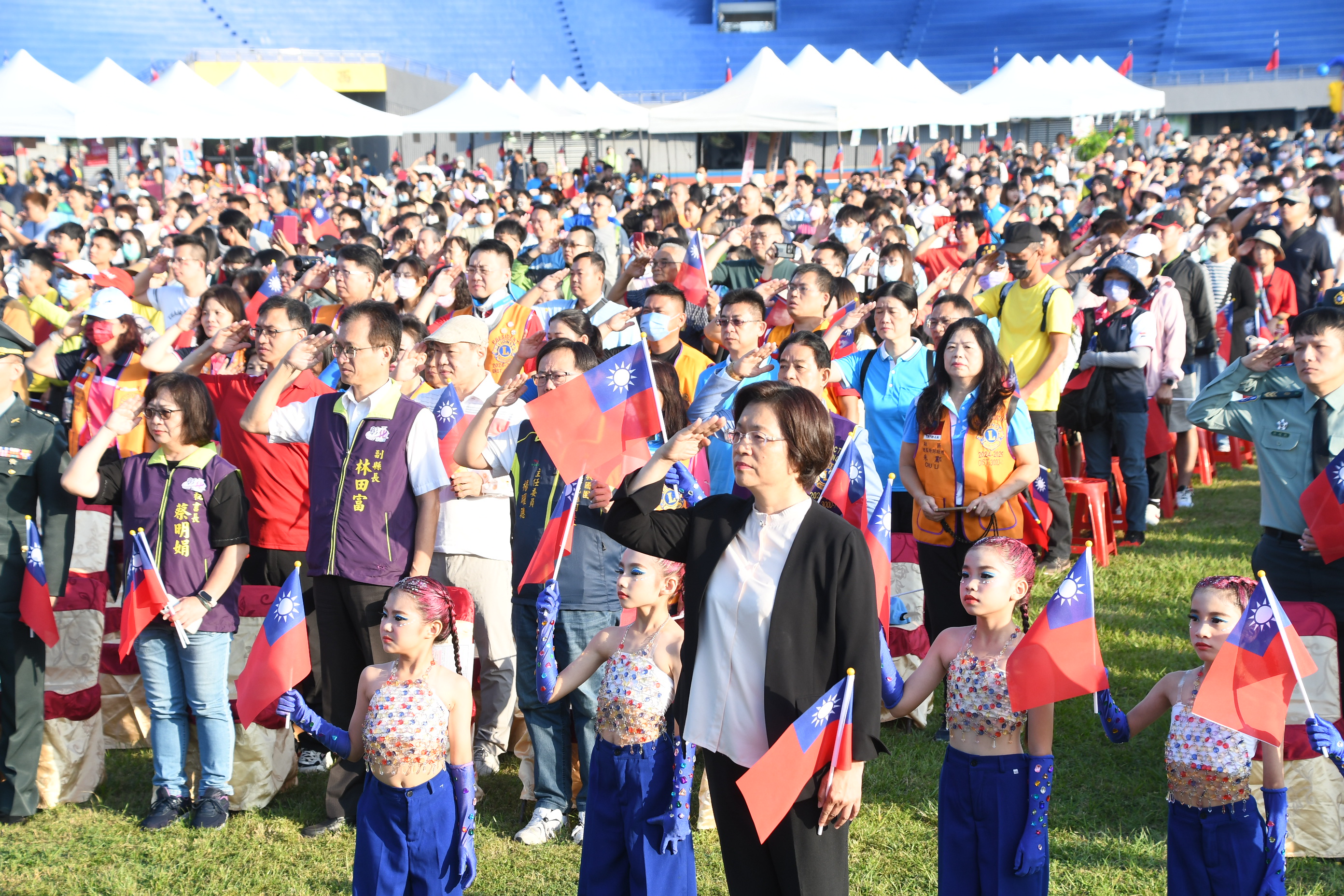 為慶祝中華民國113歲生日,彰化縣政府於10月10日上午7點在彰化縣立體育場盛大舉辦「喜迎國慶・讓愛集十」健行活動暨公益園遊會。縣長王惠美特別感謝民眾熱情參與,9月底公布活動訊息,不到2天報名人數就突破2千人,今天一早近四千人,一起來參加升旗典禮,為國慶日增添活力,也一起為彰化的未來加油打氣!王縣長表示,在國家生日的這一天,非常開心跟鄉親一起來參加中華民國113年國慶升旗典禮,一起大聲唱國歌,祝福中華民國生日快樂! 王縣長表示,青天白日滿地紅是全世界最美的國旗,中華民國更是象徵自由民主的燈塔,期盼藉由這場典禮來感念開國先人們拋頭顱灑熱血為民主來奮鬥,也凝聚國人團結意志跟愛國之心,共同在這塊土地繼續來努力奮鬥。 王縣長指出,中華民國在台灣所締造的經濟奇蹟,憑借著以小博大的勇氣,胼手胝足、一點一滴建立起台灣的驕傲,彰化更是造就了台灣中小企業原鄉的美名,更有正新、建大、美麗達、帝寶、寶成等世界級的大廠,撐起了全球關鍵供應鏈,彰化子弟近年在國際舞台屢創佳績,舉起國旗的場面格外的令人感動,像是平和國小曲棍球隊締造世界冠軍五連霸、田尾國小巧固球隊勇奪世界冠軍,還有大村國小合唱團、彰化縣青少年管弦樂團,站上國際舞台獻唱,讓世界聽見台灣,光耀我們引以為傲的中華民國。 王縣長指出,今年彰化國慶活動非常精彩,報名相當踴躍,有「公益市集」、「親子體驗區」、「闖關卡集點」以及「健行活動」等等,全程參與不僅可以兌換限量國慶紀念帆布袋及國旗毛巾,還有機會抽中電視機、腳踏車等將近70個獎項,預祝大家有好手氣、贏大獎! 王縣長表示,隨著AI科技與永續發展,縣府以「永續發展」為施政目標,導入「智慧科技」應用,全力發展智慧農業、空汙智慧監測、科技救災、智慧化校園、產業智慧化轉型等等,為下一代打造低碳、永續的城市基礎;同時,為了照顧0-100歲縣民朋友,積極推動各項社福政策,包括社區關懷據點、長照據點、長照大樓、日照中心、育兒親子館、公托中心、公共化幼兒園等陸續啟用。未來,縣府持續推動五大施政願景:軌道建設、綠色產業經濟、彰化都市再生、全齡全能社會福利、永續循環經濟,引領彰化邁向永續城市。 社會處表示,活動內容豐富多元,由在地舞團夢想家舞蹈製所帶來的表演揭開序幕,接著由平和國小合唱團進行國歌演唱,正式展開升旗典禮、健行活動、公益市集、政令闖關宣導等一連串活動,以及輪番上陣的精彩節目表演和摸彩貫穿全場。 為彰顯縣內公益團體蓬勃發展及人才濟濟,攤位市集以及節目表演均邀請在地單位、學子及舞蹈團體,包括彰中、彰女、彰商、彰工熱舞社、崇實熱音社、彰商韓舞社,以及彰化縣美淑國際蘭馨交流協會帶來的蘭馨曳步舞。王縣長提到,感謝他們利用休息時間、辛苦排練,為大家帶來精彩的節目。另外,今年特別為家長及小朋友設計親子區,包含氣墊床、手繪風箏、泡泡體驗及手拋飛機等互動遊戲,現場熱鬧非凡,大皮球SHOW TIME也深受小朋友喜愛。 為鼓勵民眾參與,本次園遊會推出「闖關卡集點」活動。只要至現場任十個攤位購買商品或闖關互動,集滿十點即可兌換限量彰化限定國慶紀念帆布袋1只。參加健行活動並走完全程,不僅能獲得限量紀念國旗毛巾1條,還可換取摸彩券1張,民眾反應熱烈,紛紛試手氣,現場送出電視機、腳踏車等超過70個獎項。健行途中還有茶葉蛋為大家補充體力。除了以上人氣超高的國慶紀念帆布袋及國旗毛巾,一樣是今年特別訂製的紋身貼紙亦很快索取一空。 與會貴賓還有副縣長林田富、立委黃秀芳、縣議員葉永清、黃柏瑜、彰化市長林世賢、二林鎮長蔡詩傑、救國團彰化縣團委會主委楊曜聰、副主委施鳳銘、工策會總幹事洪榮章、彰化縣工業會理事長盧玉娟、彰化縣商業會秘書長梁中原、彰化縣後備指揮部指揮官梅上校、建國科大副校長林文雄、彰化高中校長王延煌、國際獅子會300D1區總監施進興、彰美獅子會長郭彥賦、彰化縣婦女會理事長陳穎青、台明將股份有限公司副總經理林肇騫、農業合作社聯合社理事主席黃水炎、彰化縣自發木耳生產合作社理事主席陳銘龍、縣政顧問施正雄、縣府秘書長蔡明娟、參議施敏華、社會處長王蘭心、新聞處長李俊德、水利資源處長陳詔慶、勞工處長何俊昇、財政處長劉坤松、交通處長林漢斌、工務處代理處長林孟弘、城市暨觀光發展處長王瑩琦、地政處長蔡和昌、彰化縣消防局長施順仁、彰化縣警察局長陳明君、彰化縣文化局長張雀芬、彰化縣地方稅務局長陳燕慧、青發處代理處長郭秋君、社會處副處長涂敏群、教育處副處長張淑珠、經濟暨綠能發展副處長郭至善、各界貴賓、各級民代與地方仕紳等。