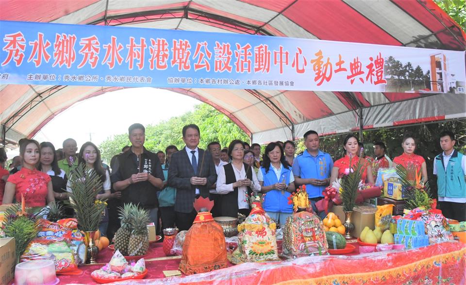 為提供秀水鄉及秀水村民眾鄉親合宜的集會、教育團康活動場所,建立一個提供村民日常使用、高齡者健康照顧及活力學習之多功能活動中心,秀水鄉公所於今(10/11)日上午在秀水村開南巷鄰近秀水岩清水祖師爺廟,舉行港墘公設活動中心動土典禮,將新建地上2層樓建築,一樓做為一般社區及村民公共使用,二樓未來將設置關懷據點等用途,彰化縣長王惠美、秀水鄉長林英嘉、各級民代等人與會,共同見證這重要時刻。王縣長表示,如何讓長輩在地安養、在地得到最好的照顧,是彰化縣政府長期以來從關懷據點到日照中心、長照中心等,不斷地用心努力,秀水鄉有14個村,超出每個村都有一個,已設有18個社區關懷據點,感謝鄉長非常支持關心老人的關懷據點,這次,再設立活動中心,是繼第一座義興村公設活動中心於去年動土興建後,第二座是這次的港墘公設活動中心,從原本的公墓用地,雜亂不堪,再整理、變更土地後,未來期待給更多長者使用,也期待還有第三座活動中心設立。 秀水鄉長林英嘉表示,這塊土地位於秀水村秀水段1342-1地號,總面積1,754平方公尺,承蒙王惠美縣長的幫忙,土地為縣有土地,後經興辦事業計畫變更為特定目的事業用地,規劃興建港墘社區活動中心。該筆土地原為殯葬用地,2年前環境較為雜亂,且是港墘居民重要出入道路,公所取決後,編列200多萬元經費進行環境的整理後,再規劃作為港墘活動中心,總工程經費2,734萬元,縣府補助800萬元,地方自籌1,934萬元,感謝縣府及代表會的支持,讓工程得以在今天舉行動土儀式,一樓將作為居民活動及環境教育、投開票所等活動場地,二樓則作為社區銀髮族的活動空間,提供包括社區關懷據點、樂齡學習課程來使用,建物外圍也進行綠美化,讓居民來到這邊可以進行團康活動場所。 王縣長表示,秀水村港墘公設活動中心總經費2千多萬元,縣府補助800萬元,工程完工後,讓長輩得到更好的照顧,彰化縣內共有349處關懷據點,未來也將多一個關懷據點,讓社區民眾能夠有更好的環境。謝謝鄉公所的支持,也謝謝議長謝典林及所有議員們對於預算的支持,齊心努力,讓長輩能有更健康、更好的環境。 與會貴賓還有縣議員凃淑媚、郭燕陵、楊竣程、楊妙月、秀水鄉民代表會副主席鄭倫杰、立委陳秀寳服務團隊、議員黃俊源服務團隊、議員藍駿宇服務團隊、秘書王錦銓、縣府社會處副處長涂敏群、建築師游皓傑、各級民意代表及地方仕紳等。