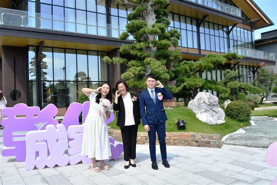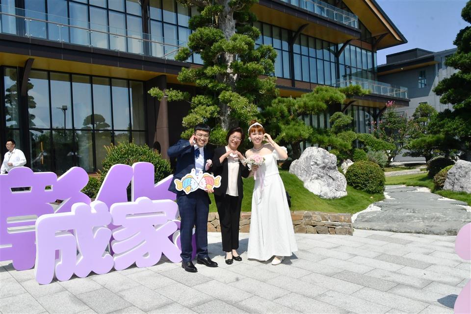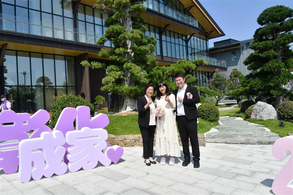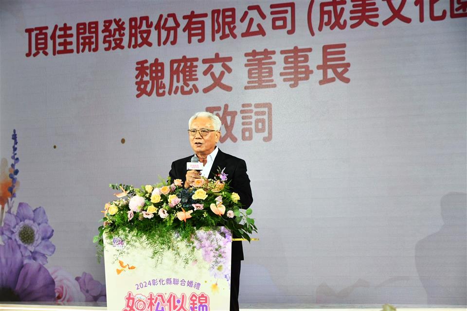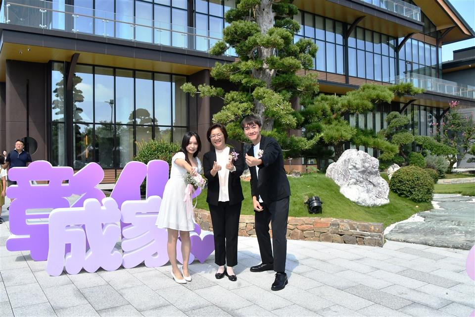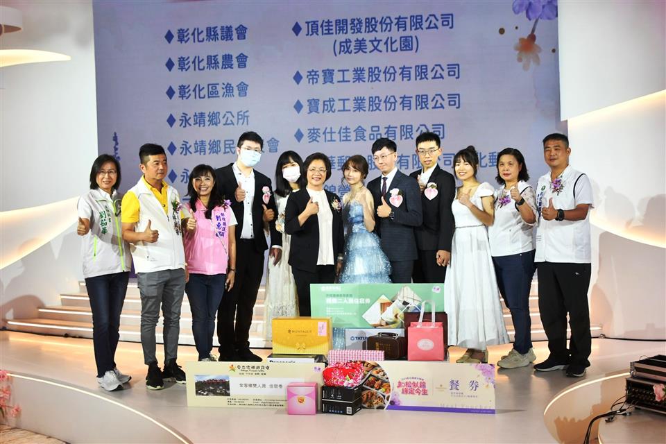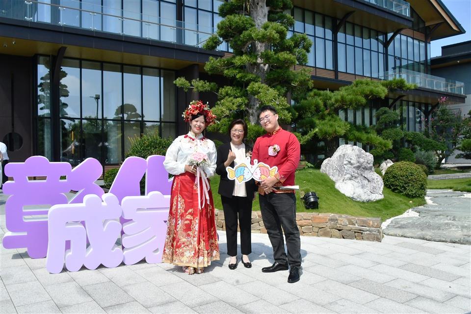 「2024彰化縣聯合婚禮活動」,以「如松似錦,緣定今生」為主題,於今(13)日在成美文化園「松緣會館」舉辦,由彰化縣長王惠美親自為30對新人證婚,並在多位貴賓及親友的見證下,祝福新人的愛情開花結果,甜甜蜜蜜、永浴愛河。王縣長表示,今天是「2024彰化縣聯合婚禮」的大喜日子,很高興能為30對新人在成美「松緣會館」見證共結連理,象徵「如松似錦,緣定今生」,祝福所有新人永結同心、百年好合、早生貴子、共同踏上人生新階段。 王縣長表示,在會場摸彩抽出3台市價萬元掃地機器人;同時這次縣府特別贈送每對新人電子鍋,感謝彰化縣議會、彰化縣農會等15個單位、企業共同贊助新人成家好禮,特別感謝「成美文化園」提供這麼好的場地,且招待新人及其親友當日入園券;希望新人們能帶著大家滿滿的祝福,開心歡喜成家,一定要幸福! 王縣長表示,面對少子化的問題,希望青年朋友有對象快點看日子,沒對象快點找對象,身邊有個人好彼此照應,營造一個屬於自己的家,一起孝順父母、生兒育女,讓家庭更加圓滿。 王縣長指出,為了支持青年安心成家,彰化縣提供每胎3萬元的生育補助及婚後孕前健康檢查補助,幫助準爸媽規劃健康家庭。另外,縣內已設立7處公設民營托嬰中心,提供全國最平價的每月7千元的托育費且縣府全額補助,家長無需負擔任何托育費用,還有9處育兒親子館,提供縣內0至6歲育兒家庭各項親子活動、托育服務諮詢、親職教育訓練及兒童圖書教玩具借用等服務;未來彰化縣將布建28處公設民營托嬰中心及18處育兒親子館,讓彰化年輕朋友安心生、放心養,也希望今日的新人能早生貴子。 立委謝衣鳯表示,非常高興能參與縣府舉辦的「2024彰化縣聯合婚禮」,成美文化園區提供了非常優質的婚宴場地,雖在彰化,也不輸給其他都會區高級酒店舉辦的婚禮,在彰化結婚,在彰化生活,一起讓彰化更好更進步。 成美文化園區董事長魏應交表示,恭喜30對新人,完成終身大事,很開心看到我們下一代的彰化人能夠結為連理,定居彰化,讓彰化更加繁榮。當初建立成美文化園區時,訂下五大使命:香火延續、文化傳承、造福鄉里、行銷永靖、彰化縣成為幸福台灣的標竿,這是我對自己的一個目標,也是一個使命,希望這個使命能夠由我們下一代,代代接棒來完成。幸福其實很簡單,就是從平淡的生活中體會點點滴滴的感動。他與妻子共同養育五個孩子,夫妻感情非常好,在婚姻中,特別要記住,睜一隻眼看對方的優點,閉一隻眼包容對方的缺點,孝敬公婆,家庭才能和睦,信任與愛也能持久。 縣府民政處表示,今年度彰化縣聯合婚禮在宣傳期即吸引多對新人洽詢,歷年新人參加報名情形熱絡,今年度特別增加至30對,並改以抽籤方式定之。其中參加新人許碩珉及李昱昕兩人原本都不是在地的彰化人,但彰化是見證他們相識、相戀到相愛的城市,進而移居到彰化秀傳醫院工作,並在彰化買下人生中的第1個家。這些新人都在彰化留下難忘的美好回憶,展現出彰化宜居城市的魅力,也恭喜今天參加聯合婚禮的所有新人們。 本次活動除彰化縣政府提供每對參加新人電子鍋,另有彰化縣議會、彰化縣農會、彰化區漁會、永靖鄉公所、永靖鄉民代表會、溪湖鎮農會、二林鎮農會、永靖鄉農會、帝寶工業股份有限公司、寶成工業股份有限公司、麥仕佳食品有限公司、中華郵政股份有限公司彰化郵局、義錦營造有限公司暨清境愛立家民宿及成美文化園等14家優良企業或單位提供新人成家禮品,讓新人帶回滿滿的祝福。同時成美文化園提供活動場地及遊園車體驗,象徵滿載眾人的祝福步入人生的另一個階段,活動最後由王縣長摸彩抽出知名品牌掃拖機器人給3對新人,祝福新人們幸福成家。 與會貴賓還有立委謝衣鳯、縣議員曹嘉豪、劉惠娟、永靖鄉公所主秘劉茹華、永靖鄉民代表會主席林致安、副主席黃玉雪、成美文化園區董事長魏應交、彰化縣農會總幹事張建豐、永靖鄉農會總幹事陳翠玲、二林農會主任林美鳳、民政處代理處長曾金來參議、副處長陳俊南與各級民代及地方仕紳等。