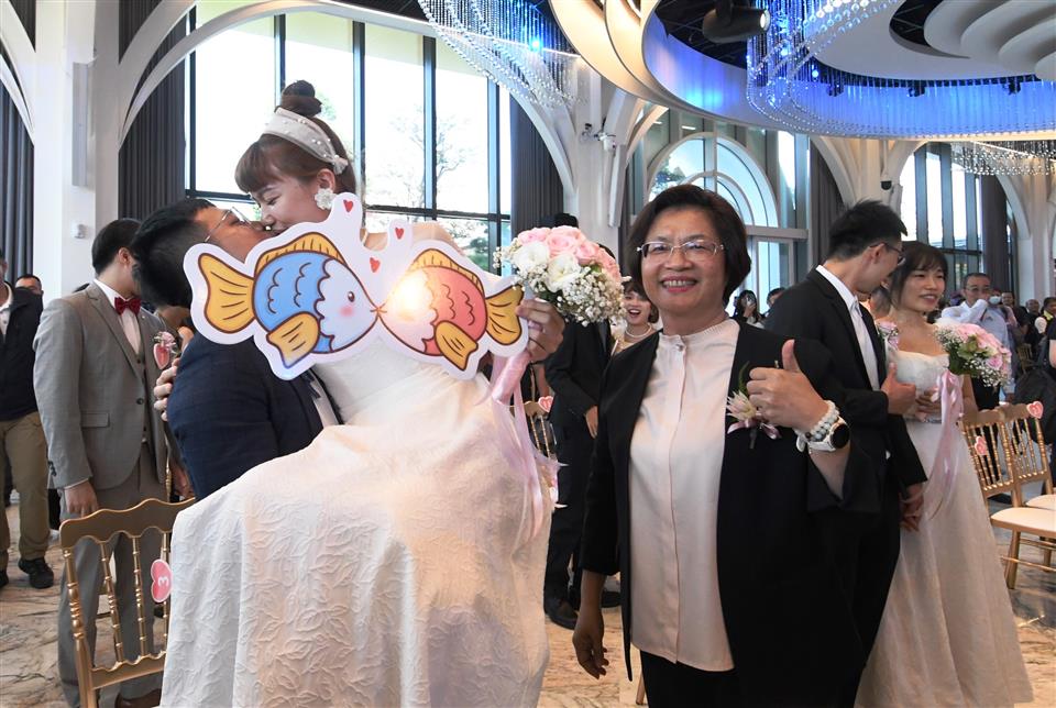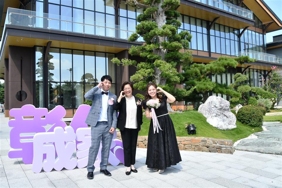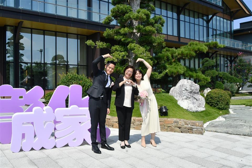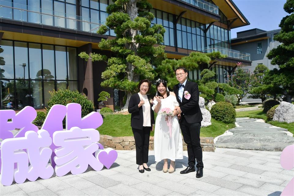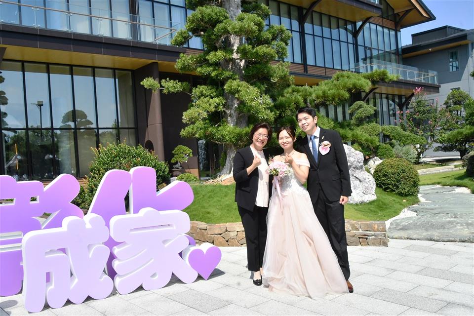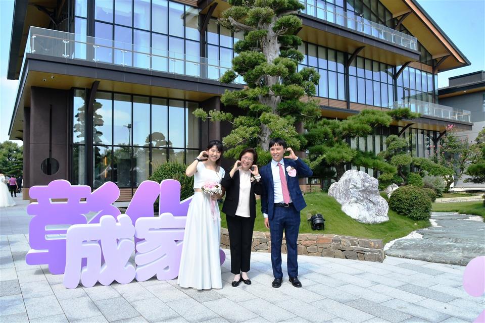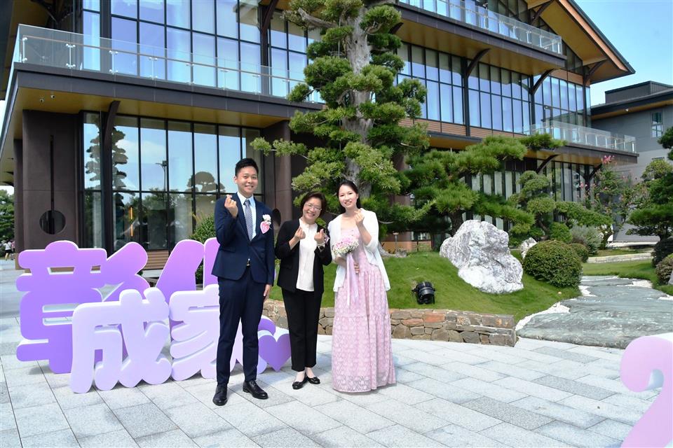 「2024彰化縣聯合婚禮活動」,以「如松似錦,緣定今生」為主題,於今(13)日在成美文化園「松緣會館」舉辦,由彰化縣長王惠美親自為30對新人證婚,並在多位貴賓及親友的見證下,祝福新人的愛情開花結果,甜甜蜜蜜、永浴愛河。王縣長表示,今天是「2024彰化縣聯合婚禮」的大喜日子,很高興能為30對新人在成美「松緣會館」見證共結連理,象徵「如松似錦,緣定今生」,祝福所有新人永結同心、百年好合、早生貴子、共同踏上人生新階段。 王縣長表示,在會場摸彩抽出3台市價萬元掃地機器人;同時這次縣府特別贈送每對新人電子鍋,感謝彰化縣議會、彰化縣農會等15個單位、企業共同贊助新人成家好禮,特別感謝「成美文化園」提供這麼好的場地,且招待新人及其親友當日入園券;希望新人們能帶著大家滿滿的祝福,開心歡喜成家,一定要幸福! 王縣長表示,面對少子化的問題,希望青年朋友有對象快點看日子,沒對象快點找對象,身邊有個人好彼此照應,營造一個屬於自己的家,一起孝順父母、生兒育女,讓家庭更加圓滿。 王縣長指出,為了支持青年安心成家,彰化縣提供每胎3萬元的生育補助及婚後孕前健康檢查補助,幫助準爸媽規劃健康家庭。另外,縣內已設立7處公設民營托嬰中心,提供全國最平價的每月7千元的托育費且縣府全額補助,家長無需負擔任何托育費用,還有9處育兒親子館,提供縣內0至6歲育兒家庭各項親子活動、托育服務諮詢、親職教育訓練及兒童圖書教玩具借用等服務;未來彰化縣將布建28處公設民營托嬰中心及18處育兒親子館,讓彰化年輕朋友安心生、放心養,也希望今日的新人能早生貴子。 立委謝衣鳯表示,非常高興能參與縣府舉辦的「2024彰化縣聯合婚禮」,成美文化園區提供了非常優質的婚宴場地,雖在彰化,也不輸給其他都會區高級酒店舉辦的婚禮,在彰化結婚,在彰化生活,一起讓彰化更好更進步。 成美文化園區董事長魏應交表示,恭喜30對新人,完成終身大事,很開心看到我們下一代的彰化人能夠結為連理,定居彰化,讓彰化更加繁榮。當初建立成美文化園區時,訂下五大使命:香火延續、文化傳承、造福鄉里、行銷永靖、彰化縣成為幸福台灣的標竿,這是我對自己的一個目標,也是一個使命,希望這個使命能夠由我們下一代,代代接棒來完成。幸福其實很簡單,就是從平淡的生活中體會點點滴滴的感動。他與妻子共同養育五個孩子,夫妻感情非常好,在婚姻中,特別要記住,睜一隻眼看對方的優點,閉一隻眼包容對方的缺點,孝敬公婆,家庭才能和睦,信任與愛也能持久。 縣府民政處表示,今年度彰化縣聯合婚禮在宣傳期即吸引多對新人洽詢,歷年新人參加報名情形熱絡,今年度特別增加至30對,並改以抽籤方式定之。其中參加新人許碩珉及李昱昕兩人原本都不是在地的彰化人,但彰化是見證他們相識、相戀到相愛的城市,進而移居到彰化秀傳醫院工作,並在彰化買下人生中的第1個家。這些新人都在彰化留下難忘的美好回憶,展現出彰化宜居城市的魅力,也恭喜今天參加聯合婚禮的所有新人們。 本次活動除彰化縣政府提供每對參加新人電子鍋,另有彰化縣議會、彰化縣農會、彰化區漁會、永靖鄉公所、永靖鄉民代表會、溪湖鎮農會、二林鎮農會、永靖鄉農會、帝寶工業股份有限公司、寶成工業股份有限公司、麥仕佳食品有限公司、中華郵政股份有限公司彰化郵局、義錦營造有限公司暨清境愛立家民宿及成美文化園等14家優良企業或單位提供新人成家禮品,讓新人帶回滿滿的祝福。同時成美文化園提供活動場地及遊園車體驗,象徵滿載眾人的祝福步入人生的另一個階段,活動最後由王縣長摸彩抽出知名品牌掃拖機器人給3對新人,祝福新人們幸福成家。 與會貴賓還有立委謝衣鳯、縣議員曹嘉豪、劉惠娟、永靖鄉公所主秘劉茹華、永靖鄉民代表會主席林致安、副主席黃玉雪、成美文化園區董事長魏應交、彰化縣農會總幹事張建豐、永靖鄉農會總幹事陳翠玲、二林農會主任林美鳳、民政處代理處長曾金來參議、副處長陳俊南與各級民代及地方仕紳等。