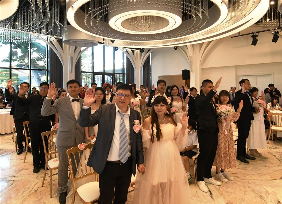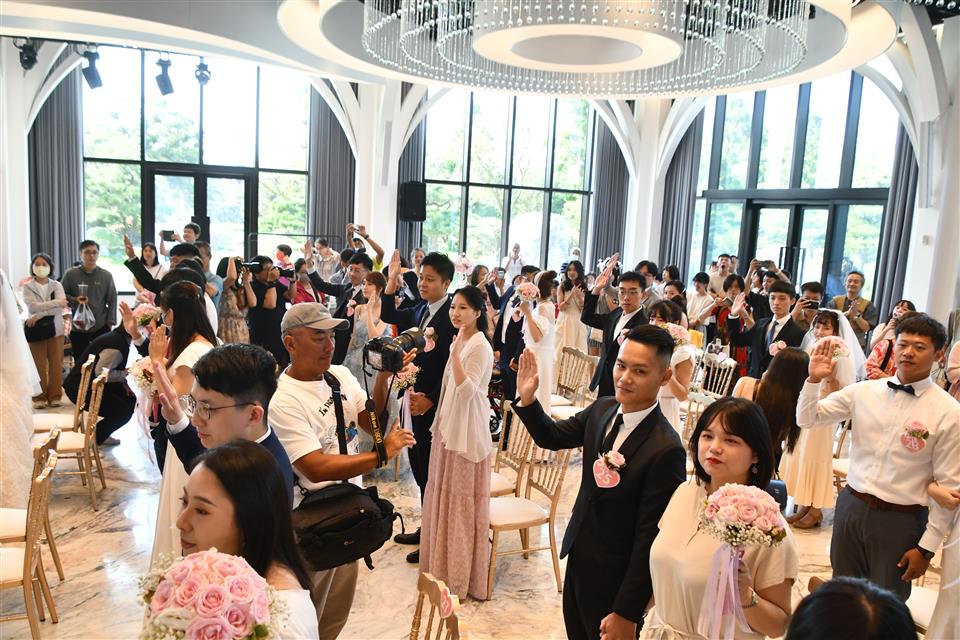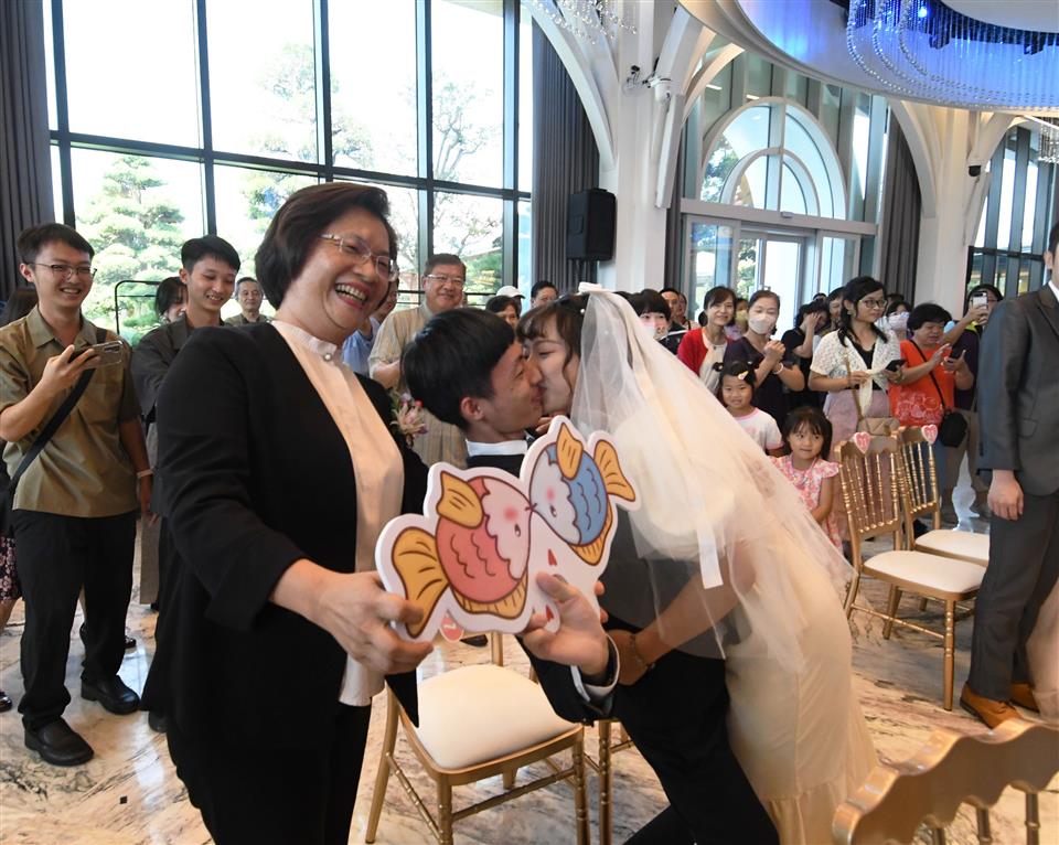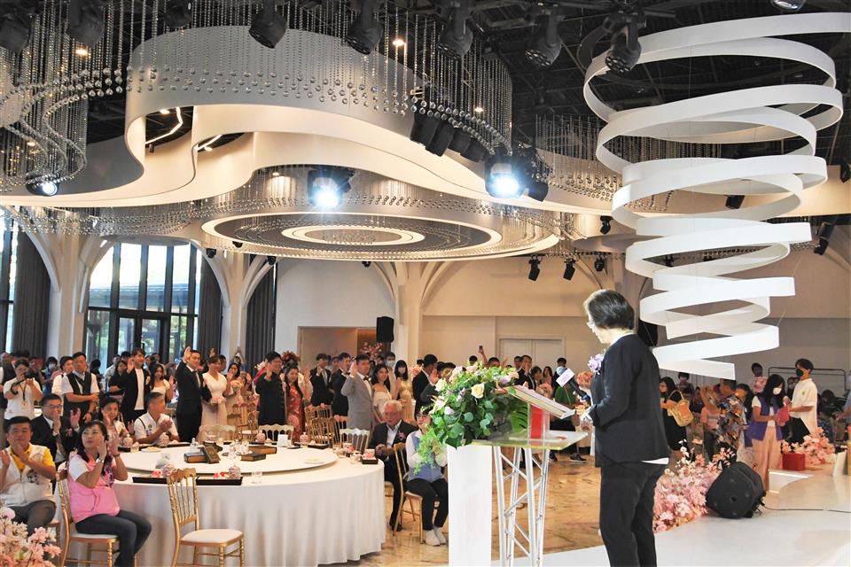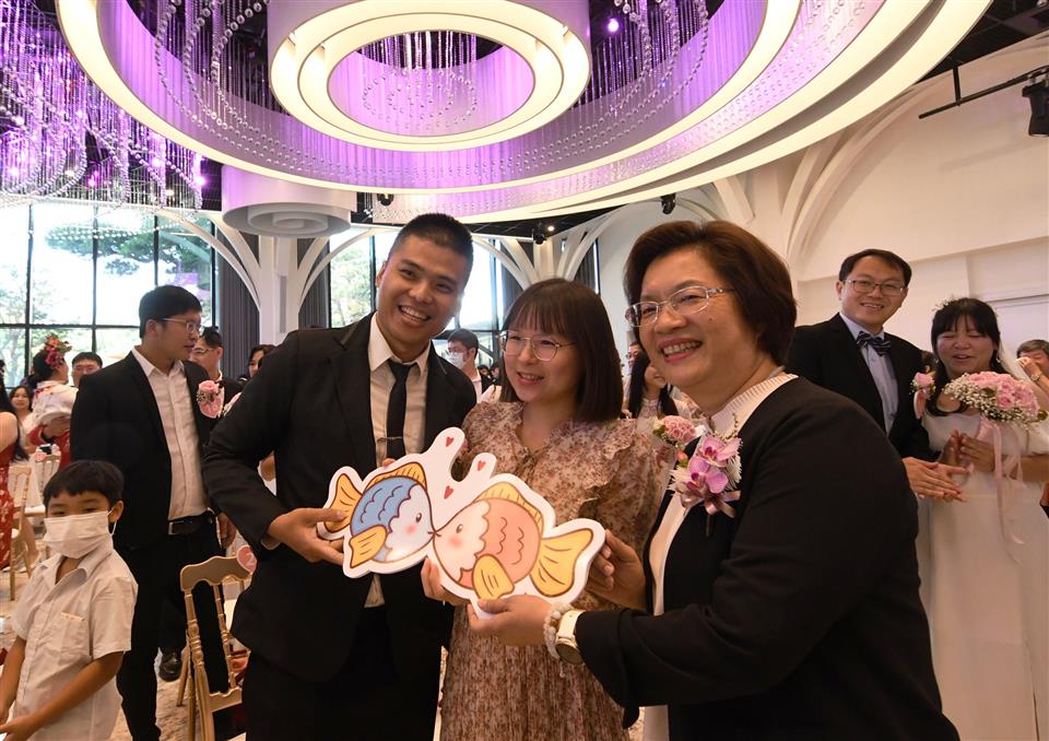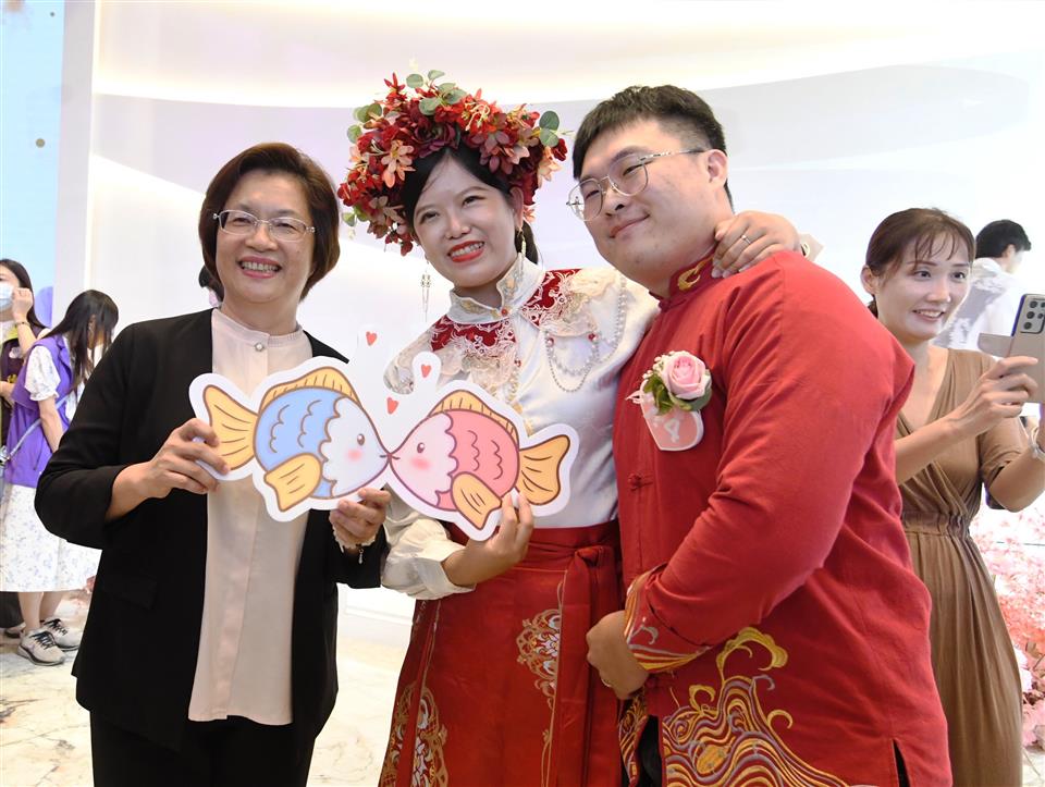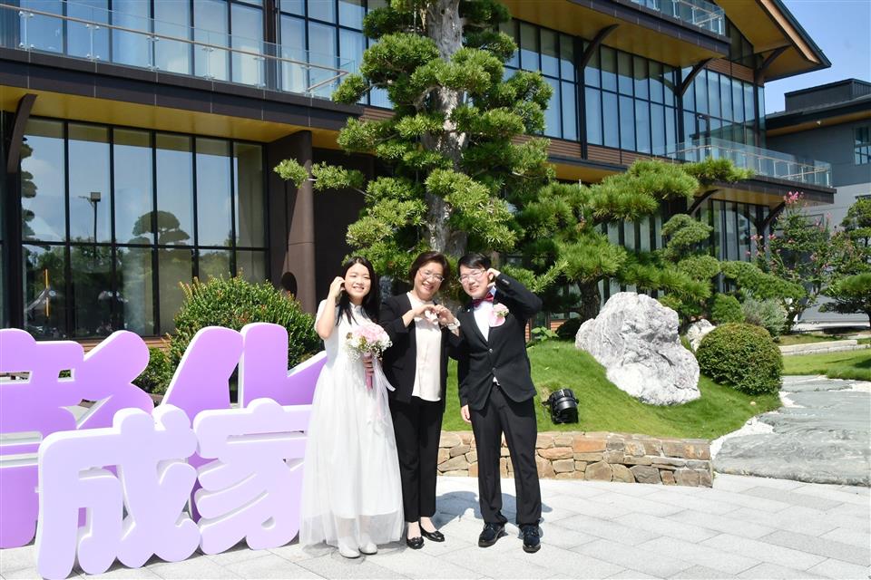 「2024彰化縣聯合婚禮活動」,以「如松似錦,緣定今生」為主題,於今(13)日在成美文化園「松緣會館」舉辦,由彰化縣長王惠美親自為30對新人證婚,並在多位貴賓及親友的見證下,祝福新人的愛情開花結果,甜甜蜜蜜、永浴愛河。王縣長表示,今天是「2024彰化縣聯合婚禮」的大喜日子,很高興能為30對新人在成美「松緣會館」見證共結連理,象徵「如松似錦,緣定今生」,祝福所有新人永結同心、百年好合、早生貴子、共同踏上人生新階段。 王縣長表示,在會場摸彩抽出3台市價萬元掃地機器人;同時這次縣府特別贈送每對新人電子鍋,感謝彰化縣議會、彰化縣農會等15個單位、企業共同贊助新人成家好禮,特別感謝「成美文化園」提供這麼好的場地,且招待新人及其親友當日入園券;希望新人們能帶著大家滿滿的祝福,開心歡喜成家,一定要幸福! 王縣長表示,面對少子化的問題,希望青年朋友有對象快點看日子,沒對象快點找對象,身邊有個人好彼此照應,營造一個屬於自己的家,一起孝順父母、生兒育女,讓家庭更加圓滿。 王縣長指出,為了支持青年安心成家,彰化縣提供每胎3萬元的生育補助及婚後孕前健康檢查補助,幫助準爸媽規劃健康家庭。另外,縣內已設立7處公設民營托嬰中心,提供全國最平價的每月7千元的托育費且縣府全額補助,家長無需負擔任何托育費用,還有9處育兒親子館,提供縣內0至6歲育兒家庭各項親子活動、托育服務諮詢、親職教育訓練及兒童圖書教玩具借用等服務;未來彰化縣將布建28處公設民營托嬰中心及18處育兒親子館,讓彰化年輕朋友安心生、放心養,也希望今日的新人能早生貴子。 立委謝衣鳯表示,非常高興能參與縣府舉辦的「2024彰化縣聯合婚禮」,成美文化園區提供了非常優質的婚宴場地,雖在彰化,也不輸給其他都會區高級酒店舉辦的婚禮,在彰化結婚,在彰化生活,一起讓彰化更好更進步。 成美文化園區董事長魏應交表示,恭喜30對新人,完成終身大事,很開心看到我們下一代的彰化人能夠結為連理,定居彰化,讓彰化更加繁榮。當初建立成美文化園區時,訂下五大使命:香火延續、文化傳承、造福鄉里、行銷永靖、彰化縣成為幸福台灣的標竿,這是我對自己的一個目標,也是一個使命,希望這個使命能夠由我們下一代,代代接棒來完成。幸福其實很簡單,就是從平淡的生活中體會點點滴滴的感動。他與妻子共同養育五個孩子,夫妻感情非常好,在婚姻中,特別要記住,睜一隻眼看對方的優點,閉一隻眼包容對方的缺點,孝敬公婆,家庭才能和睦,信任與愛也能持久。 縣府民政處表示,今年度彰化縣聯合婚禮在宣傳期即吸引多對新人洽詢,歷年新人參加報名情形熱絡,今年度特別增加至30對,並改以抽籤方式定之。其中參加新人許碩珉及李昱昕兩人原本都不是在地的彰化人,但彰化是見證他們相識、相戀到相愛的城市,進而移居到彰化秀傳醫院工作,並在彰化買下人生中的第1個家。這些新人都在彰化留下難忘的美好回憶,展現出彰化宜居城市的魅力,也恭喜今天參加聯合婚禮的所有新人們。 本次活動除彰化縣政府提供每對參加新人電子鍋,另有彰化縣議會、彰化縣農會、彰化區漁會、永靖鄉公所、永靖鄉民代表會、溪湖鎮農會、二林鎮農會、永靖鄉農會、帝寶工業股份有限公司、寶成工業股份有限公司、麥仕佳食品有限公司、中華郵政股份有限公司彰化郵局、義錦營造有限公司暨清境愛立家民宿及成美文化園等14家優良企業或單位提供新人成家禮品,讓新人帶回滿滿的祝福。同時成美文化園提供活動場地及遊園車體驗,象徵滿載眾人的祝福步入人生的另一個階段,活動最後由王縣長摸彩抽出知名品牌掃拖機器人給3對新人,祝福新人們幸福成家。 與會貴賓還有立委謝衣鳯、縣議員曹嘉豪、劉惠娟、永靖鄉公所主秘劉茹華、永靖鄉民代表會主席林致安、副主席黃玉雪、成美文化園區董事長魏應交、彰化縣農會總幹事張建豐、永靖鄉農會總幹事陳翠玲、二林農會主任林美鳳、民政處代理處長曾金來參議、副處長陳俊南與各級民代及地方仕紳等。