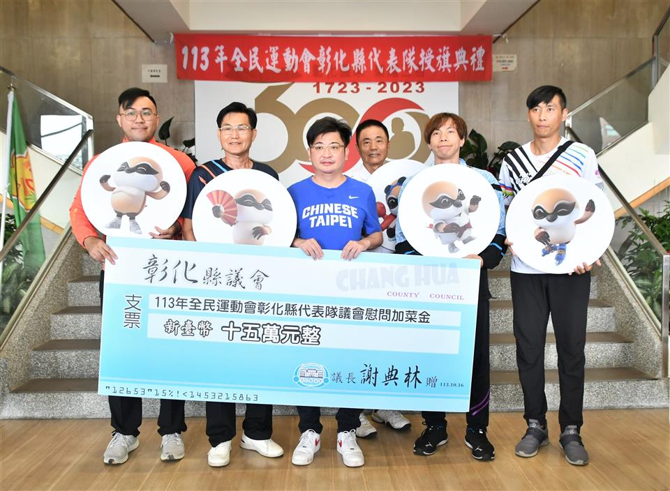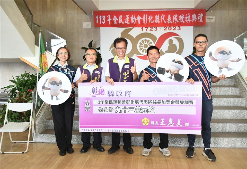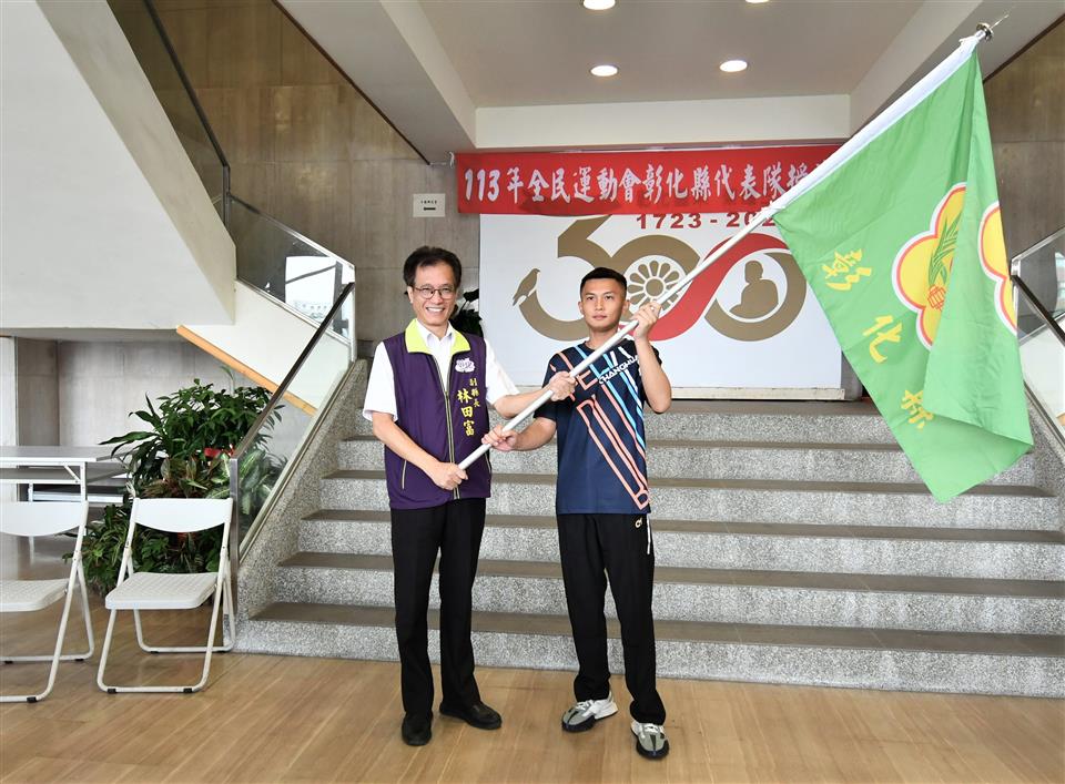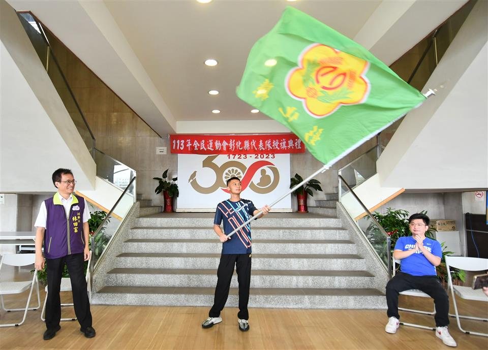 113年全民運動會將於10月26日至31日在屏東縣舉行,彰化縣此次派出近800名選手及隊職員參賽。16日上午,在彰化縣立體育場一樓大廳舉行授旗儀式,彰化縣副縣長林田富代表王惠美縣長出席授旗,由龍獅運動代表隊隊長黃君佑代表接受,林副縣長為選手們加油打氣,並代表縣府致贈加菜金及集訓費,共計92萬元;彰化縣議長謝典林也出席致贈議會加菜金15萬元,共同期勉選手們旗開得勝、勇奪金牌,為彰化縣爭光添彩。 林副縣長表示,兩年一度的全民運動會,這次彰化縣派出800名的代表隊角逐32個項目,特別代表王縣長主持授旗儀式,並頒發加菜金及集訓費用,預祝彰化縣代表隊這一次能有很好的表現,也要特別感謝議長頒發加菜金。另外,縣府這次特別和彰化基督教醫院合作,成立了「全民運動會運動傷害防護團隊」,為選手提供全方位的運動傷害防護服務,讓選手們能夠無後顧之憂,全心投入比賽,力爭佳績。 林副縣長指出,為了讓運動更加興盛,選手有更好的成績,縣府也祭出了高額運動競技獎金,上一屆彰化縣代表隊在「健力、水上救生、蹼泳、柔術、太極拳、元極舞、國術、龍獅運動及健美」等9項競賽中,共獲得17面金牌,另有13面銀牌及16面銅牌,創下近五屆的最佳紀錄。為表彰教練們的辛勤指導,並鼓勵選手們持續努力,縣府特別頒發高達915萬元的獎助金。感謝教練與選手們的努力,特別感謝議長謝典林及所有議員們、彰化縣體育會及各單項委員會長期以來對體育運動的支持,讓彰化的體育實力不斷提升。 林副縣長進一步指出,彰化是運動大縣,在遠見雜誌「2024運動縣市排行榜」,一舉拿下「非六都」評比最多金,更被譽為「運動天才之都」。這幾年,縣府也積極改善運動設施,投入2.1億元整修縣立體育館、體育場及槌球場,並投入11.1億元在和美、鹿港及二林興建全民運動館。未來,將逐步規劃溪湖、田中、北斗等地的運動館,布建全縣8大生活區的全民運動館,提升縣民運動風氣。值得一提的是,明年6月7日,將在縣立體育場舉辦國中小普及化運動大隊接力決賽,更令人期待的是,彰化縣已成功爭取到117年全民運動會的主辦權,期勉各單項代表隊在主場盡展風采,為家鄉爭光。 彰化縣議長謝典林表示,很開心能夠來參加這次的授旗典禮,祝福所有選手能夠旗開得勝,贏得好成績,為彰化縣爭取榮耀。 今年,彰化縣代表隊陣容強大,共參加32項運動競技,包括健力、拔河、輕艇水球、水上救生、蹼泳、飛盤、滑輪溜冰、滾球、原野射箭、柔術、沙灘手球、定向越野、運動舞蹈、民俗體育、太極拳、元極舞、龍舟、摔角、國術、龍獅運動、慢速壘球、木球、槌球、巧固球、躲避球、地面高爾夫、五人制足球、劍道、沙灘角力、健美、藤球及舞蹈運動等。未來,縣府將繼續投入資源,推動三級運動的發展,改善學校運動環境,充實體育設施,並積極培育更多優秀的運動人才,為彰化縣體育發展奠定堅實基礎。 與會貴賓還有彰化縣議會議長謝典林、縣府教育處長蔡金田、彰化縣體育會舞蹈運動委員會主委趙煜豐、彰化市地面高爾夫球委員會主委張義郎、彰化基督教醫院物理治療師周雅惠、各委員會代表等。