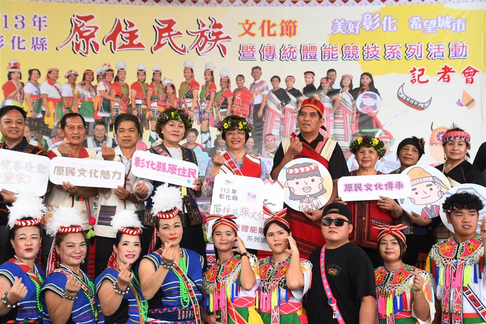 一年一度彰化縣境內最具代表性的原住民文化特色活動—113年彰化縣原住民族文化節暨傳統體能競技系列活動, 17日上午在原住民生活館舉行宣傳記者會,彰化縣長王惠美、縣議員陳榮妹與長老族人朋友與會,一同相聚共舞,在多元豐富的原民文化底蘊下享受原住民族的文化魅力,也一起邀請全國民眾,10月20日將在彰化縣立體育館圓形廣場熱鬧登場,歡迎民眾以及所有族人來參加原住民族文化節。王縣長表示,這次活動有聯合主祭祈福儀式、原音演唱、傳統體能競賽、原住民市集及政令宣導等五大類,今年很難得表演團體的年齡從去年的6、70歲降到2、30歲,年輕人也一起來參與,期望未來齊聚老、中、青三代,將原住民文化繼續向下扎根,發揚光大。 王縣長表示,彰化縣內居住的原住民族共有16族,人數約有6,797位,為了發揚各族文化特色,當日活動有祈福儀式,將由各族長老及代表組成聯合主祭團隊,以「敬天、敬地、敬祖靈」傳統儀式,傳達給年輕一輩族人,除了對於自身文化的維繫、傳承與宣揚以外,更祈求祖靈護佑族人,讓生活更平安,收獲滿滿。另外,今年超過450位族人,組成10個隊伍進行傳統體能競賽與舞蹈競賽,同時也有超過20攤原住民市集,將用原民美食擄獲大家的胃。 王縣長表示,感謝陳榮妹議員長期以來對於縣內原住民朋友,無論是生活、健康、教育、就業等各方面都非常的關心,積極替族人爭取福利,讓族人在各方面都能受到良好的照顧。同時也感謝議長謝典林、副議長許原龍與議員們對於縣府預算的支持,讓縣府順利推動各項縣政。 縣議員陳榮妹表示,傳承文化是所有長老共同的責任,希望豐年祭的活動能越來越年輕化,並傳承下去,一年一度的豐年祭,這個節日是彰化原住民朋友每一年最大的期待,彰化縣很不簡單,原住民族有16族,16族的原住民朋友都有居住在彰化,共約有6千多人,可見彰化有多麼適合居住,讓原住民朋友選擇安居在彰化,近幾年參與豐年祭的人數一年比一年多,這次競技每一隊都有40-50人將近滿員,也代表大家都非常認同這個活動,願意來同樂,也歡迎大家一起來認識原住民族的文化。 與會貴賓還有縣議員陳榮妹、彰化縣原住民關懷協會理事長凱樹.索克羅曼、阿美族長老高春花、吳寶玉、陳進山、泰雅族長老潘福來、林明珠、布農族長老金光華、賽德克族長老吳綉菊、魯凱族長老梁梅英、縣府民政處代理處長曾金來、副處長陳俊南、各級民代與地方仕紳等。