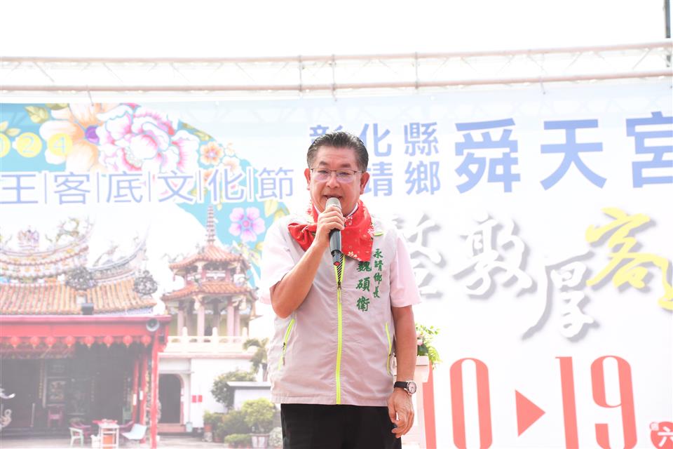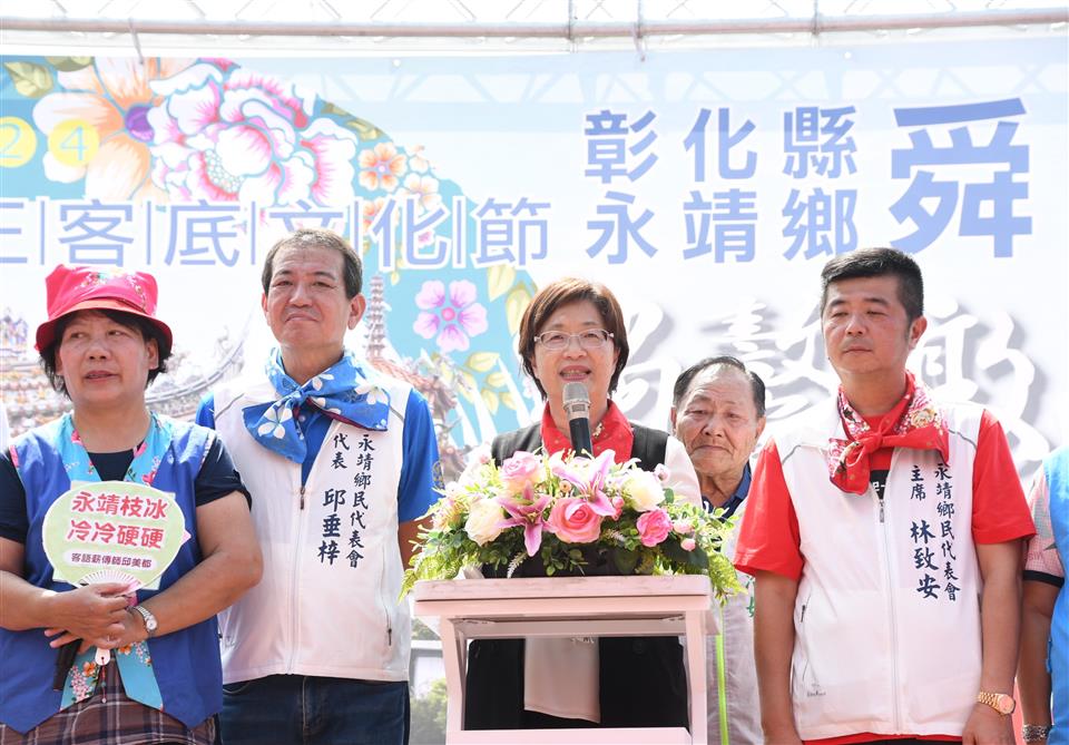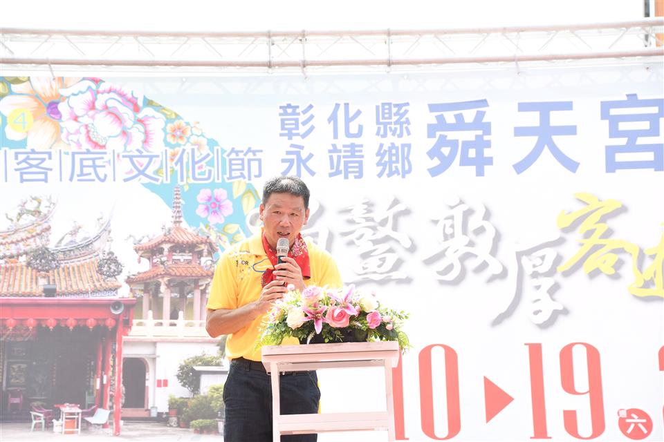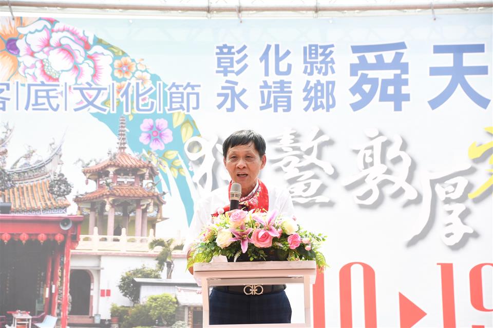 2024年「獨鰲敦厚‧客遊永靖」三山國王客底文化節系列活動在永靖鄉舜天宮熱鬧展開。今(20)日上午縣長王惠美、三山國王客家文化協會理事長胡祥畯、舜天宮主委林瑞敏及永靖鄉長魏碩衛等人共同參加開幕式,下午將有朝聖典禮,期盼透過這場活動彰顯客家族群的心靈寄託,並推廣在地文化,讓更多人深入了解永靖客庄。 王縣長表示,彰化福佬客群目前約有40萬人,大多分布在永靖、員林、埔心、竹塘等地,隨著時代變遷,多數人的客語比較不流利,因主要信仰為三山國王,感謝三山國王客家文化協會創會長潘俊光,號召縣內 39間三山國王廟,組成彰化三山國王客家文化協會,推廣及傳承客家文化,每年由39間宮廟擲筊輪流舉辦文化節活動,今年由爐主宮廟舜天宮主辦,感謝三山國王客家文化協會理事長胡祥畯、舜天宮主委林瑞敏的用心,讓更多人知道客家族群的來源、語言、生活方式,也讓客家文化不會被遺忘,也感謝永靖鄉公所、農會團隊、全體工作人員的努力。 王縣長表示,一連2天活動,有客家文化DIY、三山國王朝聖典禮,還有很多闖關活動,以及系列小旅行,活動中心還設有文物展,歡迎大家多利用機會了解客家文化,另外,永靖也是苗木的故鄉,出產很多苗木及花卉,也歡迎多加選購,鼓勵大家有空常來客庄,認識客家文化。 三山國王客家文化協會理事長胡祥畯表示,今年是第23屆舉辦活動,每年都辦得非常精彩,感謝縣長王惠美縣府團隊的支持,也感謝舜天宮林主委非常辛苦,也感謝客委會支持,活動展出客家傳統時代使用的器具,以及擂茶、麻糬等美食,下午還有闖關遊戲,文化協會準備100份三山國王公仔,保佑大家平安順利賺大錢,鄉公所也準備300份小禮物,歡迎大家來參與。 舜天宮主委林瑞敏表示,很榮幸這次的客底文化節活動在舜天宮舉行,此次籌備時間很短,感謝所有幹部以及信眾在這段期間的幫忙,籌備期間大小會議不下數十次,目的無非是希望活動圓滿成功。另外要感謝王惠美縣長及縣府團隊與客委會的大力支持,以及農會、公所給予的支援。 立委謝衣鳯表示,客家文化確實值得大家來重視學習,感謝胡會長對於客家文化推廣不遺餘力,以及舜天宮林主委與幹部們對於活動的辦理非常的用心盡力,更要感謝王惠美縣長大力支持,祝福活動圓滿順利,大家有美好愉快的一天。 永靖鄉長魏碩衛表示,感謝王惠美縣長、立委、代表會主席對於永靖的支持,也感謝三山國王客家文化協會胡理事長、舜天宮林主委,大家共同努力舉辦文化節活動,他從小出生於永靖,永靖是苗木之鄉,有芭樂枝木、芒果枝木等苗木,歡迎大家來參觀。 文化局表示,彰化縣三山國王客家文化協會自91年以來,已整合縣內的39間三山國王廟,持續整合舉辦多項活動,今年,爐主宮舜天宮主祀天上聖母、玄天上帝,陪祀三山國王,建於民國61年,透過年度的「彰化縣三山國王客底文化節」,讓民眾了解客家人在彰化平原的歷史足跡,重回歷史現場,深刻體驗三山國王客庄文化,也讓縣民對先民早年入墾的艱辛與建立家園的歷史有更深切的認識。彰化的福佬客主要分布於員林市、永靖鄉及埔心鄉等地,而舜天宮所在的永靖鄉獨鰲村則是典型的客家庄。 本次活動於10月19日至20日兩天舉行,體驗四大主軸內容包括彰化縣三山國王朝聖典禮、客庄揚藝樂舞秀、以及客庄藝文「當好尞」(客語),走讀小旅行以步行方式由當地文史人員帶領走讀「舜天宮」以及「忠實第」等永靖客庄景點。朝聖典禮是彰化縣獨特的客家民俗,由32間宮廟的信徒聯合舉辦,依循古禮進行,而客庄揚藝樂舞秀則讓參與民眾感受客家文化的歡樂與日常生活。 與會貴賓還有立委謝衣鳯、縣議員劉惠娟服務團隊、詹木根服務團隊、永靖鄉民代表會主席林致安、三山國王客家文化協會理事長胡祥畯、總幹事杜建模、彰化縣客委會諮詢委員邱美都、彰化縣產業協會總工會監事會召集人楊銘欽、國際佛光會永靖分會長詹盈蓁、中華傳統宗教總會執行委員饒清錫、彰化縣文化局長張雀芬、縣政顧問張銘達、陳書友、各級民代與地方仕紳等。