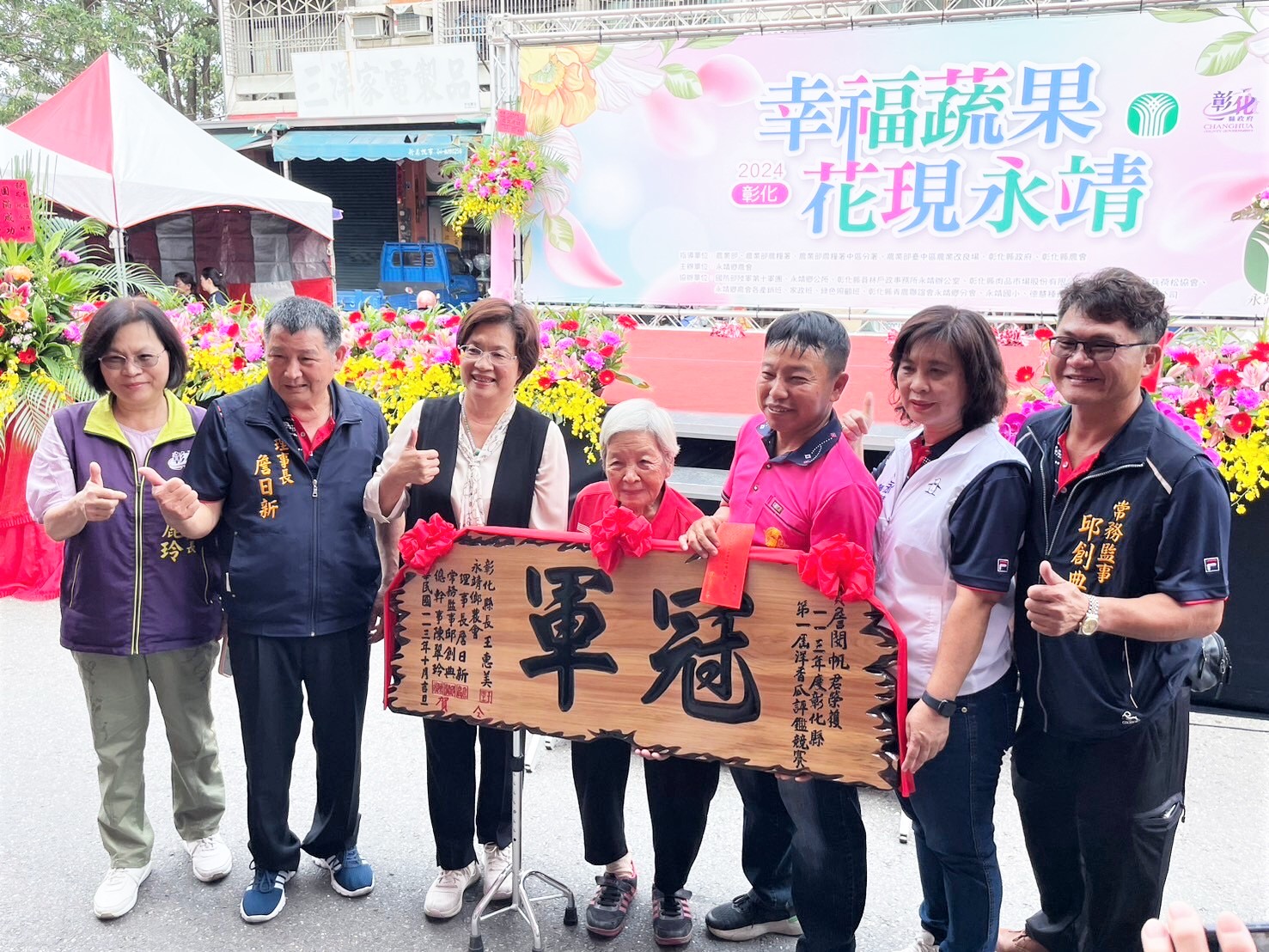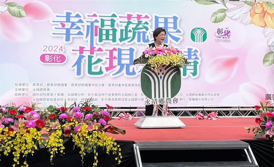 永靖鄉農會今(26)日在農會前廣場舉辦「2024永靖花卉節 幸福蔬果 花現永靖 農產品行銷推廣活動」,現場有產銷班及青農市集、推廣成果展、花藝蔬果展示、食農教育推廣、盆栽DIY、米食品嘗及精彩表演活動,並頒獎表揚洋香瓜評鑑與花藝競賽得獎農友,縣府還特別提供250份蛋塔及500顆茶葉蛋分享與會民眾。王惠美縣長應邀與會,王縣長表示,感謝永靖鄉農會理事長詹日新、常務監事邱創典、總幹事陳翠玲帶領團隊的用心,也恭喜評鑑競賽得獎者的努力,永靖鄉農會對縣府農業政策的支持與協助,特別對花卉及洋香瓜等在地農特產行銷推廣的用心與付出,讓彰化農業永續發展。 王縣長表示,恭喜所有得獎者,也要恭喜永靖鄉農會在榮獲113年第1屆洋香瓜評鑑團體組冠軍及彰化縣茄子果品評鑑競賽團體組亞軍、哈密瓜禮盒榮獲2023年台灣農會百大精品等獎項,這都是三首長帶領的團隊,努力不懈的成果。 王縣長指出,永靖鄉農會舉辦花藝競賽,參賽者以當地特產花卉為主題創作,不僅展現對自然美的追求,也讓我們體會到創意與技巧的結合,讓每一件作品都蘊含著參賽者的心血與熱情,讓大家感受到大自然的魅力與農業的無限可能。農會舉辦的評鑑與競賽,希望能提升洋香瓜的品質標準,促進產業的發展;另外花藝設計不僅美化了我們的生活,也提升農業附加價值,並成為文化活動中一道亮麗的風景。所以農業不僅是我們的生計,更是我們文化的一部分,它承載著我們的傳統與價值觀,影響著我們的生活方式及增添豐彩。 與會貴賓有立委陳素月、縣議員黃正盛、張欣倩、劉惠娟、農業部輔導司長陳俊言、農業部農業金融署長李聰勇、農糧署組長陳尚仁、臺中改良場副場長蕭政宏、農糧署中區分署科長張文美、永靖農會理事長詹日新、常務監事邱創典、總幹事陳翠玲、彰化縣農會總幹事張建豐及各鄉鎮農會總幹事、南區資訊共用中心執行長蔡和奇、彰化縣肉品市場總經理陳國興、永靖鄉長魏碩衛、永靖鄉民代表會副主席黃玉雪、縣政顧問張銘達、陳書友、農業處副處長蕭麗玲、各級民代與地方仕紳等。