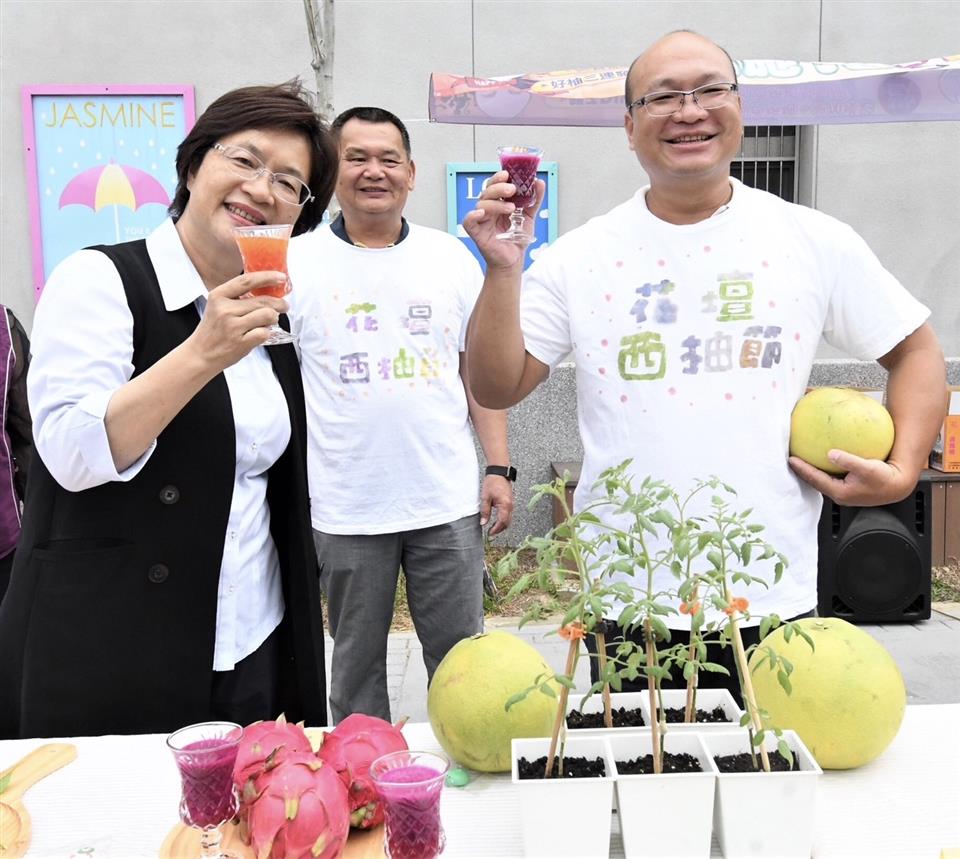 花壇鄉公所今(28)日上午在花壇鄉農會舉辦2024花壇西柚節~「萬聖西施趴踢秀…柚來見面!」記者會,彰化縣長王惠美、花壇鄉長顧勝敏、鄉民代表會主席沈文盛、花壇鄉農會總幹事顧碧琪等人與會,共同邀請大家11月2日到茉莉花壇夢想館參與一系列有吃有看有玩的精采活動,活動內容豐富多元,歡迎大家攜家帶眷,一同參與這場充滿收獲與歡笑的盛會。 王縣長表示,有人說「白露吃文旦,霜降品西施」,大家知道中秋要吃文旦,接著霜降季節,就是品西施柚的好時節, 花壇西施柚特別好吃,口感豐富,果肉Q彈、酸中帶甜、後韻回甘,極具風味,口感十分美味,近年來,在花壇鄉公所和花壇鄉農會、代表會用心推廣,不僅西施柚,還有花壇茉莉花、在地的筍子,各項農產行銷,成效非常好。 王縣長指出,花壇鄉公所將在11月2日舉辦西施趴踢秀,有活動DIY、闖關、摸彩等活動,還有許多好吃又好玩的項目。最重要的是,可以買到花壇當地出產、便宜又優質的西施柚。花壇鄉農會除了行銷西施柚,更將西施柚與茉莉花結合成「茉莉茶柚吸凍」,延長西施柚的保存期限,不僅造福農友,創意好吃又暢銷,賣到缺貨。再次感謝花壇鄉公所、代表會及農會的齊心努力,以及議會議長謝典林及議員們對預算的支持,讓農民有更好的收益。歡迎大家來花壇夢想館,品嘗好吃的西施柚。 花壇鄉長顧勝敏表示,花壇西施柚雖然有受到颱風災害的影響,但依舊是大豐收,因此將在11月2號於夢想館舉辦西施柚節推廣活動,希望大家前來共襄盛舉,享用農民們辛苦種植的好產品。 花壇鄉農會總幹事顧碧琪表示,「吃在地,享當季。」秋天吃西施柚,真的是最好的時候,歡迎大家來品嘗花壇的西施柚。 活動當天開場將由幼兒園小朋友帶來活潑有趣的表演,接著是各式各樣的農產品展售。此外,透過摸彩和闖關遊戲,還有機會贏取在地最優質的西施柚!當天現場將提供琳瑯滿目的美食品嚐,包括「木鱉果汁」、「火龍果汁」、「西施柚」、「甜丁」、「帝王柑」、「綠豆冰」、「芒果冰」、「蜂蜜水」以及「爆米花」,豐富多樣的美味讓人盡享口福。還有親子DIY活動,邀請家長與孩子們一起彩繪西施柚,並體驗敲敲植物染,共同度過歡樂時光。 記者與會貴賓有花壇鄉長顧勝敏、花壇鄉民代表會主席沈文盛、縣議員顧黃水花、花壇鄉農會總幹事顧碧琪、縣政顧問楊曜聰、農業處代理處長蕭麗玲、秘書黃智裕、各級民代及地方仕紳等。