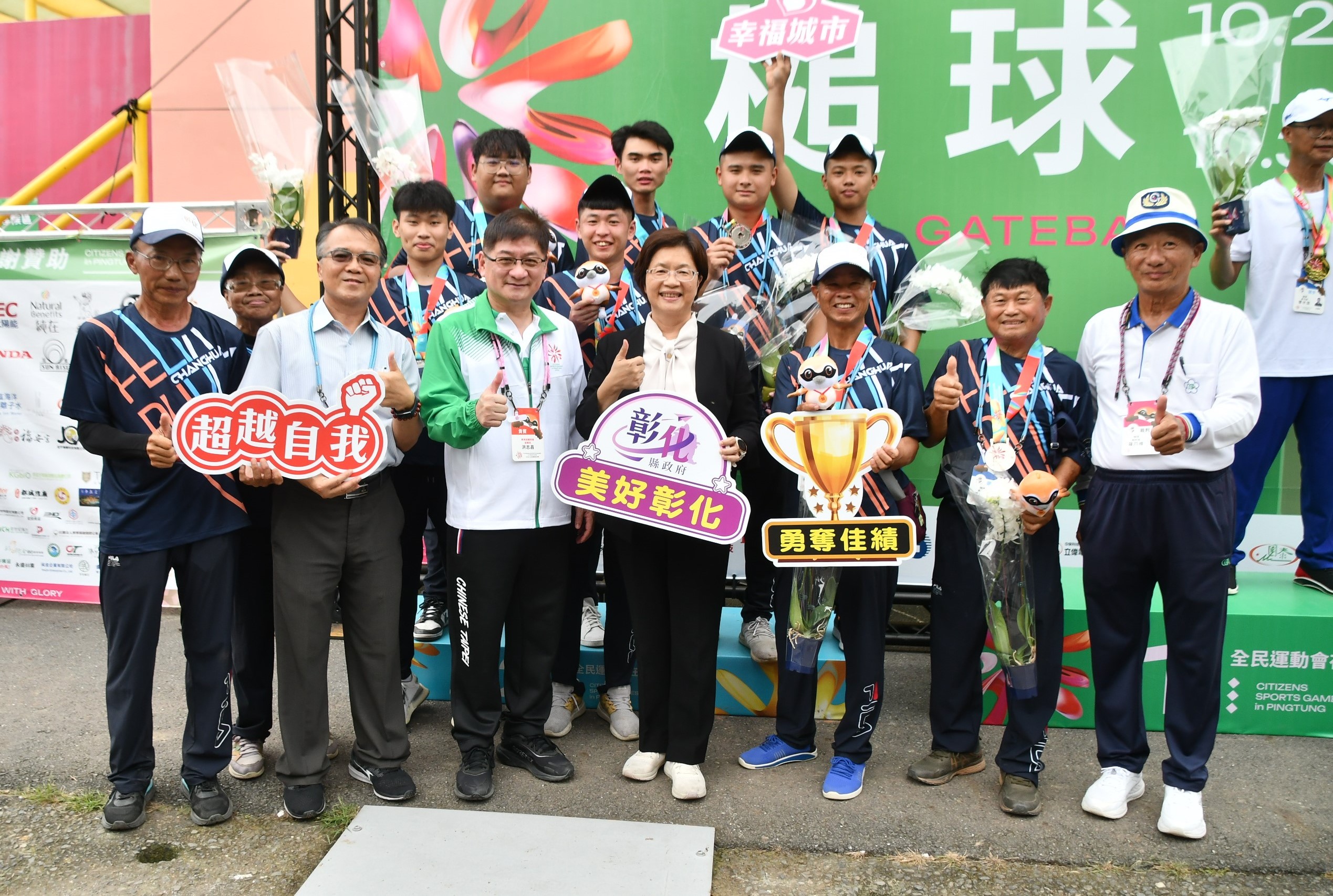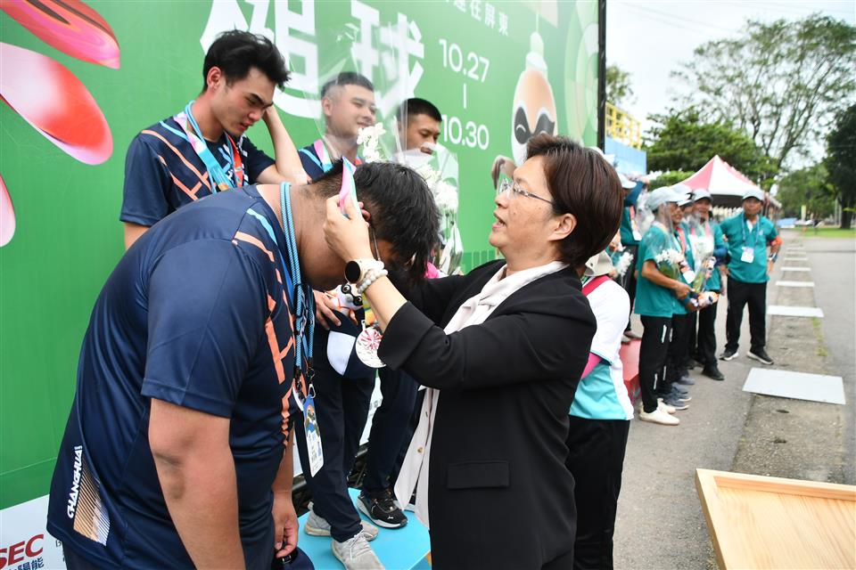兩年一度的全民運動會,自10月26日起至31日一連六天在屏東縣登場。30日下午彰化縣王惠美縣長到屏東縣為選手加油打氣,當日有躲避球、國術及槌球五人賽男子組項目。王縣長感謝選手們一路備戰與訓練,一起感受比賽現場的熱血與張力,期盼選手在全國非亞奧項目運動最高殿堂,全力以赴,堅持到最後一刻,為自己、為彰化縣爭取好成績。 王縣長表示,感謝老師們帶領著孩子們奪得非常好的成績,今年全民運彰化縣截至目前奪得金牌17面、銀牌16面、銅牌15面。全民運辦理的主要目的就是希望各個年齡層大家一起來運動,現場她看到,很多只是社團,能夠從業餘到參加比賽奪牌,非常不容易,也覺得感動,期待有更多的鄉親一起來加入。縣府也會持續不斷優化運動環境,提高更多鼓勵,讓更多人一起來運動,讓生活更健康、更幸福。 教育處表示,彰化代表隊派出近800名選手及隊職員參賽,角逐32個項目,目前彰化縣已經拿下17金16銀15銅,包括太極拳項目囊括6金2銀2銅、水上救生2金、柔術也有2金3銀4銅、龍獅運動2金2銀、國術1金3銅、健力1金1銀、民俗體育1金、蹼泳1金1銀、健美1金、槌球3銀、拔河1銀1銅、木球1銀、元極舞1銀、巧固球1銀、滑輪溜冰3銅、沙灘角力1銅、摔角1銅,共48面獎牌,超越上屆(111年)46面總獎牌,可說是大放異彩、捷報連連! 另外,這次彰化縣特別和彰化基督教醫院合作,成立「全民運動會運動傷害防護團隊」,為選手提供全方位的運動傷害防護服務,讓選手們能夠無後顧之憂,全心投入比賽,力爭佳績。 這幾年,彰化在各項運動賽事,屢獲佳績,今年更被雜誌譽為「運動天才之都」。縣府也積極挹注經費,充實體育硬體設施設備,修繕縣內體育場館;不僅如此,更修訂「彰化縣績優運動選手留縣培訓精進計畫」提高獎助金,讓選手無後顧之憂,更發布「彰化縣政府競技運動績優選手獎助金計畫」,以鼓勵具有潛力的優秀選手,持續精進並積極參加全國或國際競賽,厚植本縣運動實力,為縣、為國爭光。 17面金牌: 1、太極拳-男子組推手第二級-楊子逸-第1名 2、太極拳-男子組推手第四級-楊祐瑄-第1名 3、太極拳-男子組推手第五級-許嘉麟-第1名 4、太極拳-男子組推手第六級-陳彥良-第1名 5、太極拳-男子組推手第七級-陳雲隆-第1名 6、太極拳-女子組推手第五級-葉芮孜-第1名 7、水上救生-男子組50公尺帶假人-吳浚鋒-第1名 8、民俗體育-女子組跳繩個人賽-游舒涵-第1名 9、水上救生-男子組100公尺穿蛙鞋帶假人-吳浚鋒-第1名 10、健力-女子組第四級-洪秀靜-第1名,三破大會紀錄 11、柔術-男子組寢技第六量級-柯奕忻-第1名 12、國術-女子組拳術北拳單練-黄筠蓁-第1名 13、龍獅運動-男女混合組舞龍夜光龍-第1名 14、柔術-女子組格鬥柔術第二量級-莊凱婷-第1名 15、龍獅運動-男女混合組舞龍競速-第1名 16、蹼泳-男子組50公尺雙蹼-吳浚鋒-第1名 17、健美-女子比基尼組第二級-洪玉舫-第1名 16面銀牌: 1、太極拳-男子組套路九九式太極拳-趙淇楓-第2名 2、太極拳-男子組推手第三級-陳超翔-第2名 3、元極舞-元極舞團體組團體賽-吳美足、林秀女、郭麗英、鄭淑敏、鄧美文、蘇美鳳-第2名 4、柔術-男子組寢技第二量級-許顥瀚-第2名 5、槌球-女子組五人賽-游桂柑、黃林婌美、黃姿霖、黃映碧、廖閃、劉素琴、盧素月、謝美珠-第2名 6、槌球-男子組雙打賽-林廷漳、姚朝隆-第2名 7、木球-男子組桿數雙人賽-蕭瑋棋、賴建銘-第2名 8、龍獅運動-男女混合組舞龍自選-第2名 9、龍獅運動-男女混合組舞龍規定-第2名 10、柔術-女子組格鬥柔術第七量級-徐米嫻-第2名 11、柔術-男子組格鬥柔術第五量級-莊凱任-第2名 12、拔河-男子組室外賽640公斤級-第2名 13、健力-男子組第五級-劉華宥-第2名 14、蹼泳-男子組100公尺雙蹼-吳浚鋒-第2名 15、巧固球-男子組-第2名 16、槌球-男子組五人賽-李柏億、施冠繹、柯文周、張皓勛、許勝皓、黃國維、廖兆渝、蔡智凱-第2名 15面銅牌: 1、太極拳-女子組套路三十七式太極拳-昌靖淳-第3名 2、太極拳-男子組推手第一級-黃朝卿-第3名 3、拔河-女子組室內賽500公斤級-白宛蒨、杜映儒、杜映璇、許瑜芳、陳思齊、賴依萱、賴佳欣、賴亭諭、賴博雅-第3名 4、滑輪溜冰-女子組10000公尺淘汰賽-施沛妤-第3名 5、柔術-男子組寢技第四量級-陳昭憲-第3名 6、滑輪溜冰-女子組1000公尺爭先賽-施沛妤-第3名 7、國術-女子組拳術內家拳單練-鄭螢榆-第3名 8、柔術-男子組對打第五量級-莊凱任-第3名 9、柔術-男子組對打第一量級-許皓鈞-第3名 10、柔術-男子組格鬥柔術第二量級-林彥廣-第3名 11、沙灘角力-女子組自由式第七級-紀姵宇-第3名 12、滑輪溜冰-女子組競速溜冰500+D公尺爭先賽-施沛妤-第3名 13、摔角-摔角男子組第十級-黃晟瑋-第3名 14、國術-女子組短兵器單練-王柔鈞-第3名 15、國術-男子組掛技擂台第六量級-蕭承靖-第3名