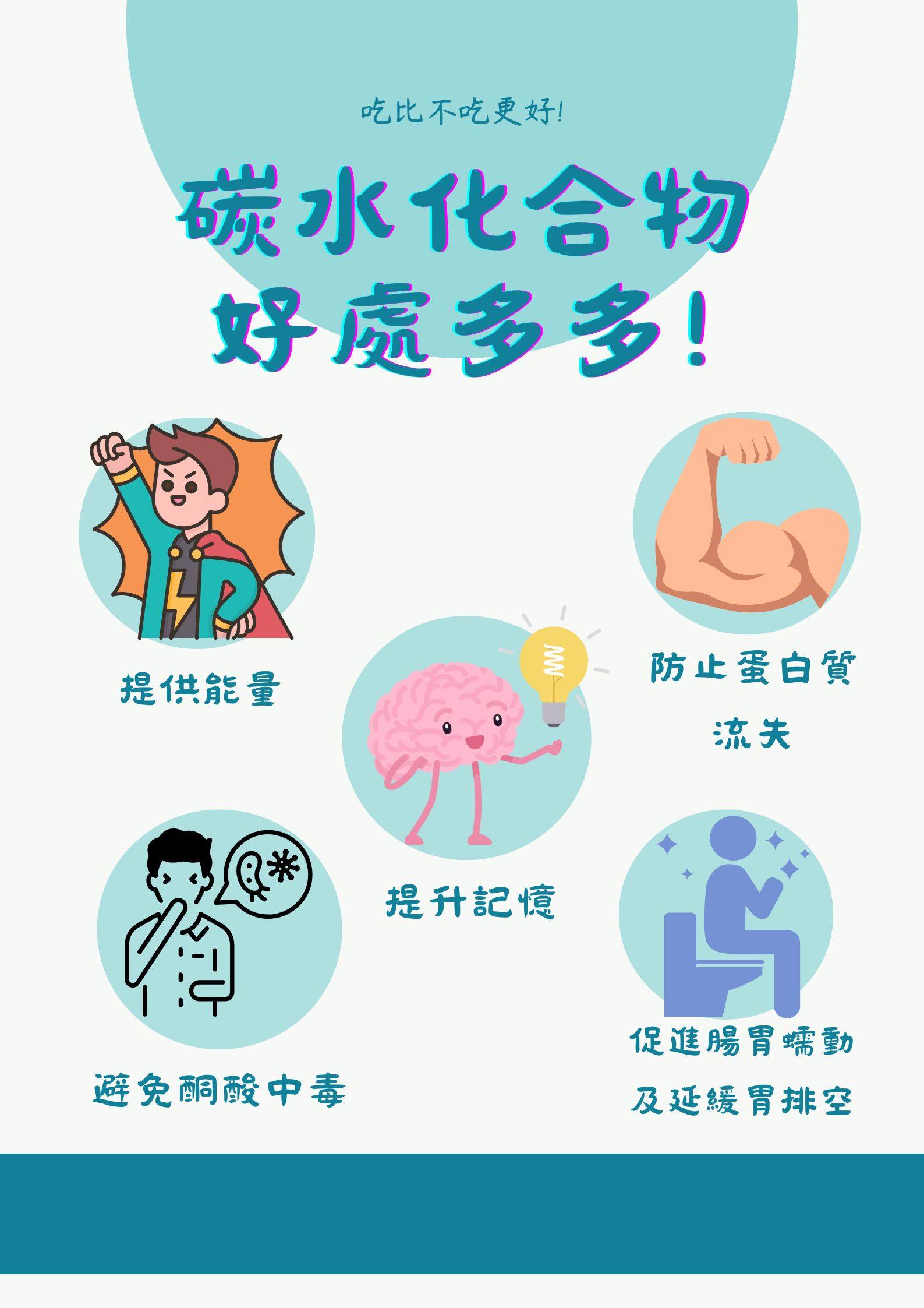 近年來,碳水化合物成為廣受關注的議題,許多人對其避之唯恐不及。然而,碳水化合物作為三大營養素之一,對於提供能量及維持基本生理功能至關重要。因此,攝取足夠的碳水化合物對於維護身體健康極為重要。隨著減肥風潮的興起,諸多誤解與錯誤資訊亦相繼出現。本文將探討碳水化合物的益處及其在飲食中的重要性。 碳水化合物的功能 能量提供:碳水化合物是人體最主要的能量來源,負責提供超過一半的能量需求,並在支持生理機能方面扮演關鍵角色。心臟和肺等重要器官主要依賴葡萄糖進行能量供應。 防止蛋白質流失:當血糖過低且體內碳水化合物攝取不足時,身體會開始分解組織蛋白質作為能量來源。若長期如此,可能導致肌肉量不足及影響器官功能。 避免酮酸中毒:脂質作為三大營養素之一,其提供的熱量最高。當碳水化合物攝取不足時,脂肪代謝產生的酮體會大量堆積,長期可導致酮酸中毒的風險。 促進認知功能:大腦的神經細胞主要依賴碳水化合物提供能量,攝取充足的醣類有助於維持良好的認知功能,包括記憶與專注力。 促進腸道健康:膳食纖維有助於腸道蠕動及延緩胃排空,並可降低大腸癌的風險。水溶性膳食纖維能降低營養素吸收、增加飽腹感並降低血膽固醇,有助於減少熱量攝取,緩解高血糖,並降低心血管疾病及冠心病的發生率。 總結來說,碳水化合物在維持身體健康與生理功能方面扮演著不可或缺的角色。正確理解碳水化合物的功能,有助於制定合理的飲食計劃,促進整體健康。