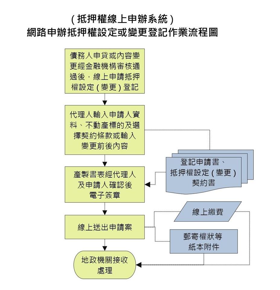 為推廣網路申請服務,公私協力合作提升地政業務之效能,「抵押權線上申辦系統入口網」(https://mao.land.moi.gov.tw)自113年11月1日起開放申請金融機構抵押權登記案件。「抵押權線上申辦系統入口網」聚焦於金融機構抵押權設定、變更及塗銷等登記類型,已設計抵押權設定或變更契約書、塗銷同意書等電子文件產製,並結合電子產權憑證與簡化他項權利證明書檢附,期能擴大全程網路申請登記範疇。 運用「抵押權線上申辦系統入口網」申請抵押權設定及變更登記,需由地政士或律師代理網路申請;抵押權塗銷(限全部塗銷)登記,除代理申請外,亦得由不動產所有權人(債務人)、金融機構單獨申請,惟抵押權塗銷同意書需於該系統產製並經金融機構電子簽章。相關作業流程如附圖。 溪湖地政黃麗卿主任表示,「抵押權線上申辦系統入口網」針對常見的金融機構抵押權設定、變更及塗銷登記,提供線上便捷申辦服務。電子文件均須經電子簽章確認,亦介接電子產權憑證,並運用區塊鏈技術將重要申辦時點資料等上鏈,以利後續查證。系統24小時運行及提供服務,當事人可隨時登入確認案件資料及電子簽章,歡迎有需求民眾多加利用。 業務單位:溪湖地政事務所 聯 絡 人:陳小姐 電 話:8813119#121