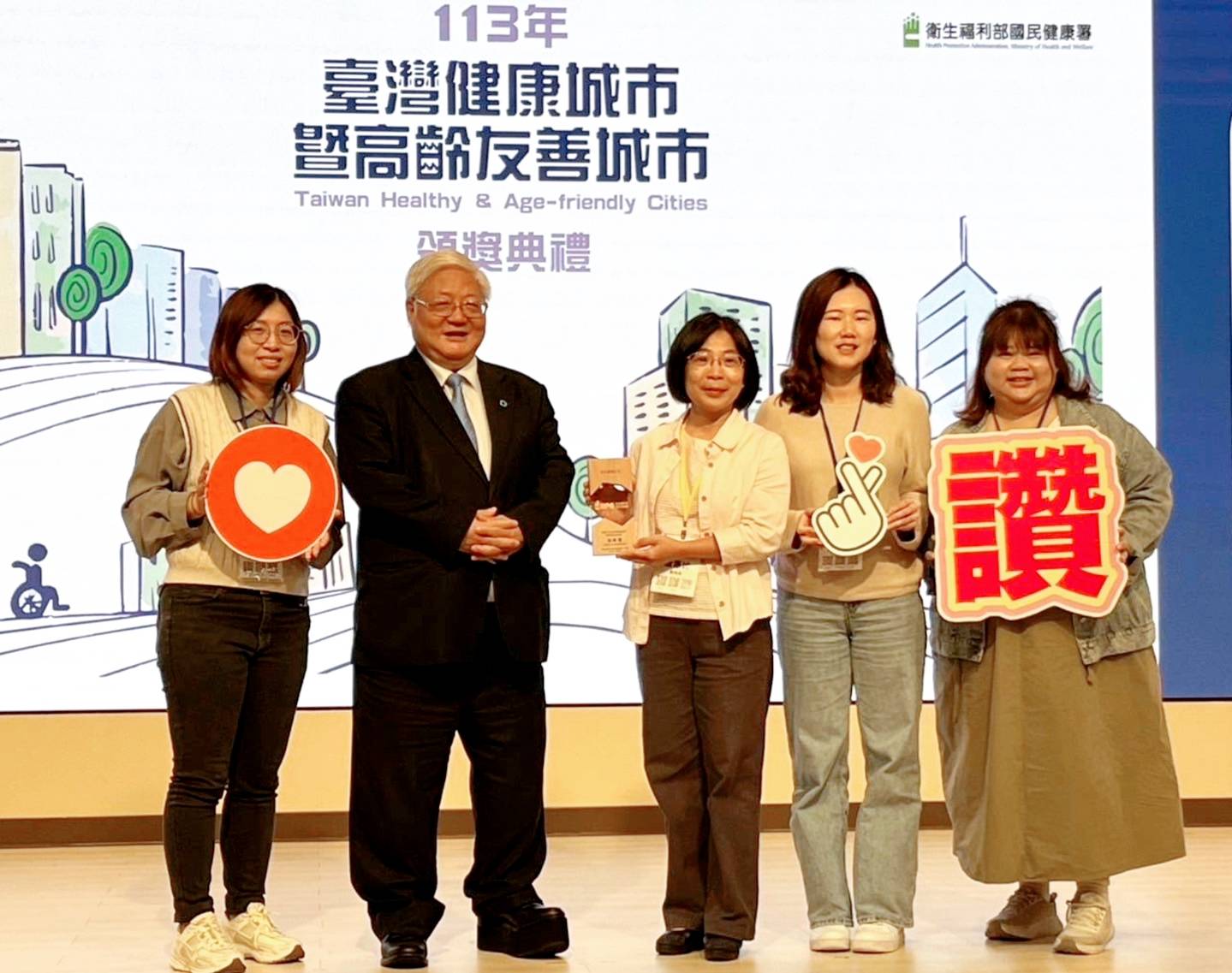 為鼓勵地方政府運用跨局處的合作模式與在地資源的結合,推動具特色及永續發展之計畫,衛生福利部國民健康署辦理「臺灣健康城市暨高齡友善城市獎」,遴選績效良好的縣市單位並公開表揚,113年共有334件投稿,經三階段評選後,評選出51個績優單位,彰化縣政府團隊在各局處積極參與下,共投稿18件,獲獎3件,包括「高齡友善城市類-創新獎」、「健康城市類-健康平等獎」、「高齡友善城市類-共老獎」。11月22日由國民健康署於張榮發基金會會議廳公開頒獎表揚各績優單位,11月26日彰化縣政府擴大主管彰化縣長王惠美感謝所有一起努力付出的人,公私協力,一起讓彰化更好更進步,為彰化共創健康友善城市,會中也由單位陳獎,共享榮耀。 創新獎:全齡照護,創新服務,彰化衛福,有go幸福 彰化縣衛生局以全人照顧、在地老化、多元連續服務為政策導向,規劃整合衛政及社政服務,建構高齡友善環境,積極布建長照衛福大樓,榮獲「高齡友善城市類-創新獎」。彰化縣人口快速老化,在少子化及老齡化的衝擊,為減輕青壯年照顧及扶養負擔,彰化超前部署,建構全國首創之長照衛福大樓,規劃結合衛生所、不老健身房、日間照顧中心、育兒親子館、公設民營托嬰中心及老人健康空間等服務,實現「美好彰化,希望城市」之願景。 健康平等獎:C望根除 肝淨人生 世界衛生組織(WHO)預計全球2030年消除C肝,臺灣計畫2025年提前達標,彰化縣衛生局為縮小健康不平等的差距,優先介入被標籤化的弱勢族群,推出三大創新計畫「藥癮C型肝炎根除計畫」、「愛滋C型肝炎根除計畫」和「矯正機關C型肝炎根除計畫」,特別在民間力量的共同挹注下,成為全國第一個以縣市層級全面動員的C型肝炎根除計畫,打破不同照護計畫間的藩籬,打通跨機關間的圍牆,且提前於2022年底率先達標,成為全國最早根除C肝的縣市,拿下「健康城市類-健康平等獎」。 共老獎:長者為師-文化藝術傳承 彰化縣文化局為保存南北管音樂,積極推動「傳統音樂戲曲傳習計畫」,並輔導縣內南北管音樂保存團體執行「傳統表演藝術保存計畫」。近年更進一步爭取文化部「南北戲曲教育紮根計畫」的支持,優先媒合高齡藝師進入學校及社區參與傳習與推廣工作。目前已在37所學校設立社團,並於12個社區館閣開辦傳習課程,促進社區互動與共學,該成果榮獲「高齡友善城市類-共老獎」的肯定,彰顯「青銀共學世代和諧」的文化傳承與共學成果。