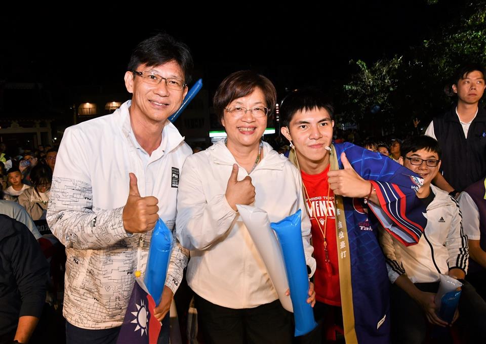 棒球,是一項團結人心、振奮精神的運動,彰化縣政府於縣立美術館前方直播2024世界12強棒球賽,今(24)日晚上6點再次迎戰日本冠亞軍爭奪賽,彰化縣政府持續以美食為中華隊應援,再次以「彰化招牌爌肉飯加持,台灣尚讚」,以美食味噌湯、爆米花、茶葉蛋正能量為中華隊加油。彰化縣長王惠美與上千位鄉親們一起參與,在奪金的那一刻歡聲雷動,大家一起見證歷史,感謝中華英雄勇奪首座世界第一。 王縣長表示,這是令人感動的一刻,從「不被看好」到奪下世界冠軍,讓台灣被全世界看到,中華隊的努力有多厲害!這也告訴我們,有時候小孩如果想要運動,不要阻擋他們。運動的孩子非常了不起,從無到有的過程中,遇到挫折時,他們會學著如何抗壓,並思考如何贏得最後的勝利。所以,會運動的小孩都是最棒的! 王縣長指出,縣政府現在一直在推動三級銜接,從國小、國中到高中,甚至延伸到大學與彰師大的銜接,就是希望孩子們能擁有更好的未來。再次感謝大家,一連四天一起熱情來參與,因為有大家的支持和加油,讓我們一起看到中華隊勇奪世界冠軍! 與會參與人員還有副縣長林田富、縣議員吳韋達、彰化市長林世賢、彰化縣運動休閒協會理事長白素英、教育處長蔡金田、各級民代及地方仕紳等。