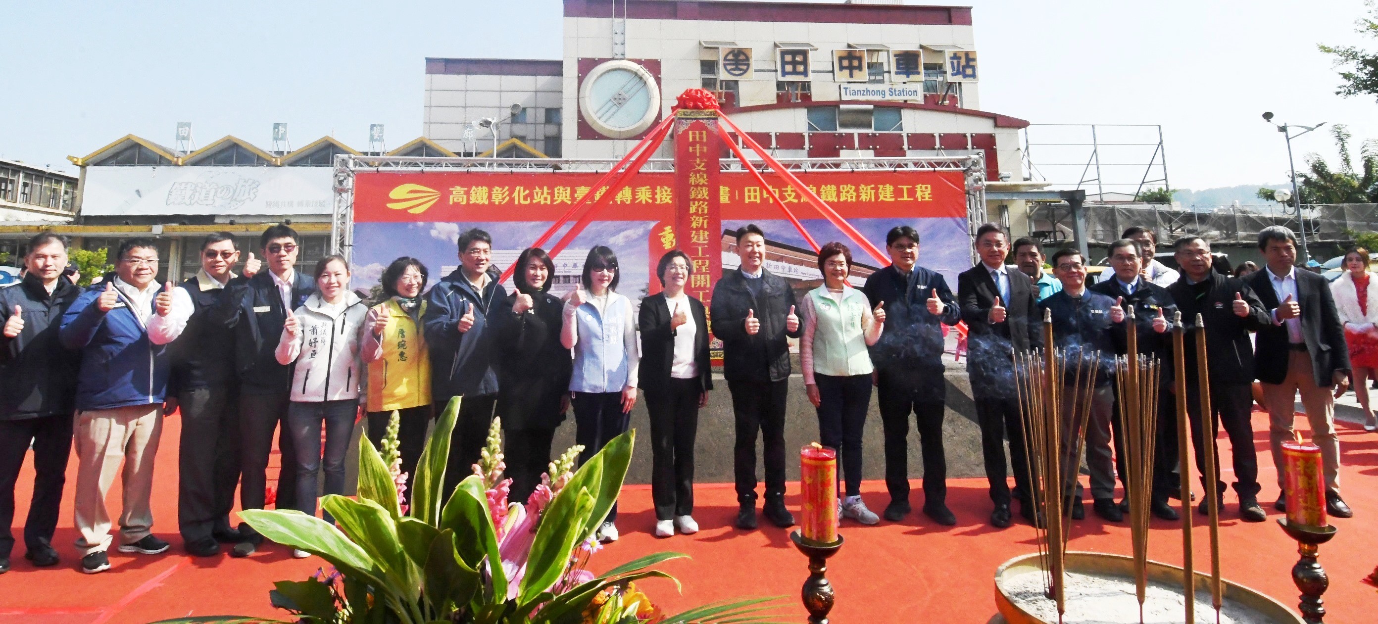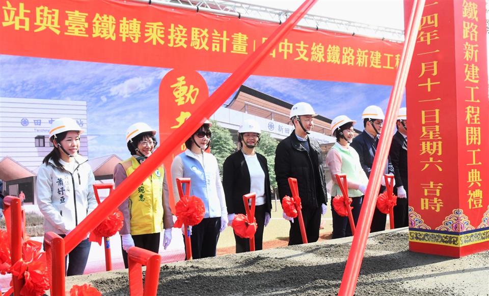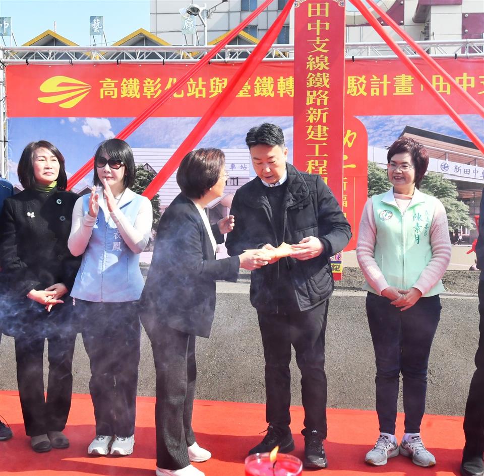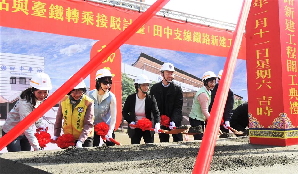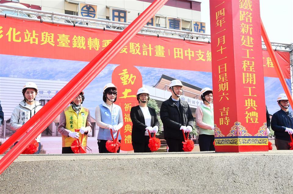 「高鐵彰化站與臺鐵轉乘接駁計畫」田中支線鐵路新建工程 於114年1月11日上午10時25分舉行動土祈福典禮,由交通部長陳世凱、彰化縣長王惠美、立法委員陳素月、謝衣鳯、國營臺灣鐵路股份有限公司總經理馮輝昇、農業部林業及自然保育署長林華慶、鐵道局長楊正君、田中鎮長蕭淑芬、縣議員蕭妤亘、詹琬惠、縣府交通處長林漢斌與各級民代等人共同出席,祈福工程施工順利、早日完工。王縣長表示,彰化鄉親期盼已久的田中支線終於要開工!代表彰化縣整個交通路網建設邁向全新的里程碑,田中小鎮素有「台灣米倉」的美名,更有最具人情味的田中馬接松,在交通上有田中高鐵彰化站、臺鐵田中火車站,感謝中央以及縣籍立委的支持,這次中央投入約80億元轉乘接駁計畫,未來讓高鐵與台鐵銜接起來,雙鐵轉乘將更加方便,不僅引進更多人流,促進田中及鄰近鄉鎮觀光景點發展,形成觀光廊道,期待交通的便利,帶動觀光產業的發展。 王縣長拜託部長三事,第一是關於台76號線建設,過年將至,希望加速施工進度,避免影響鄉親返鄉需求;第二是彰化鐵路高架化的綜合規劃,攸關彰化未來鐵路轉型的重大計畫,懇請中央和部長持續關心,協助推動;第三是要感謝縣籍立委協助爭取在南郭國小增設地下停車場,交通部補助8千多萬元,縣府在議會的支持下也負擔一半8千多萬元的經費。但是,彰化仍有許多交通瓶頸,特別需要更多停車場來改善,希望未來能得到更多的支持。 交通部長陳世凱表示,田中支線鐵路新建工程經費約80億元,感謝交通召委陳素月以及立委謝衣鳯的支持,讓計畫逐步實現。另外,要特別感謝鐵道局長楊正君,與農業部林業及自然保育署共同簽署「永續林業建構低碳鐵道車站MOU」,讓田中站將成為全台第一個以木材建構的現代化車站,這是田中的喜事,更是台灣鐵道建設的一大亮點,未來田中不只一個車站,還有田中站、新田中站,總共有三個車站!這對田中的發展來說,是一件非常值得開心的好事。希望工程可以順利進行,讓田中支線的建設成為成功的典範。 王縣長表示,縣府不遺餘力,全力配合中央的規劃,針對田中高鐵特定區土地,縣府做了非常多的協調,也請臺鐵儘速提出都市計畫,縣府會全力配合審議。另外,為進一步提高田中支線的效益,縣府去年6月份已將公共自行車Moovo引進,除了設站於高鐵站、火車站外,市區內也設有8個服務站,方便鄉親和觀光客使用。另外,也要特別感謝高鐵公司,去年7月1日起,每週增加15班次停靠彰化站,為縣民提供更便利的交通服務。 王縣長指出,縣府目前在田中高鐵彰化站附近規劃2025台灣設計展在彰化的彰化國際展覽中心,也正在進行養生村的規劃,加上雙鐵的便利性,未來的田中將更加有發展潛力也更加有魅力。