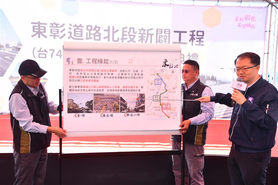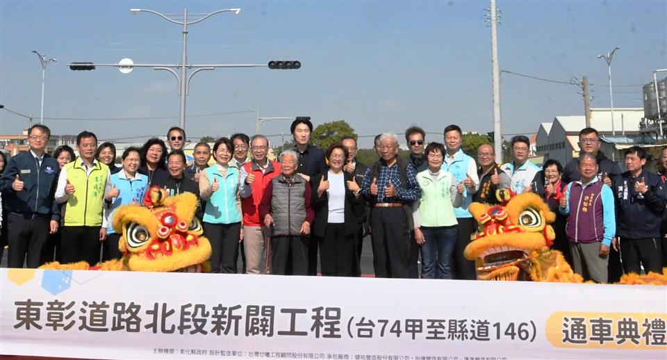 「東彰道路計畫」共分為北、中、南延段等三段,起點於花壇鄉彰化東外環路與東彰北路一段路口(台74甲線9K+960),終點於二水鄉東彰南路一段與民生路口(縣道141)。中段與南延段皆已通車,北段工程於日前先行開通大村鄉中正東路至台76線林厝交流道下路段,最後一哩路台74甲線至中正東路於24日下午4時開放通車,彰化縣長王惠美、交通部公路局中區養護工程分局主任工程司洪璠儀、台電公司彰化區營業處長黃振興與各級民代等人,上午在花壇74甲線起點出席通車典禮,正式宣告東彰道路全線通車。王縣長表示,期待已久,東彰道路在過年前終於全線通車,東彰道路是全縣第一條臨八卦山脈興建的東縱向快速道路,總長度約28.2公里,特別感謝中央、立委,以及議長謝典林、副議長許原龍及所有議員們的支持,共同投入88億元,(北段41億元、中段35億元、南延段12億元),未來從台74甲線就能直接通往二水地區,過去,要75分鐘的車程,現在,大幅縮短時間,約30分鐘就可到達。通車後將讓彰化縣整體交通路網大幅提升,包括連接台74甲線、台76線及台3線;及往北銜接國道三號快官交流道,往南接中興、南雲及未來增設的林內交流道,實現30分鐘生活圈目標,讓台中、雲林及南投間的往來更加便捷,為彰化交通建設邁向新的里程碑。 王縣長表示,東彰道路北段,位於花壇、大村、員林,起於花壇鄉彰化東外環路與東彰北路路口(台74甲線9K+960),終點銜接員林市台76線林厝交流道,道路全長約10.4公里,道路路寬28公尺,原核定總建設經費約37.6億元,中央補助約18.9億元,縣府配合約18.7億元,在施工過程中傾聽民意,為了解決花壇溪埔路及員林崙雅巷一帶長年淹水問題,於道路範圍增加約320公尺地下排水箱涵,及一併改善周邊聯外的銜接道路,自籌款再增加3億元,縣府總計斥資21.7億元,總建設經費達40.6億元。 王縣長指出,感謝所有地主的包容及支持,才能順利徵收土地,將道路拓寬,還要感謝台電公司全力的協助,有許多下地及道路銜接都有賴於台電的支持,才能在過年前順利完工,相信東彰道路通車後,未來能吸引更多自行車愛好者,從台74甲線經花壇、大村一路騎車到田中、二水地區,沿途不但能欣賞八卦山脈的美麗景致,還能遠眺高鐵、田園風貌,不僅帶來更多觀光人潮,且帶動地方經濟及觀光發展,創造更多就業機會。 交通部公路局中區養護工程分局主任工程司洪璠儀表示,東彰道路的最後一哩路終於完成了,除了感謝立委們在經費上的支持之外,在東彰道路施工期間,中區養護工程分局也做了多次訪察,甚至還前來觀摩,這幾年在缺工環境以及工程技術問題上,彰化縣長王惠美縣府團隊都能突破困難一一克服,令他感到敬佩。東彰道路是一個交通大動脈,未來可以連結台中、彰化、南投、雲林等地區,促進地方產業及觀光發展,另外,針對生活圈補助方面,在東彰道路完成之後,中央已核定13件計畫,經費有72.9億元,後續會持續與彰化縣政府團隊繼續推動彰化地區的交通建設。 立委陳素月表示,東彰道路全線通車是彰化縣大喜事,感謝共同努力打拚的所有人,也感謝王惠美縣長帶領縣府團隊,克服施工技術、用地徵收、發包等等困難,終於讓重大工程能夠順利完工,這條道路從花壇東外環,一直到二水鄉,全線沿著八卦山脈,可以說未來帶動彰化縣東半部,地方、經濟、產業、文化的發展,是非常重要的交通建設,感謝所有一起努力的人。 花壇鄉長顧勝敏表示,從東外環開通後,彰化往來台中很方便,這次加上東彰全線通車後,以前,花壇要搭高鐵大多到烏日高鐵,現在,開通後更為方便,也可以從花壇到田中高鐵,有人說,浪漫台3線,74甲線東外環、台76線、加上東彰,實現臺中、彰化、南投及雲林30分鐘生活圈,讓彰化與臺中、南投及雲林間的往來更加便捷。把交通做得好,路開到那裏,經濟就跟著好,感謝中央的支持,以及王惠美縣長縣府團隊認真把交通做好,未來花壇、大村等地,因東彰全面通車更為便捷,經濟與地方發展也會越來越好。 縣議員顧黃水花表示,感謝中央、王縣長、立委及議員們的支持,配合縣府團隊共同努力之下,才有辦法做這條路,這條路不是1、2年,差不多已經30年了,東彰道路全線通車,對於彰化南邊的發展最好,從東彰開始,像現在員林人山人海,他常說花壇位於偏鄉,往北是彰化市,再往下就是員林市,現在有這條東彰道路,能夠讓大家看見花壇的好風景、美食,花壇種出來的水果都是得到第一的,青農們很厲害,歡迎大家有空常來花壇走走。 工務處表示,本次北段通車路段(台74甲線至中正東路)工程總經費約8億332萬元,中央補助款約6億5,068萬元,縣府自籌款約1億5,262萬,東彰道路北段的規劃設計除考量交通便利性及周邊居民的需求外,由於計畫路線緊鄰員林市住宅密集區,為了保障民眾財產權,在減少建物拆遷及用地徵收的考量下,規劃出了最佳路線,部分建物更與民眾協調採用整棟搬遷代替拆除,不僅可節省用地經費,也讓民眾房屋免於拆除,共創雙贏。另外,為優化路口安全,更於重要路口新增庇護島、綠底行穿線、左轉專用道等設施。 與會貴賓有交通部公路局中區養護工程分局主任工程司洪璠儀、台電公司彰化區營業處長黃振興、立法委員陳素月、黃秀芳、縣議員顧黃水花、黃柏瑜、曹嘉豪、莊陞漢、黃正盛、張雪如、李成濟、白玉如、議員楊子賢服務團隊、花壇鄉長顧勝敏、員林市代理市長賴致富、大村鄉