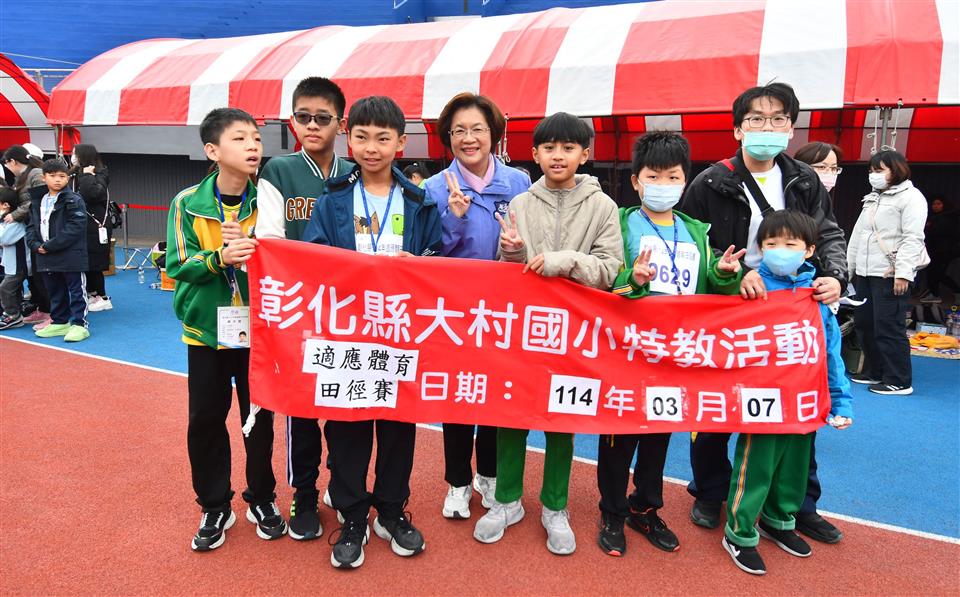 114年適應體育田徑賽於今(7)日在彰化縣立體育場舉行,彰化縣長王惠美出席開幕典禮,王縣長表示,今年共有來自縣內的高中職、國中及國小,共144校、1,512位選手參賽,參與人數逐年成長,看到每位選手勇敢走出戶外、迎向人群,勇敢挑戰自我、不畏困難的精神,值得致敬讚揚,期勉選手們發揮最佳實力,超越自我、堅持到底,永不放棄的運動家精神,「你們都是最棒的」! 王縣長表示,今天這場體育賽事可說是意義非凡,每一位選手都克服自己身體上的不便,勇敢挑戰自我極限,展現出「無畏困難」的精神,這是值得我們學習的。每個孩子都是家長的寶貝,適應運動會希望孩子能夠走出戶外一起來參與,在競技舞台上與他人公平競爭,「只要面對太陽,陰影就在你的背後。」,希望孩子們能夠積極向前,保持正向能量,挑戰困難,突破自我。感謝為賽事辛苦付出的工作人員、裁判及志工,還有各校師長及教練對於選手的陪伴與指導,讓孩子們能在運動中獲得成就感,找到自信。 平和國小特教老師毛老師說,每年帶著小朋友一起來參與,讓小朋友運動健身,有的小朋友連續六年都來,很開心的一起來參與。 教育處表示,今年適應體育田徑賽事,有肢體障礙、視力障礙、聽力障礙、智能障礙、學習障礙及其他類等障礙類別,競賽項目分為田賽:30公尺、60公尺及100公尺;徑賽:立定跳遠、急行跳遠、鉛球擲遠、壘球擲遠等,透過不同的比賽方式和適度調整遊戲規則,讓原本受到限制的孩子,也能享受運動的樂趣,展現辛勤練習的成果。 與會人員還有副議長許原龍服務團隊、教育處長蔡金田等人。