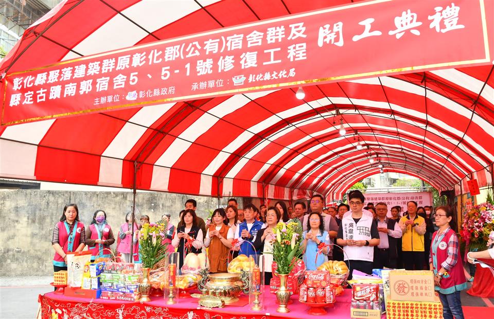 彰化縣建縣歷史悠久,縣內有多處古蹟、歷史建築、聚落建築群等,彰化縣政府為積極保存縣內文化資產並活化再利用,於今(13)日上午在南郭宿舍舉辦「彰化縣聚落建築群原彰化郡(公有)宿舍群及縣定古蹟南郭宿舍5、5-1號修復工程」開工典禮,彰化縣長王惠美與議員、各級民代、地方仕紳共同出席,一同祈求開工大吉、工程順利。王縣長表示,感謝議長謝典林及議員們對預算的支持,這次修復工程由縣府全額編列新臺幣2億600萬元,進行7棟日式建築修復及1處公共廁所修繕等,工期730個日曆天,以115年12月為完成目標,未來規劃青年進駐,期能打造文化與旅遊新亮點。 王縣長表示,彰化郡(公有)宿舍群及縣定古蹟南郭宿舍至今已有103年的歷史,這次修復官舍,包括高等官舍、判任官甲種官舍及丙種官舍,其中最具特色的就是「南郭宿舍5、5-1號」(高等官舍),無論是建築風格還是內部裝潢,都非常的講究,融合西洋式玄關和應接室,保留典型的日式格局及檜木門板,十分獨特稀有。在107年指定公告為縣定古蹟,周圍的建築群也保留原有的日式風貌,因此在108年公告登錄為彰化縣聚落建築群「原彰化郡(公有)宿舍群」,非常珍貴也具有歷史價值的文化資產。 王縣長指出,經歷歲月更迭與大自然的洗禮,部分建物因風雨侵蝕,逐漸出現局部損壞,為了保存寶貴的文化資產,縣府在去年(113年)8月自籌縣款完成規劃設計,未來也將規劃彰化在地青年進駐,結合青年創業、文創觀光,結合旅遊發展,創造多重效益,逐步透過「點、線、面」將整合,將串聯起中興莊、南郭宿舍群與八卦山,期盼未來成為彰化的重要文化旅遊觀光亮點,改造彰化,大家一起來。 縣議員莊陞漢表示,彰化是一個非常有文化深度的地方,但有很多古蹟需要挹注更多資源去不斷翻新,以提供縣民更好的藝文環境,也希望縣政府提出更多更好的建設,議會也將全力予以支持,也感謝議長及副議長帶領議員們一起監督縣府,一起讓彰化更好更進步。 文化局表示,「原彰化郡(公有)宿舍群」創建於日治時期,於大正11年(西元1922年)及昭和10年(西元1935年)間分批興建完成,迄今已有103年的歷史,為當時依據台灣總督府頒布之《台灣總督府官舍建築標準》,以官等位階配給之宿舍,包含有高等官第三種官舍(公園路一段174巷5號、5-1號)、判任官甲種官舍(公園路一段174巷4號)及判任官丙種雙併官舍(公園路一段174巷2號、3號、7號、8號;南郭路一段145巷6號、8號、10號、14號、15號、16號)等,共計7棟官舍。其中,「南郭宿舍5、5-1號」以「渡廊下」(走廊)相連結,建築樣式及裝潢極為講究,不僅有西洋式的「玄關」及「應接室」,典型的日式格局及部分檜木門板,呈現獨特且罕見的建築風貌,因此在民國107年指定公告為本縣縣定古蹟;後來因鄰近官舍群整體規制完整,原有日式風貌保存良好,不僅見證日治時期的營建技術水準,也承襲傳統日式木構工藝,形成具有歷史及文化價值的聚落建築群,因此進一步在108年公告登錄為本縣聚落建築群「原彰化郡(公有)宿舍群」。 與會貴賓還有縣議員莊陞漢、吳韋達、温芝樺、白玉如、黃千宴、陳銌銌、葉永清、許雅琳、楊子賢、黃柏瑜、呂政道建築師事務所呂政道、銓田營造有限公司洪焜元、南郭國小校長王春堎、民生國小校長曾俊堯、聯興國小校長柯文吉、石牌國小校長吳美均、龍山社區發展協會理事長林基生、福安社區發展協會理事長鄭登元、成功社區發展協會理事長郭秋宏、文化局長張雀芬、青年發展處長陳柏村、各級民代與地方仕紳等。