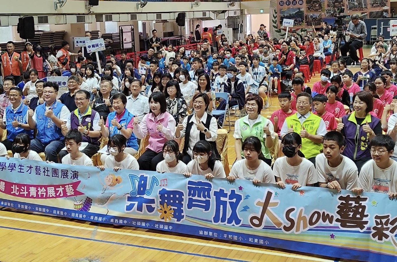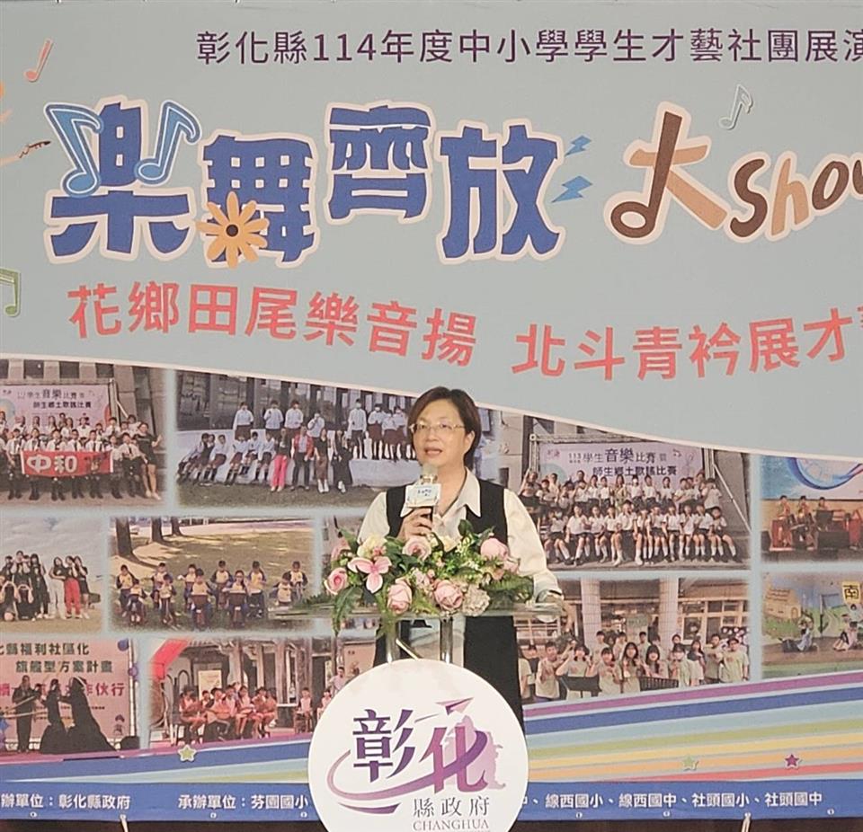 彰化縣114年度中小學學生才藝社團展演活動隆重開鑼!今年的展演活動共分4場次舉行,第二場北斗區於4月19日於田尾國中活動中心登場,以「花鄉田尾樂音揚,北斗青衿展才藝」為主題,讓參與師生全情投入,帶來一場絢麗多元的才藝饗宴。縣長王惠美親臨活動現場,為孩子們的精彩表現喝采,同時王縣長也熱情邀請鄉親朋友參與接下來和美及田中等二區的展演活動,一同感受彰化囝仔在舞台上綻放光芒的動人瞬間。 王縣長表示,「彰化不怕没人才,就怕没舞台」,今年的才藝社團展演活動已邁入第四年,活動持續至4月27日間,共舉辦4場精彩表演,後續第三場次和美區:4月26日(星期六)上午8時30分,於和東國小活動中心舉辦,第四場次田中區:4月27日(星期日)上午8時30分,於社頭國中活動中心舉辦,縣內中小學以「一校至少一社團」的方式,輪番登場,呈現孩子們多元學習的成果。演出內容涵蓋舞蹈、北管、月琴、話劇、劍道、戰鼓等,精彩絕倫,有如一場藝文嘉年華,為觀眾帶來豐富的藝術與文化饗宴。 教育處表示,縣府一向致力於推動全人教育,為學生搭建多元的學習與展現平台,讓每一位孩子都能擁有實現夢想的舞台。才藝社團展演活動是展現學子辛勤練習成果的場域,更是培養自信、增進校際交流的重要契機,透過這樣的活動,不僅能深化本縣藝術教育的量能,還能將「美好彰化、希望城市」的願景具體實現。 今年的展演活動更結合多元資源,各場次活動特別邀請縣內各局處、社區大學及樂齡學習中心設攤參與,讓民眾在欣賞表演之餘,也能收穫實用資訊與豐富的趣味體驗,將活動注入更多文化與教育意涵,打造出兼具知識與藝術的多元空間。 誠摯邀請家長與鄉親踴躍蒞臨現場,為孩子們的努力與夢想加油打氣,給予最熱烈的掌聲與鼓勵!孩子們的成長與學習,需要來自社會的肯定與支持,讓我們共同為這群充滿潛力與熱情的彰化囝仔,注入更多成長的動力與勇氣。 與會貴賓還有立委謝衣鳯、陳素月、縣議員劉淑芳、教育處長蔡金田、彰化縣各級學校家長會聯合會副理事長黃琮柏、黃烱發、縣政顧問莊昇隆、黃坤煙、各級民意代表與地方仕紳等人。