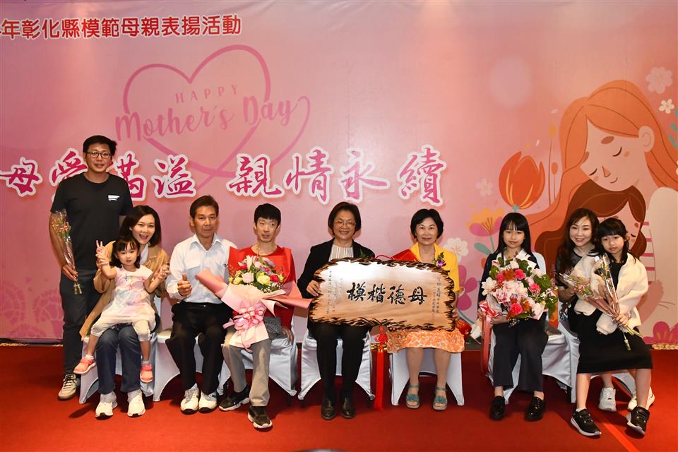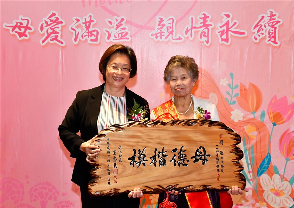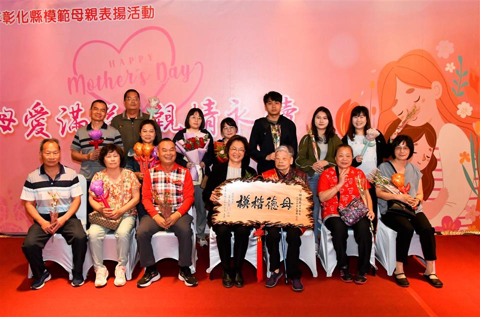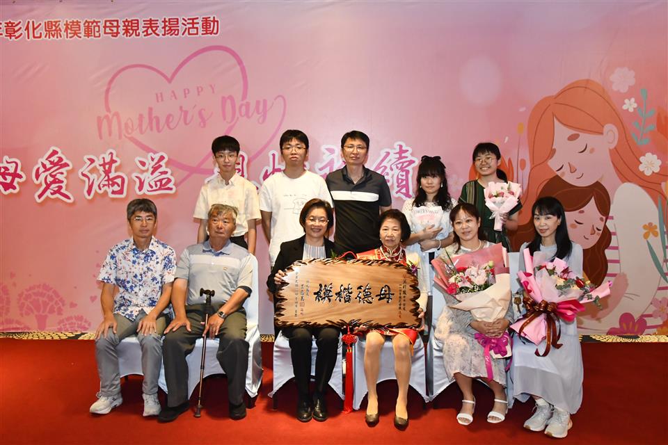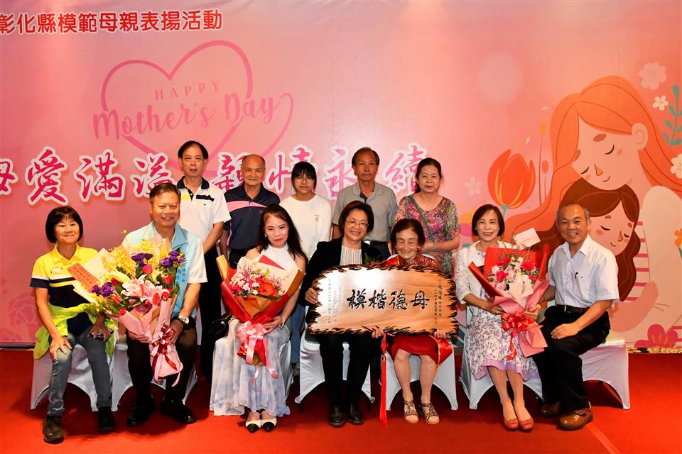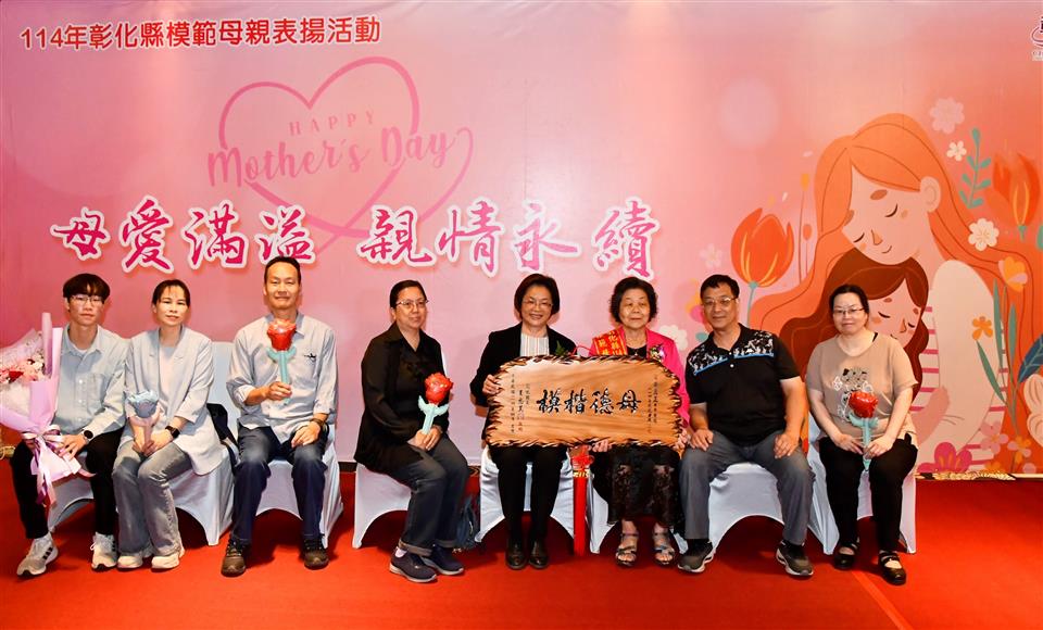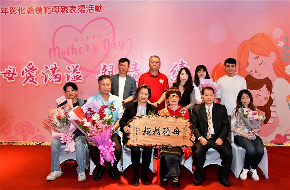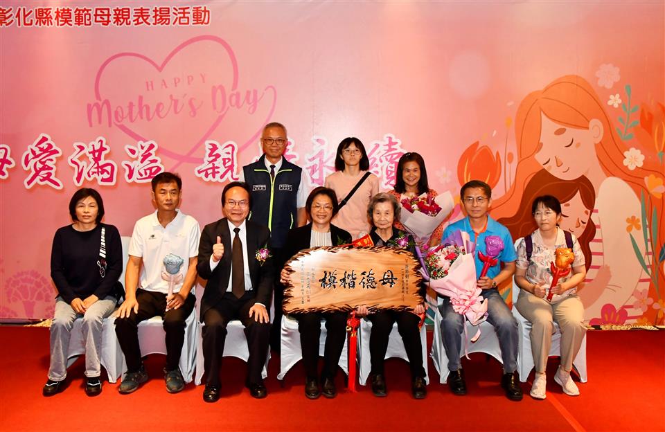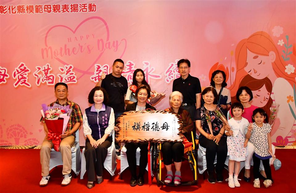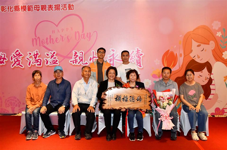 為彰顯母愛的偉大與光輝,彰化縣政府於4月26日上午在花壇鄉全國麗園大飯店舉辦「114年模範母親表揚活動」,由縣長王惠美與會頒獎,王縣長提前祝福天下所有的媽媽,母親節快樂,也向來自全縣各鄉鎮市公所及身障團體推薦,恭喜38位獲獎的模範母親,致上最高敬意與感謝,王縣長表示,每位模範母親都背後都有感動人心的故事,為母則強,用實際行動無私奉獻給家庭跟孩子,有時候犧牲自己的夢想,用心栽培孩子、照顧家庭,讓我們看到母愛是無私的,不只是家庭的榜樣,更是社會的典範。 王縣長表示,每位模範母親都有令人敬佩的故事,其中分享幾位模範媽媽的事蹟,最高齡的有來自溪州鄉101歲的人瑞-黃蔡哖女士,在日治時期没有接受正規教育,在以前没有白米飯吃,常以地瓜籤果腹,含辛茹苦,養兒育女,成家立業長大成人。還有社團法人彰化縣盲人福利協進會的劉玉華女士,發現自己罹患了遺傳性視網膜色素變性症(俗稱夜盲症),但沒有因為自身的障礙而疏於子女的教養,反倒克服種種障礙,更加用心照顧好孩子,堅毅不的心讓孩子們無論學業或是品格教育,都有非常好的表現。另外,竹塘鄉的邱陳刷女士,丈夫在823砲戰中殉職,她不向命運低頭,堅強撐起家庭,獨力扶養五名子女長大成人。 王縣長指出,其他還有無數令人敬佩的母親,都有非常動人的故事,例如模範母親陳寶蘭在家庭中無私奉獻,培育三名優秀子女,希望透過每位模範母親的故事,讓更多後輩學習的榜樣。現場也準備了田尾康乃馨花束及泰式SPA肩頸紓壓按摩椅墊,慰勞媽媽們一整年的辛勞,感謝救國團規劃非常溫馨的母親節表揚活動。 員林市代理市長賴致富代表鄉鎮市長致詞時表示,向所有模範母親表達敬意,祝賀所有獲獎的模範母親,天下所有的媽媽都是一樣的,每位模範母親都是令人敬仰,在孩子的心中,每一位媽媽都是他心中的模範母親,所有受表揚的模範母親都值得學習,希望社會更祥和進步。 國防部全民防衛動員署後備指揮部政戰主任胡少將表示,彰化是很有人情味的地方,今天受表揚的其中一位模範母親,來自竹塘鄉的邱陳刷女士,在823戰役的時候,他的先生不幸亡故,過程中含辛茹苦扶養5個小孩長大,她第3個孩子邱理事長學習媽媽的毅力及堅強,把823戰役協會辦理的很好,繼續照顧遺族、遺眷,感謝彰化縣政府辦理這麼有意義的活動。 模範母親陳寶蘭表示,很高興也很榮耀得到這份獎項,從孩子小時候就很用心栽培,每天載著孩子上課,外公因曾是南郭國小校長,很注重教育,也希望孩子都能夠到國外深造,三名子女都曾到國外,也都有自己的專業,期許兒女在社會上能發揮專業有所貢獻。 救國團主委施鳳銘表示,恭喜所有獲獎的模範母親,感謝縣政府的大力支持,也感謝協辦單位及義工夥伴,讓活動更圓滿順利,未來救國團將持續支持彰化縣政府各項縣政推動。 頒獎典禮結束後,緊接著登場的摸彩活動,由王縣長抽出3位幸運得主,為媽媽們的節日喜悅再添驚喜。 彰化縣38位模範母親分別為:林呂阿幼、陳寶蘭、吳劉阿味、洪惠美、楊桂、陳謝金選、陳寶鳳、羅黃瓊慧、柯桂英、鄭清文、林奎富、黃陳阿吻、黃真正、陳阿暖、謝淑鳳、游楊滿、黃張珠、張楊珠、邱陳絹、顧美玉、劉愛卿、洪彩鳳、紀金雀、詹黃秋花、黃葉麗、許鄭對、楊麗兒、蕭陳乃、劉緞、黃蔡哖、許玉蕊、邱陳刷、邱美招、劉玉華、王靜惠、陳盈霓、林秀喜、邱麗娟。 與會貴賓陸續到場還有立委黃秀芳、陳素月、縣議員林宗翰、蕭文雄、林小琪、員林市代理市長賴致富、和美鎮長林庚壬、埔心鄉長張佩瑩、永靖鄉長魏碩衛、芳苑鄉長林保玲、田中鎮長蕭淑芬、北斗鎮長顏宏霖、彰化市長林世賢、彰化縣救國團主委施鳳銘、國防部全民防衛動員署後備指揮部政戰主任胡少將、中部地區後備指揮部指揮官陶少將、政戰主任韓上校、彰化縣後備指揮部指揮官梅上校、彰化縣團務指導委員會、員林市代表會主席張國良、彰化市公所專員曹武賀、大村鄉公所秘書洪蘭逸、溪湖鎮公所機要秘書陳昀秀、社頭鄉公所課長蕭淑芬、溪州鄉公所秘書徐恩昌、二林鎮公所洪素芃、各級學校家長會聯合會理事長許友忠、副理事長吳章汶、社會處長王蘭心、副處長涂敏群、各級民意代表及地方仕紳等人。