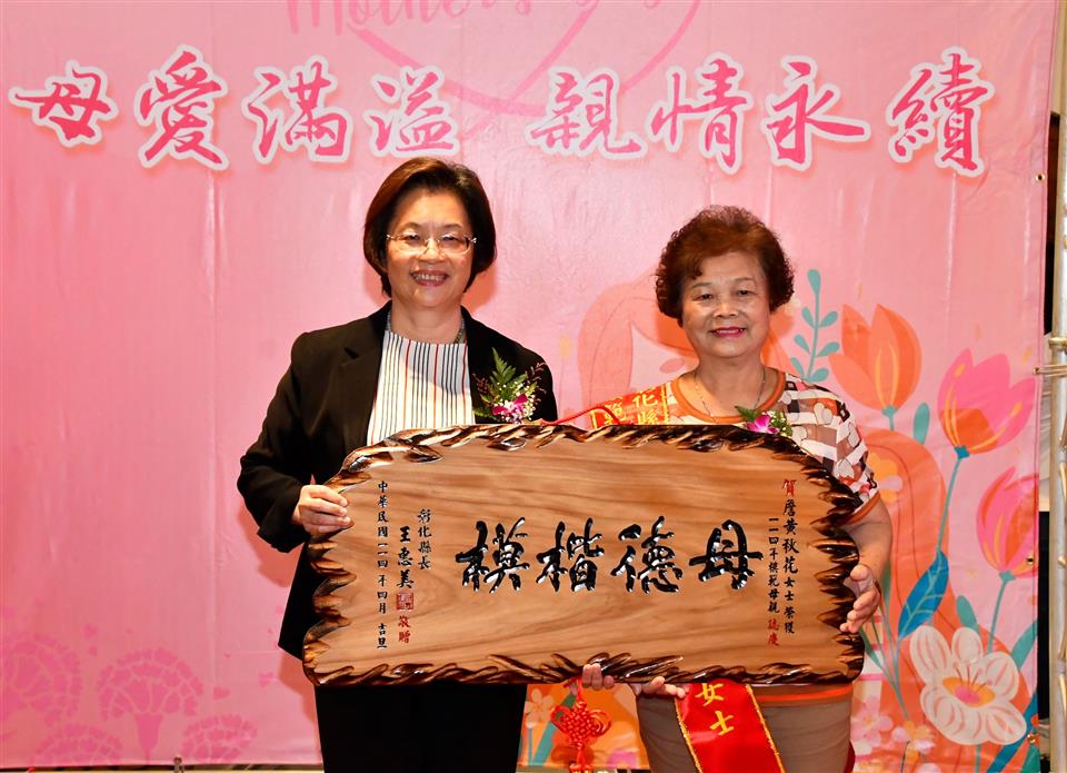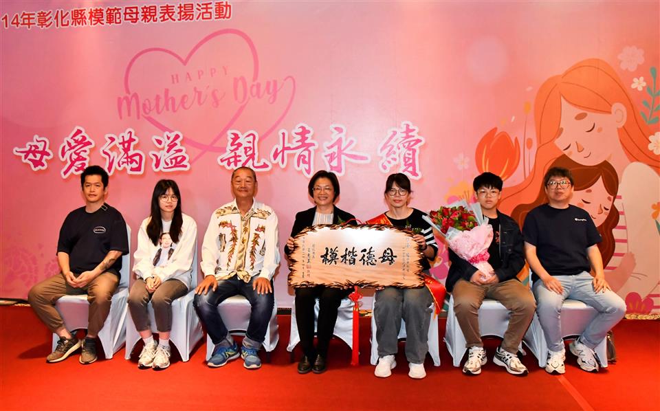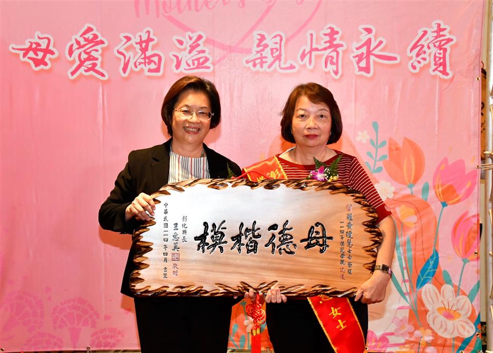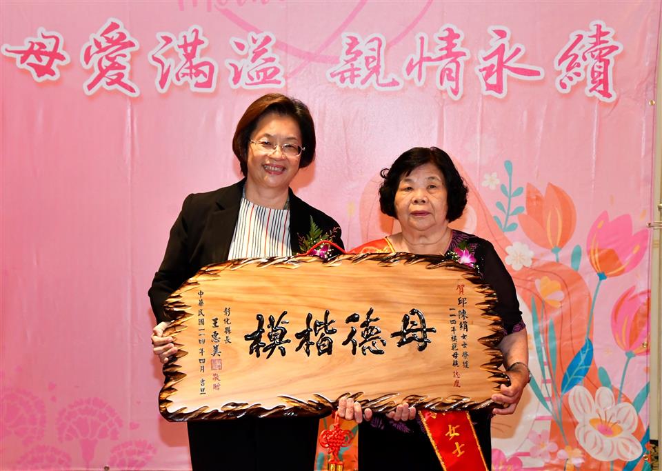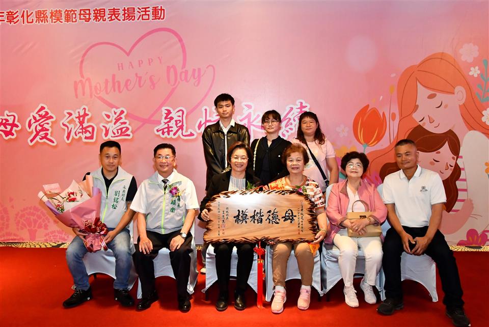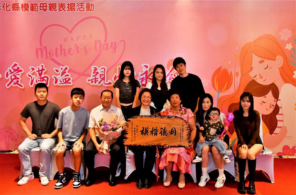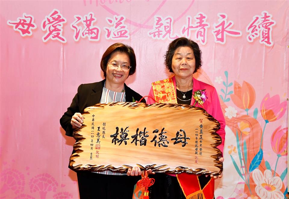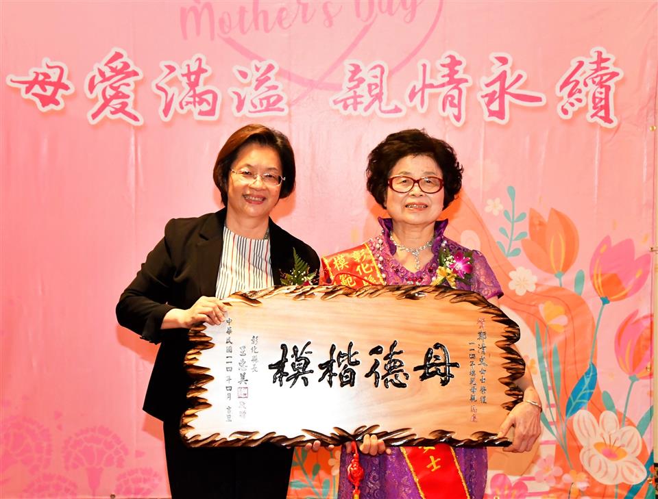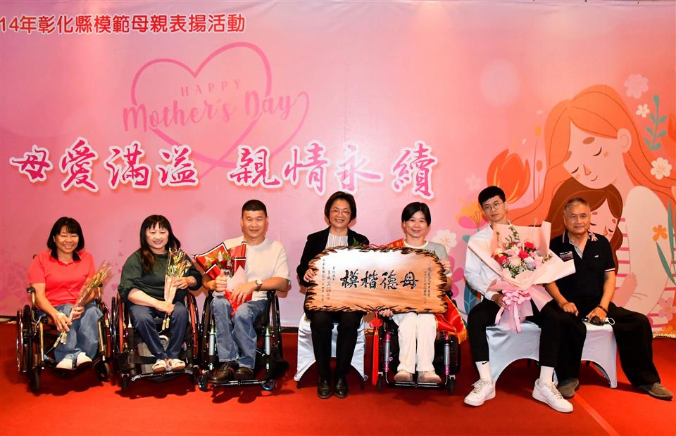 為彰顯母愛的偉大與光輝,彰化縣政府於4月26日上午在花壇鄉全國麗園大飯店舉辦「114年模範母親表揚活動」,由縣長王惠美與會頒獎,王縣長提前祝福天下所有的媽媽,母親節快樂,也向來自全縣各鄉鎮市公所及身障團體推薦,恭喜38位獲獎的模範母親,致上最高敬意與感謝,王縣長表示,每位模範母親都背後都有感動人心的故事,為母則強,用實際行動無私奉獻給家庭跟孩子,有時候犧牲自己的夢想,用心栽培孩子、照顧家庭,讓我們看到母愛是無私的,不只是家庭的榜樣,更是社會的典範。 王縣長表示,每位模範母親都有令人敬佩的故事,其中分享幾位模範媽媽的事蹟,最高齡的有來自溪州鄉101歲的人瑞-黃蔡哖女士,在日治時期没有接受正規教育,在以前没有白米飯吃,常以地瓜籤果腹,含辛茹苦,養兒育女,成家立業長大成人。還有社團法人彰化縣盲人福利協進會的劉玉華女士,發現自己罹患了遺傳性視網膜色素變性症(俗稱夜盲症),但沒有因為自身的障礙而疏於子女的教養,反倒克服種種障礙,更加用心照顧好孩子,堅毅不的心讓孩子們無論學業或是品格教育,都有非常好的表現。另外,竹塘鄉的邱陳刷女士,丈夫在823砲戰中殉職,她不向命運低頭,堅強撐起家庭,獨力扶養五名子女長大成人。 王縣長指出,其他還有無數令人敬佩的母親,都有非常動人的故事,例如模範母親陳寶蘭在家庭中無私奉獻,培育三名優秀子女,希望透過每位模範母親的故事,讓更多後輩學習的榜樣。現場也準備了田尾康乃馨花束及泰式SPA肩頸紓壓按摩椅墊,慰勞媽媽們一整年的辛勞,感謝救國團規劃非常溫馨的母親節表揚活動。 員林市代理市長賴致富代表鄉鎮市長致詞時表示,向所有模範母親表達敬意,祝賀所有獲獎的模範母親,天下所有的媽媽都是一樣的,每位模範母親都是令人敬仰,在孩子的心中,每一位媽媽都是他心中的模範母親,所有受表揚的模範母親都值得學習,希望社會更祥和進步。 國防部全民防衛動員署後備指揮部政戰主任胡少將表示,彰化是很有人情味的地方,今天受表揚的其中一位模範母親,來自竹塘鄉的邱陳刷女士,在823戰役的時候,他的先生不幸亡故,過程中含辛茹苦扶養5個小孩長大,她第3個孩子邱理事長學習媽媽的毅力及堅強,把823戰役協會辦理的很好,繼續照顧遺族、遺眷,感謝彰化縣政府辦理這麼有意義的活動。 模範母親陳寶蘭表示,很高興也很榮耀得到這份獎項,從孩子小時候就很用心栽培,每天載著孩子上課,外公因曾是南郭國小校長,很注重教育,也希望孩子都能夠到國外深造,三名子女都曾到國外,也都有自己的專業,期許兒女在社會上能發揮專業有所貢獻。 救國團主委施鳳銘表示,恭喜所有獲獎的模範母親,感謝縣政府的大力支持,也感謝協辦單位及義工夥伴,讓活動更圓滿順利,未來救國團將持續支持彰化縣政府各項縣政推動。 頒獎典禮結束後,緊接著登場的摸彩活動,由王縣長抽出3位幸運得主,為媽媽們的節日喜悅再添驚喜。 彰化縣38位模範母親分別為:林呂阿幼、陳寶蘭、吳劉阿味、洪惠美、楊桂、陳謝金選、陳寶鳳、羅黃瓊慧、柯桂英、鄭清文、林奎富、黃陳阿吻、黃真正、陳阿暖、謝淑鳳、游楊滿、黃張珠、張楊珠、邱陳絹、顧美玉、劉愛卿、洪彩鳳、紀金雀、詹黃秋花、黃葉麗、許鄭對、楊麗兒、蕭陳乃、劉緞、黃蔡哖、許玉蕊、邱陳刷、邱美招、劉玉華、王靜惠、陳盈霓、林秀喜、邱麗娟。 與會貴賓陸續到場還有立委黃秀芳、陳素月、縣議員林宗翰、蕭文雄、林小琪、員林市代理市長賴致富、和美鎮長林庚壬、埔心鄉長張佩瑩、永靖鄉長魏碩衛、芳苑鄉長林保玲、田中鎮長蕭淑芬、北斗鎮長顏宏霖、彰化市長林世賢、彰化縣救國團主委施鳳銘、國防部全民防衛動員署後備指揮部政戰主任胡少將、中部地區後備指揮部指揮官陶少將、政戰主任韓上校、彰化縣後備指揮部指揮官梅上校、彰化縣團務指導委員會、員林市代表會主席張國良、彰化市公所專員曹武賀、大村鄉公所秘書洪蘭逸、溪湖鎮公所機要秘書陳昀秀、社頭鄉公所課長蕭淑芬、溪州鄉公所秘書徐恩昌、二林鎮公所洪素芃、各級學校家長會聯合會理事長許友忠、副理事長吳章汶、社會處長王蘭心、副處長涂敏群、各級民意代表及地方仕紳等人。