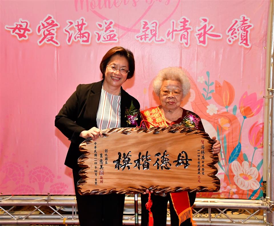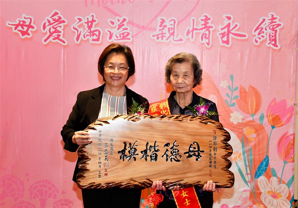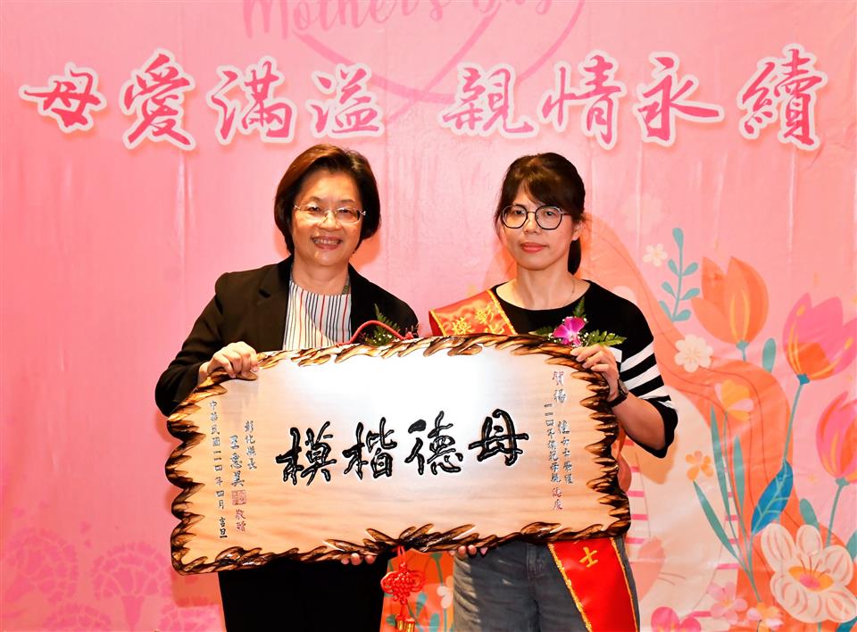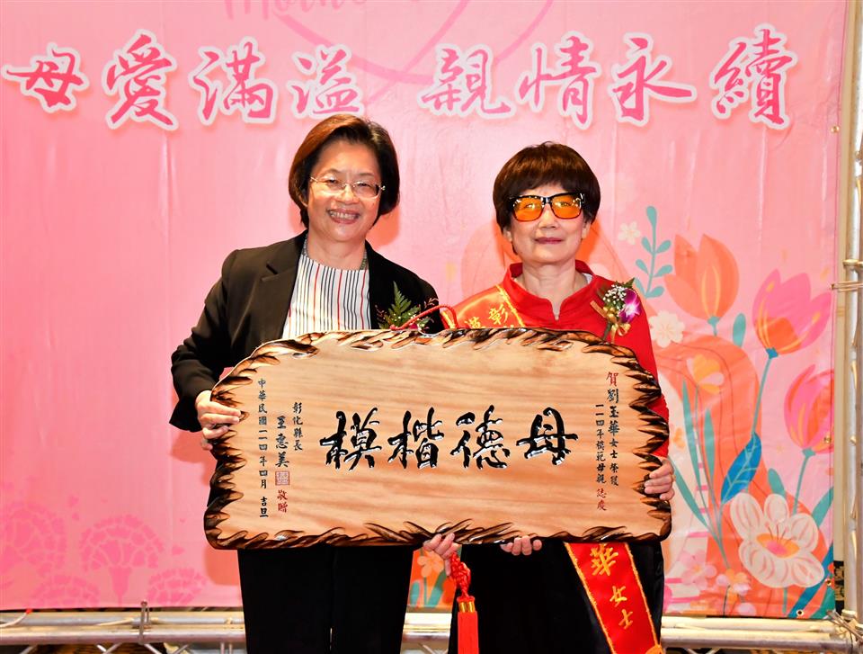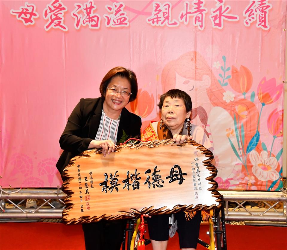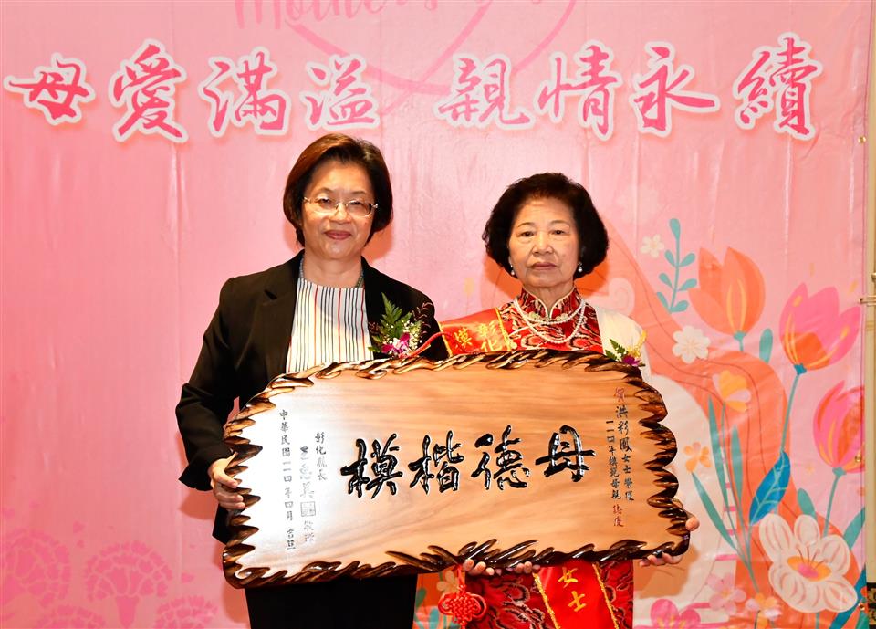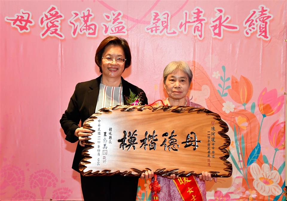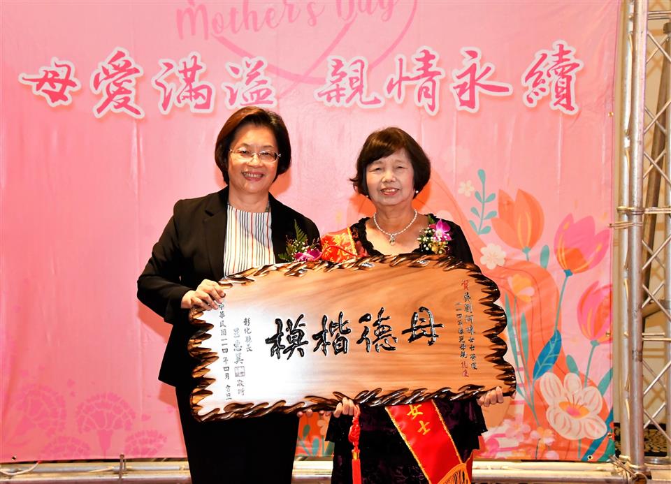 為彰顯母愛的偉大與光輝,彰化縣政府於4月26日上午在花壇鄉全國麗園大飯店舉辦「114年模範母親表揚活動」,由縣長王惠美與會頒獎,王縣長提前祝福天下所有的媽媽,母親節快樂,也向來自全縣各鄉鎮市公所及身障團體推薦,恭喜38位獲獎的模範母親,致上最高敬意與感謝,王縣長表示,每位模範母親都背後都有感動人心的故事,為母則強,用實際行動無私奉獻給家庭跟孩子,有時候犧牲自己的夢想,用心栽培孩子、照顧家庭,讓我們看到母愛是無私的,不只是家庭的榜樣,更是社會的典範。 王縣長表示,每位模範母親都有令人敬佩的故事,其中分享幾位模範媽媽的事蹟,最高齡的有來自溪州鄉101歲的人瑞-黃蔡哖女士,在日治時期没有接受正規教育,在以前没有白米飯吃,常以地瓜籤果腹,含辛茹苦,養兒育女,成家立業長大成人。還有社團法人彰化縣盲人福利協進會的劉玉華女士,發現自己罹患了遺傳性視網膜色素變性症(俗稱夜盲症),但沒有因為自身的障礙而疏於子女的教養,反倒克服種種障礙,更加用心照顧好孩子,堅毅不的心讓孩子們無論學業或是品格教育,都有非常好的表現。另外,竹塘鄉的邱陳刷女士,丈夫在823砲戰中殉職,她不向命運低頭,堅強撐起家庭,獨力扶養五名子女長大成人。 王縣長指出,其他還有無數令人敬佩的母親,都有非常動人的故事,例如模範母親陳寶蘭在家庭中無私奉獻,培育三名優秀子女,希望透過每位模範母親的故事,讓更多後輩學習的榜樣。現場也準備了田尾康乃馨花束及泰式SPA肩頸紓壓按摩椅墊,慰勞媽媽們一整年的辛勞,感謝救國團規劃非常溫馨的母親節表揚活動。 員林市代理市長賴致富代表鄉鎮市長致詞時表示,向所有模範母親表達敬意,祝賀所有獲獎的模範母親,天下所有的媽媽都是一樣的,每位模範母親都是令人敬仰,在孩子的心中,每一位媽媽都是他心中的模範母親,所有受表揚的模範母親都值得學習,希望社會更祥和進步。 國防部全民防衛動員署後備指揮部政戰主任胡少將表示,彰化是很有人情味的地方,今天受表揚的其中一位模範母親,來自竹塘鄉的邱陳刷女士,在823戰役的時候,他的先生不幸亡故,過程中含辛茹苦扶養5個小孩長大,她第3個孩子邱理事長學習媽媽的毅力及堅強,把823戰役協會辦理的很好,繼續照顧遺族、遺眷,感謝彰化縣政府辦理這麼有意義的活動。 模範母親陳寶蘭表示,很高興也很榮耀得到這份獎項,從孩子小時候就很用心栽培,每天載著孩子上課,外公因曾是南郭國小校長,很注重教育,也希望孩子都能夠到國外深造,三名子女都曾到國外,也都有自己的專業,期許兒女在社會上能發揮專業有所貢獻。 救國團主委施鳳銘表示,恭喜所有獲獎的模範母親,感謝縣政府的大力支持,也感謝協辦單位及義工夥伴,讓活動更圓滿順利,未來救國團將持續支持彰化縣政府各項縣政推動。 頒獎典禮結束後,緊接著登場的摸彩活動,由王縣長抽出3位幸運得主,為媽媽們的節日喜悅再添驚喜。 彰化縣38位模範母親分別為:林呂阿幼、陳寶蘭、吳劉阿味、洪惠美、楊桂、陳謝金選、陳寶鳳、羅黃瓊慧、柯桂英、鄭清文、林奎富、黃陳阿吻、黃真正、陳阿暖、謝淑鳳、游楊滿、黃張珠、張楊珠、邱陳絹、顧美玉、劉愛卿、洪彩鳳、紀金雀、詹黃秋花、黃葉麗、許鄭對、楊麗兒、蕭陳乃、劉緞、黃蔡哖、許玉蕊、邱陳刷、邱美招、劉玉華、王靜惠、陳盈霓、林秀喜、邱麗娟。 與會貴賓陸續到場還有立委黃秀芳、陳素月、縣議員林宗翰、蕭文雄、林小琪、員林市代理市長賴致富、和美鎮長林庚壬、埔心鄉長張佩瑩、永靖鄉長魏碩衛、芳苑鄉長林保玲、田中鎮長蕭淑芬、北斗鎮長顏宏霖、彰化市長林世賢、彰化縣救國團主委施鳳銘、國防部全民防衛動員署後備指揮部政戰主任胡少將、中部地區後備指揮部指揮官陶少將、政戰主任韓上校、彰化縣後備指揮部指揮官梅上校、彰化縣團務指導委員會、員林市代表會主席張國良、彰化市公所專員曹武賀、大村鄉公所秘書洪蘭逸、溪湖鎮公所機要秘書陳昀秀、社頭鄉公所課長蕭淑芬、溪州鄉公所秘書徐恩昌、二林鎮公所洪素芃、各級學校家長會聯合會理事長許友忠、副理事長吳章汶、社會處長王蘭心、副處長涂敏群、各級民意代表及地方仕紳等人。