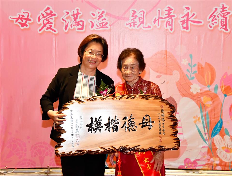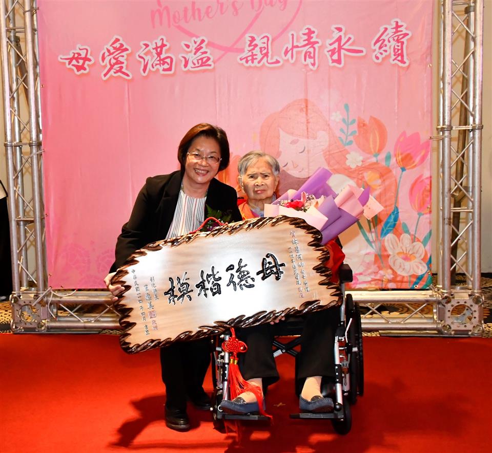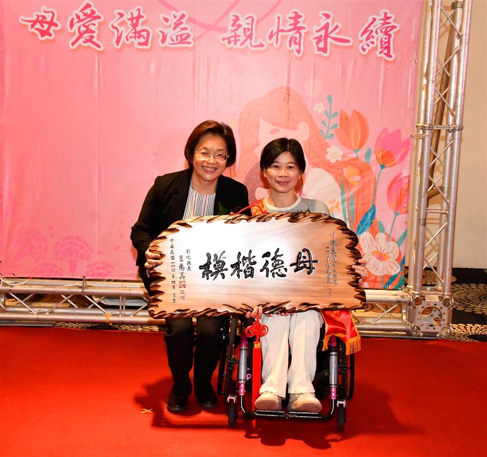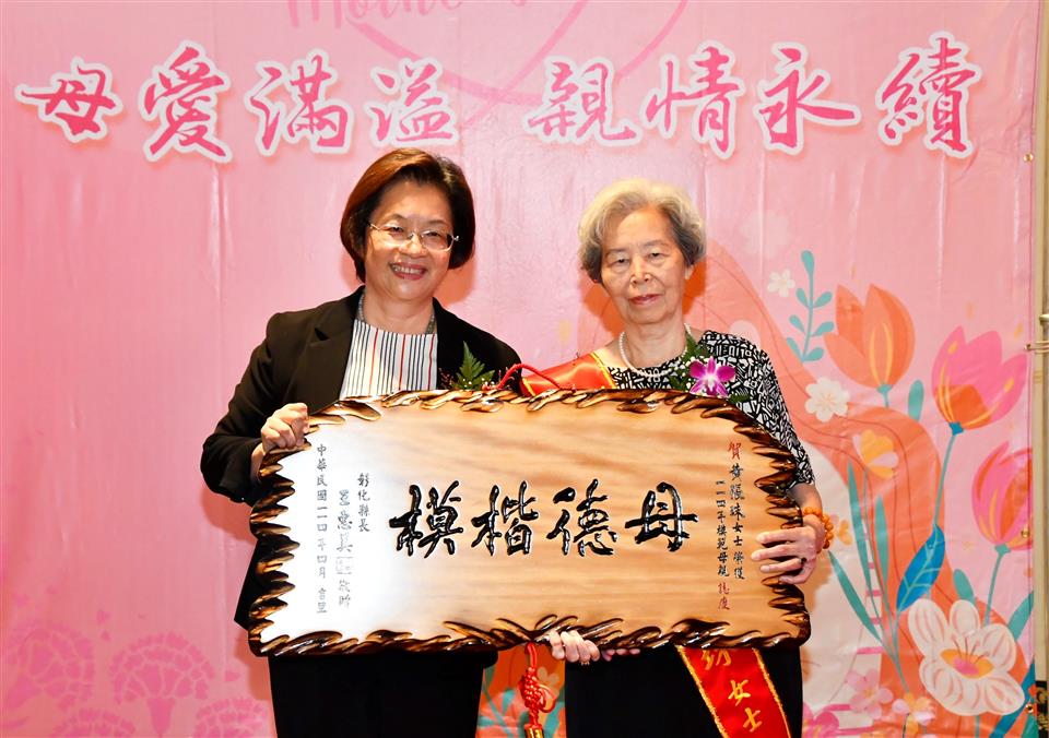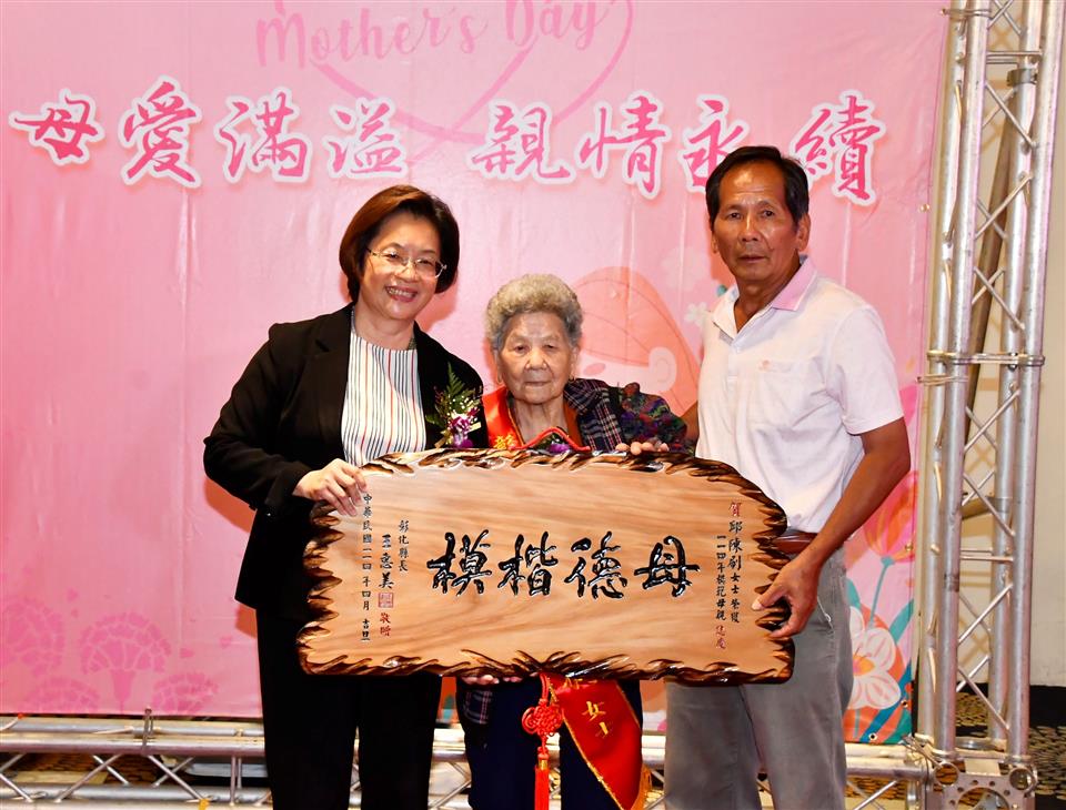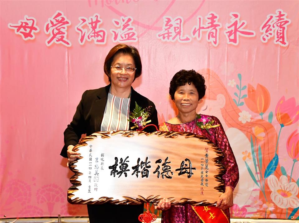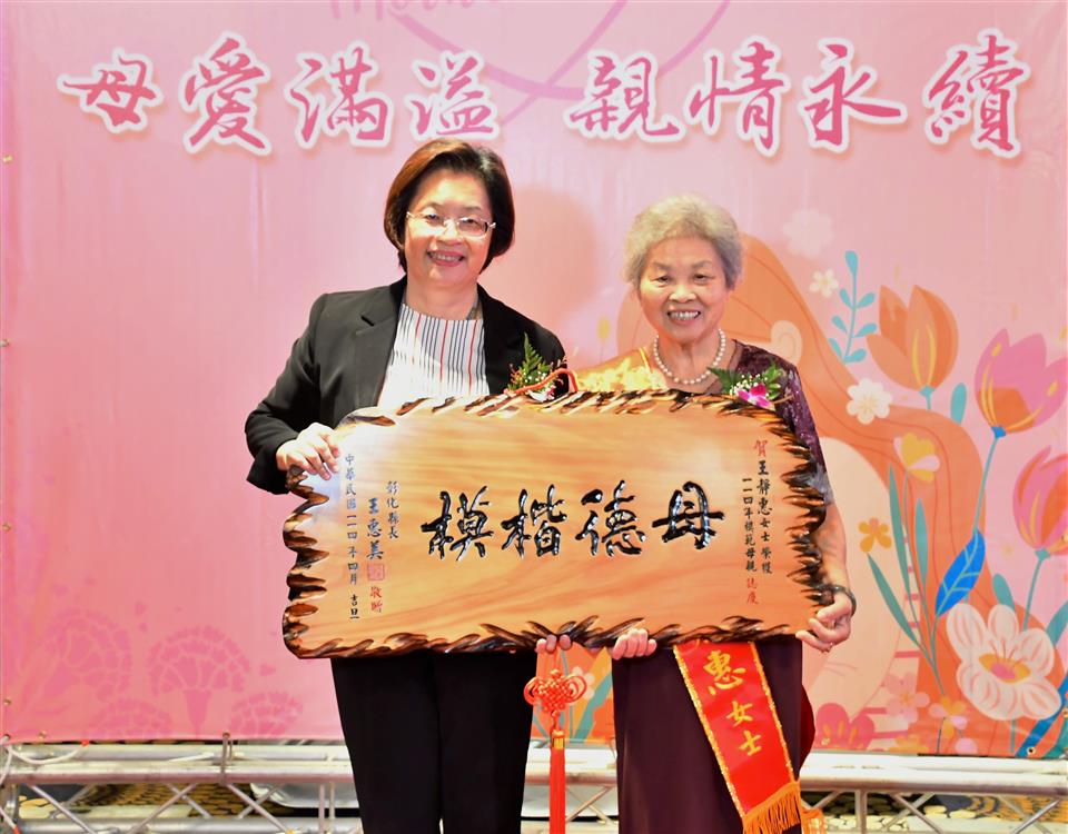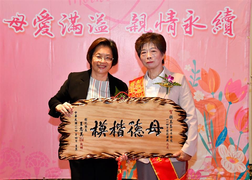 為彰顯母愛的偉大與光輝,彰化縣政府於4月26日上午在花壇鄉全國麗園大飯店舉辦「114年模範母親表揚活動」,由縣長王惠美與會頒獎,王縣長提前祝福天下所有的媽媽,母親節快樂,也向來自全縣各鄉鎮市公所及身障團體推薦,恭喜38位獲獎的模範母親,致上最高敬意與感謝,王縣長表示,每位模範母親都背後都有感動人心的故事,為母則強,用實際行動無私奉獻給家庭跟孩子,有時候犧牲自己的夢想,用心栽培孩子、照顧家庭,讓我們看到母愛是無私的,不只是家庭的榜樣,更是社會的典範。 王縣長表示,每位模範母親都有令人敬佩的故事,其中分享幾位模範媽媽的事蹟,最高齡的有來自溪州鄉101歲的人瑞-黃蔡哖女士,在日治時期没有接受正規教育,在以前没有白米飯吃,常以地瓜籤果腹,含辛茹苦,養兒育女,成家立業長大成人。還有社團法人彰化縣盲人福利協進會的劉玉華女士,發現自己罹患了遺傳性視網膜色素變性症(俗稱夜盲症),但沒有因為自身的障礙而疏於子女的教養,反倒克服種種障礙,更加用心照顧好孩子,堅毅不的心讓孩子們無論學業或是品格教育,都有非常好的表現。另外,竹塘鄉的邱陳刷女士,丈夫在823砲戰中殉職,她不向命運低頭,堅強撐起家庭,獨力扶養五名子女長大成人。 王縣長指出,其他還有無數令人敬佩的母親,都有非常動人的故事,例如模範母親陳寶蘭在家庭中無私奉獻,培育三名優秀子女,希望透過每位模範母親的故事,讓更多後輩學習的榜樣。現場也準備了田尾康乃馨花束及泰式SPA肩頸紓壓按摩椅墊,慰勞媽媽們一整年的辛勞,感謝救國團規劃非常溫馨的母親節表揚活動。 員林市代理市長賴致富代表鄉鎮市長致詞時表示,向所有模範母親表達敬意,祝賀所有獲獎的模範母親,天下所有的媽媽都是一樣的,每位模範母親都是令人敬仰,在孩子的心中,每一位媽媽都是他心中的模範母親,所有受表揚的模範母親都值得學習,希望社會更祥和進步。 國防部全民防衛動員署後備指揮部政戰主任胡少將表示,彰化是很有人情味的地方,今天受表揚的其中一位模範母親,來自竹塘鄉的邱陳刷女士,在823戰役的時候,他的先生不幸亡故,過程中含辛茹苦扶養5個小孩長大,她第3個孩子邱理事長學習媽媽的毅力及堅強,把823戰役協會辦理的很好,繼續照顧遺族、遺眷,感謝彰化縣政府辦理這麼有意義的活動。 模範母親陳寶蘭表示,很高興也很榮耀得到這份獎項,從孩子小時候就很用心栽培,每天載著孩子上課,外公因曾是南郭國小校長,很注重教育,也希望孩子都能夠到國外深造,三名子女都曾到國外,也都有自己的專業,期許兒女在社會上能發揮專業有所貢獻。 救國團主委施鳳銘表示,恭喜所有獲獎的模範母親,感謝縣政府的大力支持,也感謝協辦單位及義工夥伴,讓活動更圓滿順利,未來救國團將持續支持彰化縣政府各項縣政推動。 頒獎典禮結束後,緊接著登場的摸彩活動,由王縣長抽出3位幸運得主,為媽媽們的節日喜悅再添驚喜。 彰化縣38位模範母親分別為:林呂阿幼、陳寶蘭、吳劉阿味、洪惠美、楊桂、陳謝金選、陳寶鳳、羅黃瓊慧、柯桂英、鄭清文、林奎富、黃陳阿吻、黃真正、陳阿暖、謝淑鳳、游楊滿、黃張珠、張楊珠、邱陳絹、顧美玉、劉愛卿、洪彩鳳、紀金雀、詹黃秋花、黃葉麗、許鄭對、楊麗兒、蕭陳乃、劉緞、黃蔡哖、許玉蕊、邱陳刷、邱美招、劉玉華、王靜惠、陳盈霓、林秀喜、邱麗娟。 與會貴賓陸續到場還有立委黃秀芳、陳素月、縣議員林宗翰、蕭文雄、林小琪、員林市代理市長賴致富、和美鎮長林庚壬、埔心鄉長張佩瑩、永靖鄉長魏碩衛、芳苑鄉長林保玲、田中鎮長蕭淑芬、北斗鎮長顏宏霖、彰化市長林世賢、彰化縣救國團主委施鳳銘、國防部全民防衛動員署後備指揮部政戰主任胡少將、中部地區後備指揮部指揮官陶少將、政戰主任韓上校、彰化縣後備指揮部指揮官梅上校、彰化縣團務指導委員會、員林市代表會主席張國良、彰化市公所專員曹武賀、大村鄉公所秘書洪蘭逸、溪湖鎮公所機要秘書陳昀秀、社頭鄉公所課長蕭淑芬、溪州鄉公所秘書徐恩昌、二林鎮公所洪素芃、各級學校家長會聯合會理事長許友忠、副理事長吳章汶、社會處長王蘭心、副處長涂敏群、各級民意代表及地方仕紳等人。