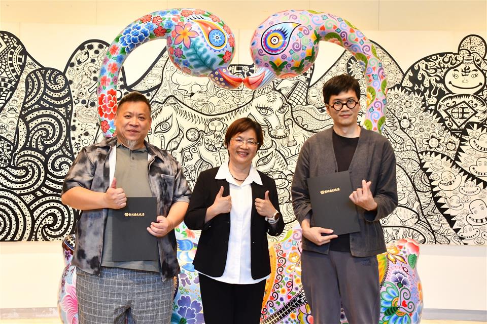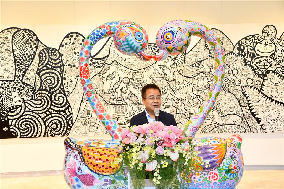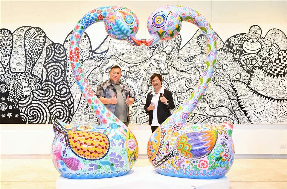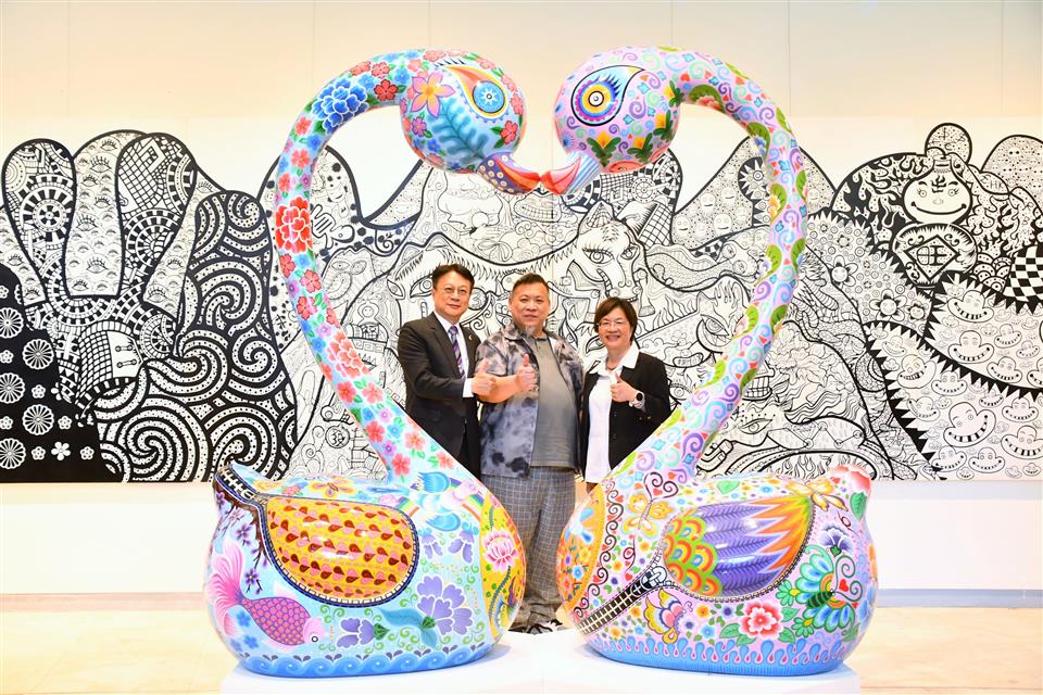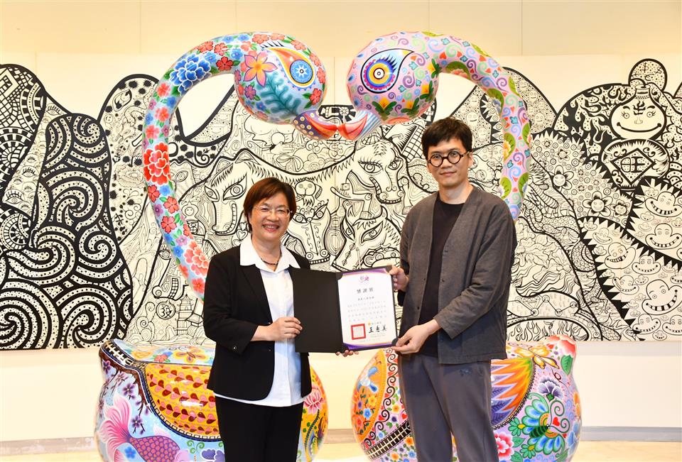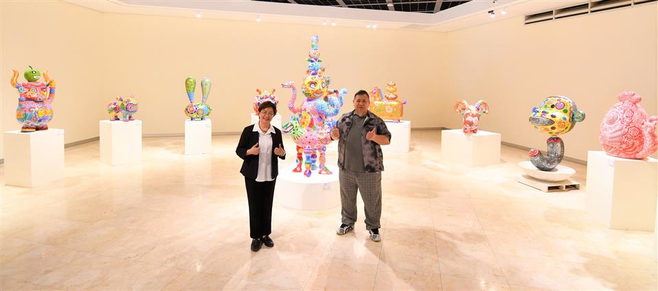 彰化縣立美術館自即日起至6月1日舉辦《嶄新悅目-2025洪易藝術特展》,邀請祖籍彰化縣芳苑鄉,在國際知名的當代藝術家洪易,以繽紛色彩與創新精神,帶領觀眾走入充滿生命力與喜悅能量的藝術世界。今(17)日下午舉行開幕式,縣長王惠美、展出者洪易等人與會,嘉賓雲集,王縣長表示,洪易老師是彰化芳苑人,在2000年投入藝術創作,作品深具特色,在日本東京、美國、西班牙等多國展出,跟別的藝術家不同,洪易老師是從國外出名,再紅回到台灣,作品非常多樣性,具國際性,這次展覽結合雕塑、平面作品與文創設計共67件,展現洪易老師二十多年藝術歷程的嶄新探索,充分呈現其勇於突破、擁抱創意的精神,歡迎民眾蒞臨參觀,一同走入洪易色彩斑斕、創意澎湃的藝術宇宙。 王縣長表示,在2020年,洪易老師對於故鄉的情感,以越在地越國際,在彰南路六段將廢棄穀倉變身為「洪易美術館」,成為彰化重要的文化地標,讓藝術深植在地土壤,生根發芽。這次展覽主題「嶄新悅目」,「嶄新」就是把過去的框架打破,大膽運用鍍鈦技術,將不鏽鋼雕塑,如:分享象、五指山等作品,賦予金屬材質流動的光澤與未來感。「悅目」就是顏色非常鮮艷與文化符碼,傳遞溫暖祝福與正向能量,讓藝術不僅是視覺饗宴,也是心靈的觸動。 王縣長指出,這次展覽有3大類,包括雕塑、平面創作、文創設計,共67件作品,在雕塑區「十二生肖系列」,做了很多不同的創作,平面展區除數位版畫《牡丹驚豔》外,首度公開珍貴手稿,讓大家了解如何從平面設計變成立體作品,洪易老師也把作品文創化,實踐「藝術生活化」理念,像筷子、器皿等,讓藝術走入生活中。 藝術家洪易老師表示,第一次回到故鄉展覽,大家都很熱情,也讓他覺得很感動,其實彰化出身很多藝術家都很有名,只是在外面流浪,如何把他們找回來,需要凝聚的力量,他有一個感受,雖然一直在世界各地跑,但有一天還是要回來故鄉彰化,一府二鹿三艋舺,彰化有300年歷史有豐厚的藝術資源,也讓他思考藝術家是不是要做一點事,藉由這次展覽分享他的經驗,希望把藝術的養分輻射性的放射到周圍每一個地方,為彰化這塊土地、為彰化服務。 策展人黃柏維表示,這次展覽為「嶄新悅目」,嶄新是突破框架,悅目是將美學落地,跟大眾結合,大家產生共感才有效度,展覽分為3個區塊,第一個區塊是老師早期的作品,有一些很實驗性的裝置藝術、行為藝術的作品,可以看到很多手稿及想法,第二個區塊是他研發出來的彩色雕塑,鋼板、不鏽鋼鍛造等,第三個區塊是藝術生活化,作品兼顧藝術的視覺、美感及質感,最後感謝縣府團隊、感謝洪易工作室的同仁,才能完成這次展覽。 與會貴賓還有縣議員黃柏瑜、吳韋達、前彰化縣長卓伯源、縣議員温芝樺服務團隊、彰化市長林世賢、前彰化市長邱建富、策展人黃柏維、國家安全局中部工作站站長黃世團、南投縣政府文化局長林榮森、台中市政府地方稅務局局長沈政安、藝術家白丰中、陳正勳、陳炳臣、溫文卿、郭羲、彰化縣美術學會林鴻銘、現代眼畫會會長許世芳、台中市政府府會警察隊長蕭家成、台中市霧峰區農會總幹事黃景建、彰化師範大學教授陳世強、華盛頓雙語學校家長會長羅勝義、世界華人台中分會會長黃小娟、台中一中基金會董事劉乃先、金美麗生技股份有限公司董事長許秀英、彰化縣文化局長張雀芬、各級民代、地方仕紳等。