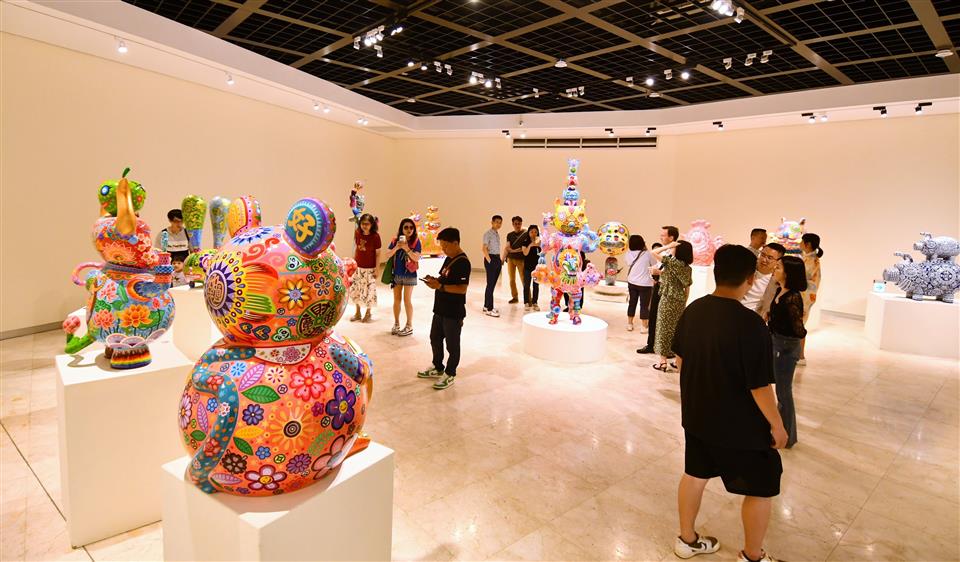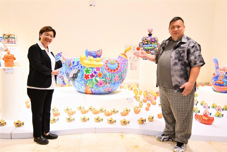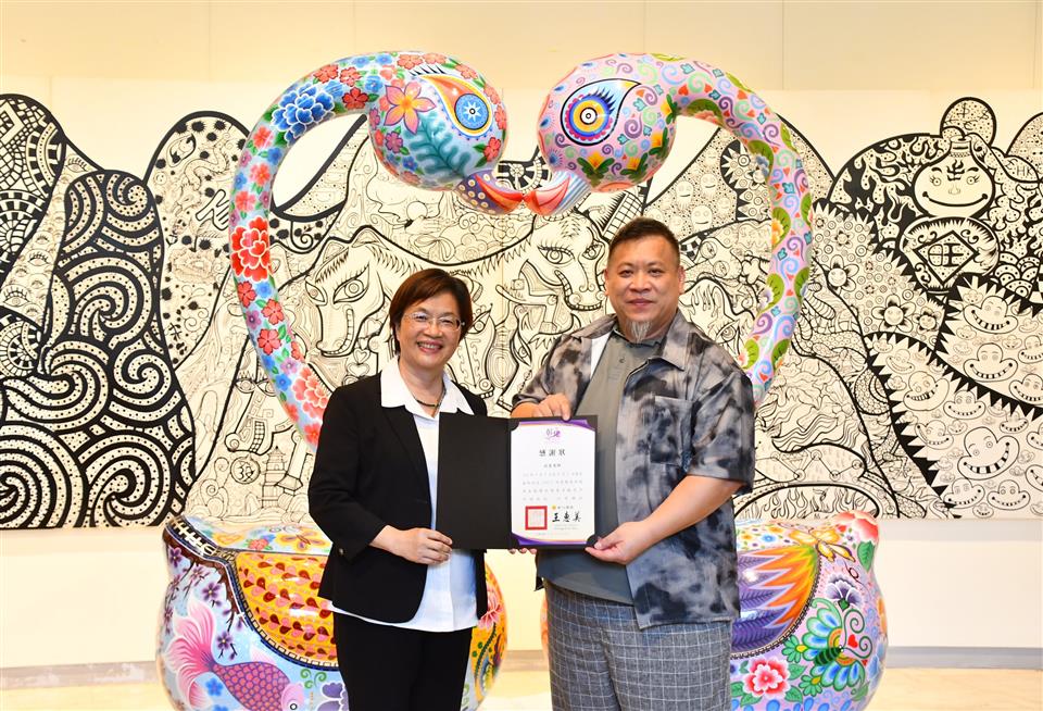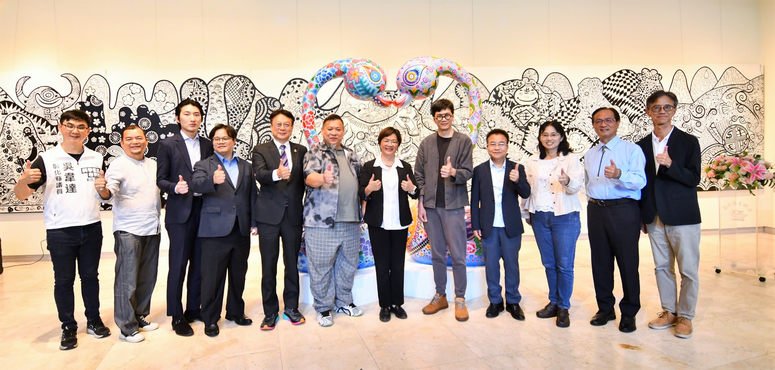 彰化縣立美術館自即日起至6月1日舉辦《嶄新悅目-2025洪易藝術特展》,邀請祖籍彰化縣芳苑鄉,在國際知名的當代藝術家洪易,以繽紛色彩與創新精神,帶領觀眾走入充滿生命力與喜悅能量的藝術世界。今(17)日下午舉行開幕式,縣長王惠美、展出者洪易等人與會,嘉賓雲集,王縣長表示,洪易老師是彰化芳苑人,在2000年投入藝術創作,作品深具特色,在日本東京、美國、西班牙等多國展出,跟別的藝術家不同,洪易老師是從國外出名,再紅回到台灣,作品非常多樣性,具國際性,這次展覽結合雕塑、平面作品與文創設計共67件,展現洪易老師二十多年藝術歷程的嶄新探索,充分呈現其勇於突破、擁抱創意的精神,歡迎民眾蒞臨參觀,一同走入洪易色彩斑斕、創意澎湃的藝術宇宙。 王縣長表示,在2020年,洪易老師對於故鄉的情感,以越在地越國際,在彰南路六段將廢棄穀倉變身為「洪易美術館」,成為彰化重要的文化地標,讓藝術深植在地土壤,生根發芽。這次展覽主題「嶄新悅目」,「嶄新」就是把過去的框架打破,大膽運用鍍鈦技術,將不鏽鋼雕塑,如:分享象、五指山等作品,賦予金屬材質流動的光澤與未來感。「悅目」就是顏色非常鮮艷與文化符碼,傳遞溫暖祝福與正向能量,讓藝術不僅是視覺饗宴,也是心靈的觸動。 王縣長指出,這次展覽有3大類,包括雕塑、平面創作、文創設計,共67件作品,在雕塑區「十二生肖系列」,做了很多不同的創作,平面展區除數位版畫《牡丹驚豔》外,首度公開珍貴手稿,讓大家了解如何從平面設計變成立體作品,洪易老師也把作品文創化,實踐「藝術生活化」理念,像筷子、器皿等,讓藝術走入生活中。 藝術家洪易老師表示,第一次回到故鄉展覽,大家都很熱情,也讓他覺得很感動,其實彰化出身很多藝術家都很有名,只是在外面流浪,如何把他們找回來,需要凝聚的力量,他有一個感受,雖然一直在世界各地跑,但有一天還是要回來故鄉彰化,一府二鹿三艋舺,彰化有300年歷史有豐厚的藝術資源,也讓他思考藝術家是不是要做一點事,藉由這次展覽分享他的經驗,希望把藝術的養分輻射性的放射到周圍每一個地方,為彰化這塊土地、為彰化服務。 策展人黃柏維表示,這次展覽為「嶄新悅目」,嶄新是突破框架,悅目是將美學落地,跟大眾結合,大家產生共感才有效度,展覽分為3個區塊,第一個區塊是老師早期的作品,有一些很實驗性的裝置藝術、行為藝術的作品,可以看到很多手稿及想法,第二個區塊是他研發出來的彩色雕塑,鋼板、不鏽鋼鍛造等,第三個區塊是藝術生活化,作品兼顧藝術的視覺、美感及質感,最後感謝縣府團隊、感謝洪易工作室的同仁,才能完成這次展覽。 與會貴賓還有縣議員黃柏瑜、吳韋達、前彰化縣長卓伯源、縣議員温芝樺服務團隊、彰化市長林世賢、前彰化市長邱建富、策展人黃柏維、國家安全局中部工作站站長黃世團、南投縣政府文化局長林榮森、台中市政府地方稅務局局長沈政安、藝術家白丰中、陳正勳、陳炳臣、溫文卿、郭羲、彰化縣美術學會林鴻銘、現代眼畫會會長許世芳、台中市政府府會警察隊長蕭家成、台中市霧峰區農會總幹事黃景建、彰化師範大學教授陳世強、華盛頓雙語學校家長會長羅勝義、世界華人台中分會會長黃小娟、台中一中基金會董事劉乃先、金美麗生技股份有限公司董事長許秀英、彰化縣文化局長張雀芬、各級民代、地方仕紳等。