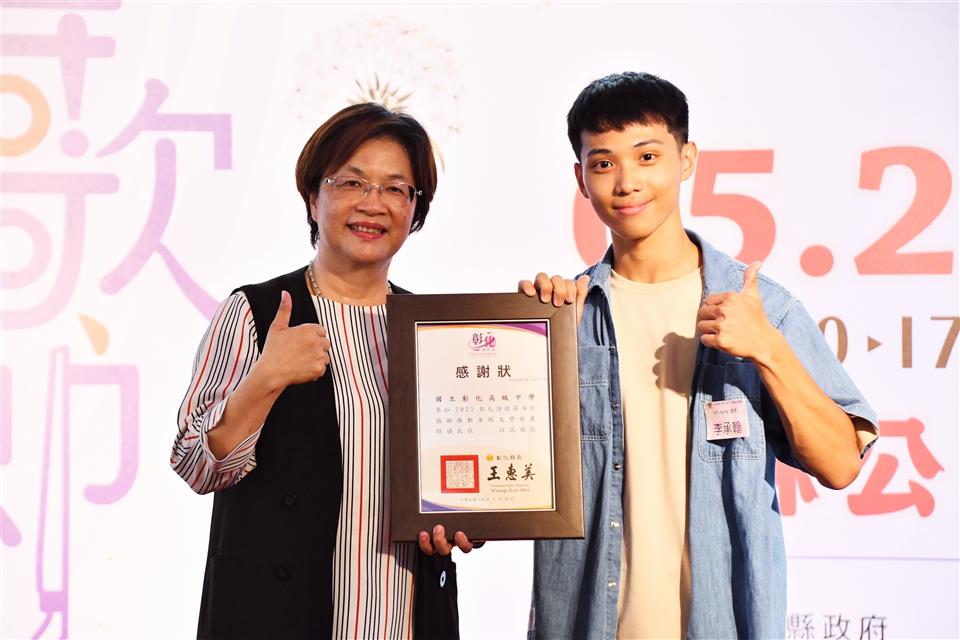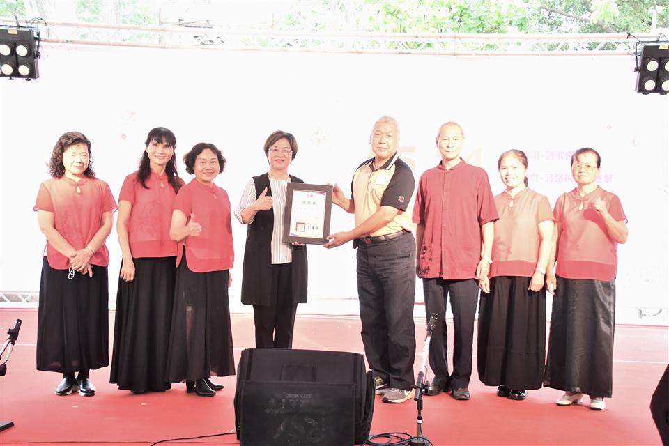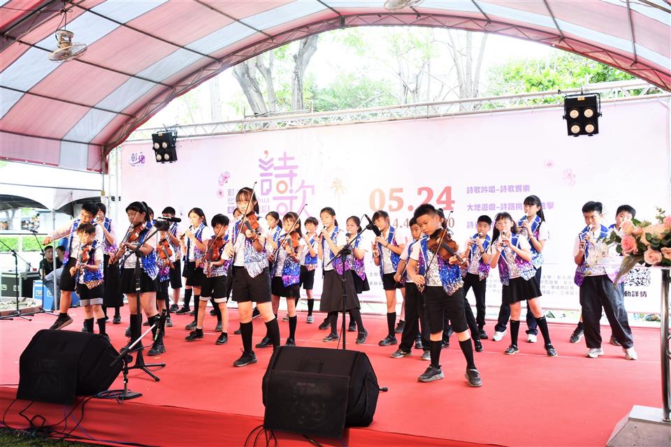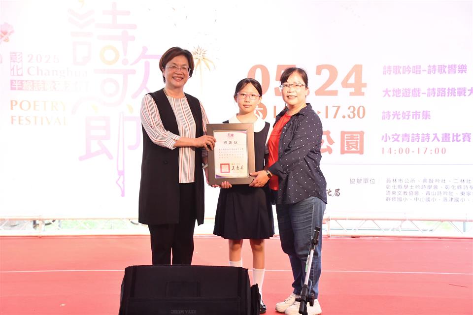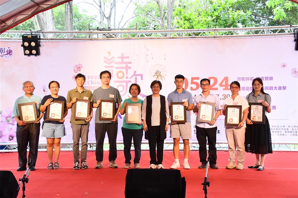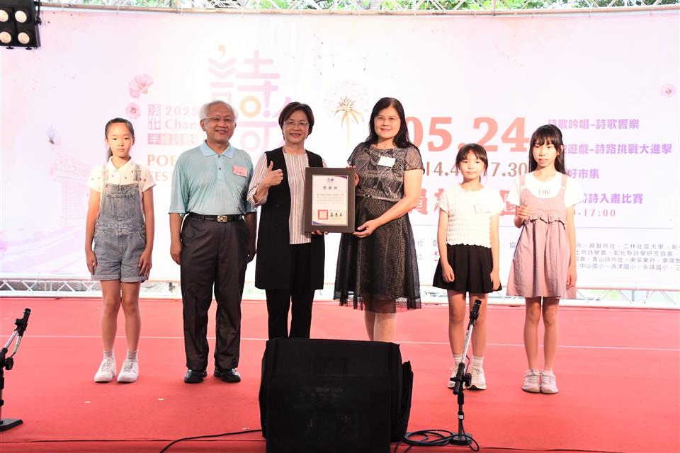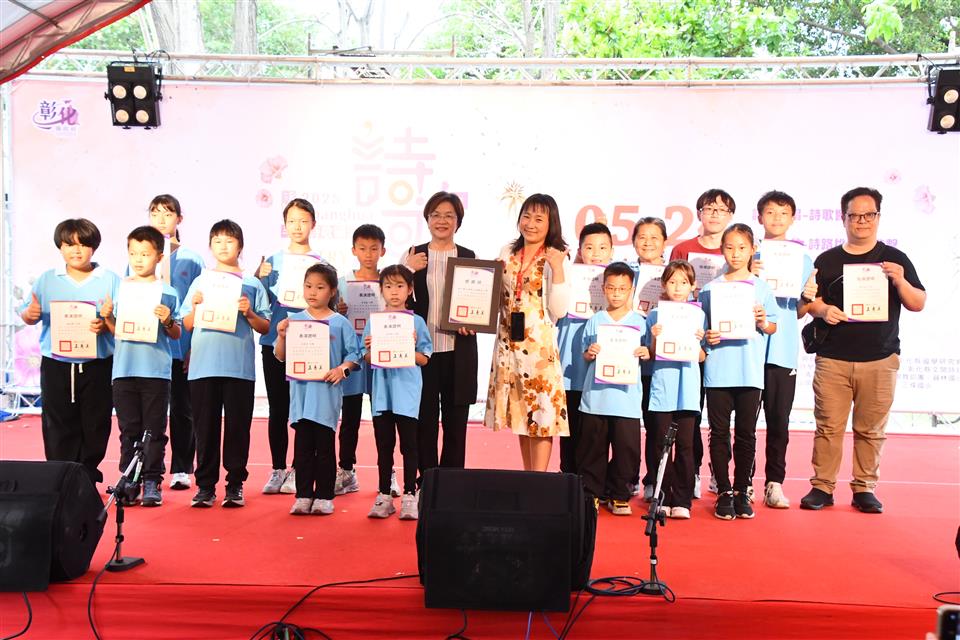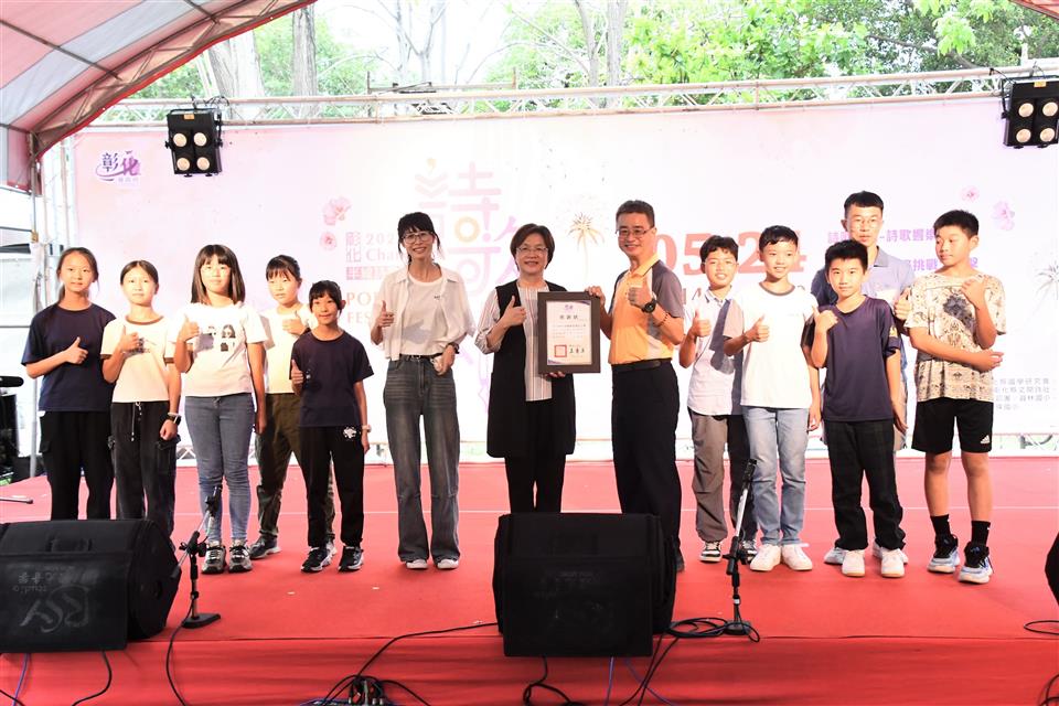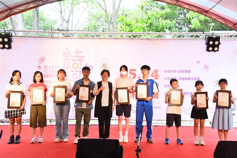 詩意五月,樂聲盈耳,「2025年彰化詩歌節」於5月24日在員林公園登場,縣長王惠美出席與會。王縣長表示,一年一度的彰化詩歌節,詩歌盛事,匯聚詩、樂、畫、市集,結合管弦樂、國樂、口琴、絲竹、合唱及舞蹈,由榮獲全國國小音樂比賽優異得獎的員林國小管弦樂及洛津國小直笛團熱情組曲中揭開序幕,展現詩歌交流的創新,透過活動讓詩歌愛好者有一個展才的機會,讓大家感受彰化深厚的文學底蘊與藝術魅力,活動有大地闖關遊戲、詩畫比賽及市集,藉由聽詩、賞樂、作畫、闖關,感受彰化深厚的文學底蘊與藝術魅力。 王縣長指出,活動第一個亮點有「詩路挑戰大晉級」,是一場充滿詩意的大地闖關遊戲,大、小朋友一起成為詩意的冒險王。第二個亮點是「小文青詩詩入畫」比賽,邀請孩子用眼睛欣賞,並以詩作為靈感,用畫筆來描繪詩的意境,完成作品還可以獲得維尼陶瓷馬克杯和馬卡龍保溫杯二選一。還有「詩光好事集」,讓大家可以在欣賞詩意的過程中,同時逛市集消費,共度一個充滿文化氣息的週末! 王縣長指出,另外,今年彰化文化閱讀護照活動到11月30日,除了可以借閱圖書以外,參加畫展與藝文活動也可以集章,今天詩歌節的活動就能集章,就有機會抽中ipad、gopro運動攝影機、聲霸、高級手錶等大獎,歡迎大家把握機會踴躍集章參加抽獎。 立委謝衣鳯表示,今天表演非常精彩,是一場藝術創意、文學發展的表演,祝活動圓滿順利。 員林市代理市長賴致富表示,員林人文薈萃,員林公園內有興賢書院,彰化詩歌節將詩歌活潑化,以親民方式融入生活。感謝王惠美縣長對員林建設的支持與投資,今年是員林市一個新的里程碑。 與會貴賓有立委謝衣鳯、縣議員黃千宴、凃俊任、張欣倩、曹嘉豪、員林市代理市長賴致富、彰化縣興賢吟社理事長廖基堯、道東詩社長洪秀蘭、彰化縣詩學研究協會理事長吳榮鑾、彰化縣國學研究會理事長楊龍潭、彰化縣學士吟詩學會理事長謝翠娟、彰化縣文開詩社理事長尤能銓、東寧樂府團長施瑞樓、文學家康原、姚金足賢伉儷、文學家林武憲、彰化縣文化局長張雀芬、秘書游筑凱、各校校長、各級民代、地方仕紳等。