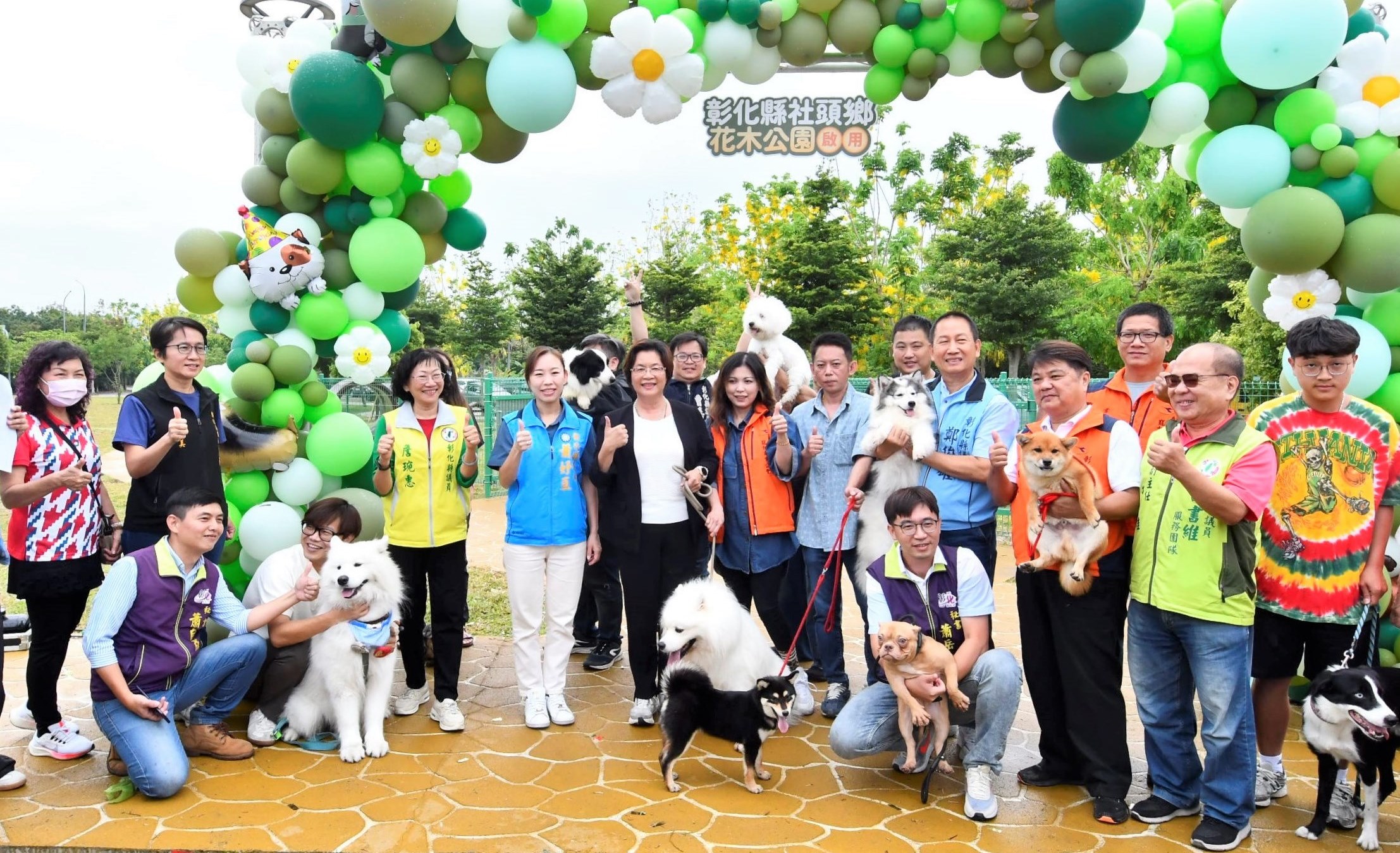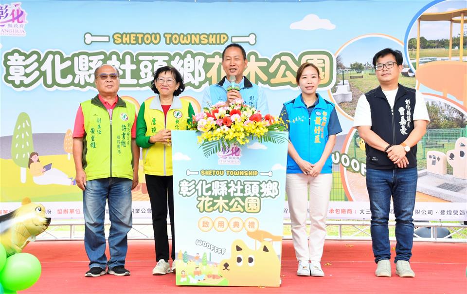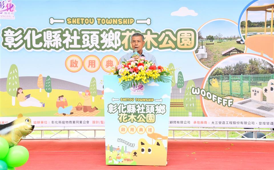 繼員林寵物公園、溪湖中央公園寵物區、嬉濱海豚公園寵物區,彰化縣打造第4座寵物公園社頭花木公園,由彰化縣政府向內政部國土署爭取6,000萬元經費,且縣款再加碼投入3,500萬元,總計9,500萬元在田中彰化高鐵車站附近推動「田中水與綠的交響環境營造工程計畫」,計畫範圍包括田中鎮2座公園及社頭鄉1座公園,今(26)日上午優先辦理社頭鄉花木公園啟用典禮,彰化縣長王惠美、社頭鄉長蕭浚二及各級民代與會,共同啟用。王縣長表示,這是彰化縣第四座寵物公園,感謝中央補助,議長謝典林及議員對預算的支持,也感謝社頭鄉公所接續來進行公園維護管理,共同來打造社頭花木公園,公園面積8,740平方公尺,設置寵物友善專區,面積達770平方公尺,依照寵物體型劃分專區,設有涵管、小跨欄、A字台等設施,讓毛小孩們有快樂玩耍的天堂,落實「人與動物共融共享」的理念。 王縣長表示,公園建設以尊重自然、營造豐富多樣的生態環境為目標,保留公園多樣的開花樹木,設置休憩步道、體健設施、休憩亭等,且更貼心的設置寵物專區,讓民眾與毛小孩都能有舒適的休憩空間,以綠色基盤、尊重自然,營造多樣生態為核心,保留原先多樣化的喬木,比如黃花風鈴木、阿勃勒及洋紫荊,在不同時節欣賞到不同風貌,讓鄉親四季都能感受公園的獨特魅力,公園內規劃有休憩步道、體健設施、休憩涼亭等,無論是長輩晨間運動、親子午後散步,或聚會野餐,都能有適合的角落。 社頭鄉長蕭浚二表示,社頭人真的很幸福,老人、小孩及寵物都非常幸福!彰化縣社頭花木公園正式啟用,非常感謝王惠美縣長縣府團隊用心打造花木公園,也讓毛小孩多一份照顧,歡迎鄉親前來遊玩。 縣議員鄭俊雄表示,感謝彰化縣政府為新建公園也為毛小孩爭取活動的空間,希望所有的好朋友,能夠在平假日,把孩子與毛小孩帶出來運動,營造一個良善、友善的環境,相信在王縣長的帶領下,彰化越來越進步。 與會貴賓有縣議員鄭俊雄、蕭妤亘、詹琬惠、曹嘉豪、縣議員許書維服務團隊、社頭鄉長蕭浚二、社頭鄉民代表會主席陳慶福、縣府機要秘書張建豐、城觀處長王瑩琦、彰化縣寵物商業同業公會理事長詹椀晴、榮譽理事長劉東明、各級民代、地方仕紳。