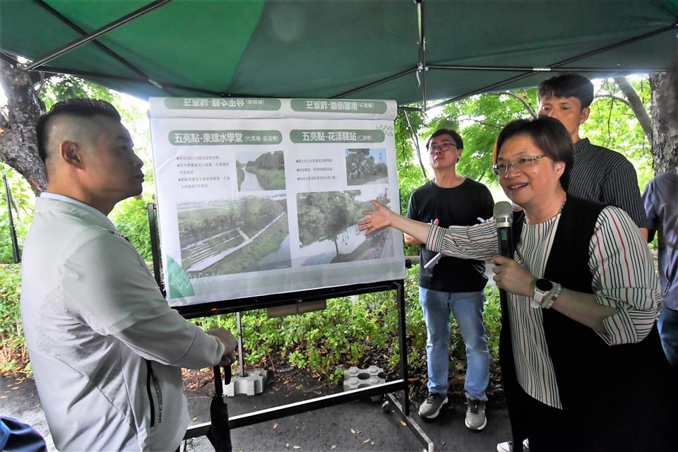 彰化縣長王惠美今(29)日前往溪湖視察東螺溪(石埤橋至舊鐵橋)水綠廊道工程,本案縣府爭取經費投入2億4,903萬7,000元(中央補助款2億421萬元、縣府自籌款4,482萬7,000元)辦理水岸廊道工程,王縣長表示,水綠廊道連結溪湖鎮、二林鎮及埔鹽鄉,打造自溪湖鐵路橋至埔鹽石埤橋間,約8.3公里的水綠廊道,預將在近期完工,完工後透過自行車道或是糖鐵軌道特色交通方式,串聯五大周邊亮點,包括天盛鳥屋、花漾驛站、東螺水學堂、欒樹隧道、觀夕平台等潛力資源,營造節點空間,提升賞鳥、遊憩及活動的機能,希望能夠營造東螺溪美好的水環境。 王縣長表示,「東螺溪水環境改善計畫」在立委謝衣鳯協助爭取經費下,核定總經費7.65億元,其中,這次視察的「東螺溪(石埤橋至舊鐵橋)水綠廊道工程」,全長約8.3公里,目前工程進度90%,邀集地方,包括湖埔社區大學、公所、里長等人共同前來視察,看地方還有沒有該修繕的地方,大家也提出很多意見,並責成水資處針對民眾的意見,盡速做相關的改進與修正,讓工程能更符合在地民眾的需求。謝謝議長謝典林及所有議員對縣府預算的支持,也謝謝地方仕紳大家共同關心,給予諸多建議,縣政府一定會讓公共建設與在地契合,符合大家的需求。 王縣長除了關心東螺溪工程建設,視察督促工程進度以外、也希望藉由東螺溪沿岸復育彰化潛在森林原生樹種,於兩年內種植1萬5千棵原生種樹木,將復育彰化原生森林,打造全國典範,彰顯出彰化母親河多元包容特性,並打造開放、共融且多元之城鎮水岸。 與會人員還有縣議員陳玉姬、溪湖鎮長何炳樺、立委謝衣鳯服務團隊、溪湖鎮民代表會副主席黃佳惠、縣府水資處長陳詔慶、各級民代、地方仕紳等人。